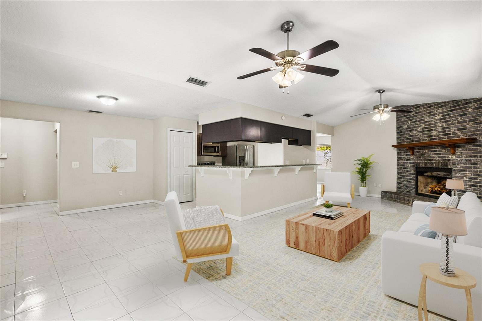 Bem-vindo à casa dos seus sonhos! Esta casa com piscina lindamente conservada oferece 4 quartos e 2 banheiros completos. O 4º quarto pode ser utilizado como escritório ou arrumos pois não possui armário próprio. Ao entrar pela primeira vez, você será recebido por um dos dois espaços de convivência. Não há HOA, o que o torna perfeito tanto para aluguel de curto prazo quanto para residência de longo prazo. As peças da bomba da piscina foram substituídas em 2023, um telhado instalado em 2015 e uma nova pintura interior concluída em junho de 2024. O exterior foi pintado em 2018 e o interior foi totalmente remodelado no mesmo ano. A remodelação de 2018 inclui armários de cozinha, eletrodomésticos, bancadas e banheiros. A fossa séptica foi drenada e inspecionada na primavera de 2024, e o sistema HVAC de 2019 foi inspecionado e mantido em junho de 2024. Desfrute de um quintal totalmente cercado com uma nova cerca de vinil instalada em 2023. Convenientemente localizado a menos de 1,6 km de supermercados e grandes lojas. , e restaurantes, também fica a apenas 35 minutos da praia de New Smyrna e a menos de 25 minutos do Aeroporto de Sanford. Não perca esta incrível oportunidade de possuir um pedaço do paraíso! Contate-nos hoje para agendar uma visita. Algumas fotos mostram Encenação da Realidade. Os serviços de design estão incluídos na compra desta casa.