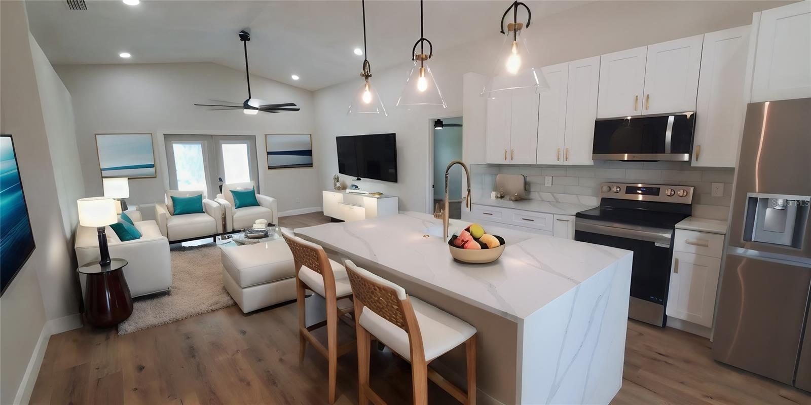 Uma ou mais fotos foram virtualmente encenadas. ***O VENDEDOR CONSIDERARÁ UMA OPÇÃO DE COMPRA DE LOCAÇÃO*** *** Se você está procurando uma casa pronta para morar, não procure mais! *** ***Esta linda casa totalmente remodelada localizada em Deltona, está pronta para se tornar SUA CASA! Todo o trabalho árduo já foi concluído, basta mudar-se e personalizá-lo com os seus móveis. *** *** Com 1.662 pés quadrados de área útil, incluindo uma sala bônus de 340 pés quadrados (17' x 20'), 3 quartos, 2 banheiros completos, uma sala de família/jantar (sua escolha!) e uma cozinha aberta, você você terá muito espaço para relaxar e aproveitar sua nova casa. *** *** A casa está situada em um lote tranquilo e grande de mais de 12.000 pés quadrados, com um pátio de concreto e uma área separada para sua fogueira, gramado totalmente novo, uma cerca no lado esquerdo da casa, com bastante espaço para uma futura piscina, futura garagem individual e uma caravana! *** *** Ao entrar, você notará imediatamente a nova ilha de cascata de quartzo lindamente projetada com luminárias douradas, luzes pendentes, luzes embutidas, novo piso LVP, bem como armários de shaker de fechamento suave (armários de MADEIRA, não placa prensada!) e todos os NOVOS aparelhos LG. *** *** Novo telhado (junho de 2024), novos chuveiros, vasos sanitários e pias de banheiro, além de nova pintura interna e externa. *** *** A única coisa que falta nesta casa é VOCÊ! Faça dela a SUA CASA hoje, antes que alguém o faça! *** *** Esta casa se qualifica para financiamento FHA, VA e convencional. *** *** Ligue hoje para agendar uma exibição para apreciar plenamente todas as atualizações desta linda casa.