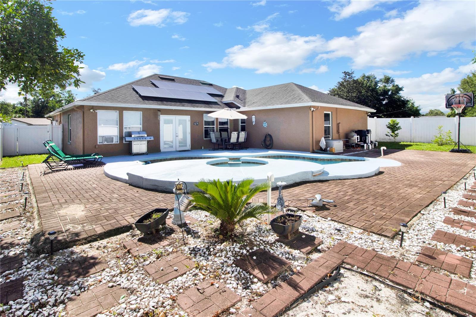 Incrível casa de plano dividido de 3 quartos, 2 banheiros, 1.951 pés quadrados, bem situada em um bairro encantador, perto de lojas e transporte público. Passe pela porta da frente e você começará a ver as muitas características que tornam esta casa tão especial. Pisos de cerâmica e madeira em toda a área de estar principal, lareira a lenha na sala de estar, cozinha moderna e espaçosa com amplo espaço de armazenamento e eletrodomésticos de aço inoxidável incluídos, e closets em todos os quartos. Quando chegar a hora de relaxar, entre em seu quarto fechado Florida, onde você poderá apreciar a vista do ar livre durante todo o ano. Dê mais um passo pelas portas francesas que se abrem para o quintal. Lá você verá a cerca de vinil que circunda todo o quintal para lhe proporcionar privacidade e serenidade enquanto relaxa na piscina azul cristalina. Além disso, todo o exterior da casa foi pintado recentemente em 2024, o telhado substituído em 2018, HVAC 2020, eletrodomésticos 2024, esquentador 2021, bomba de piscina 2023, todas as janelas 2020, sistema de amaciador de água 2022, lâmpadas novas: cozinha e sala de estar . Possui 26 painéis solares há 3 anos, pagamento mensal fixo de $ 290. Esta casa está pronta para ocupação imediata, não perca a oportunidade de possuir esta encantadora residência.***O comprador deve solicitar a posse do sistema de painéis solares atual antes do fechamento***