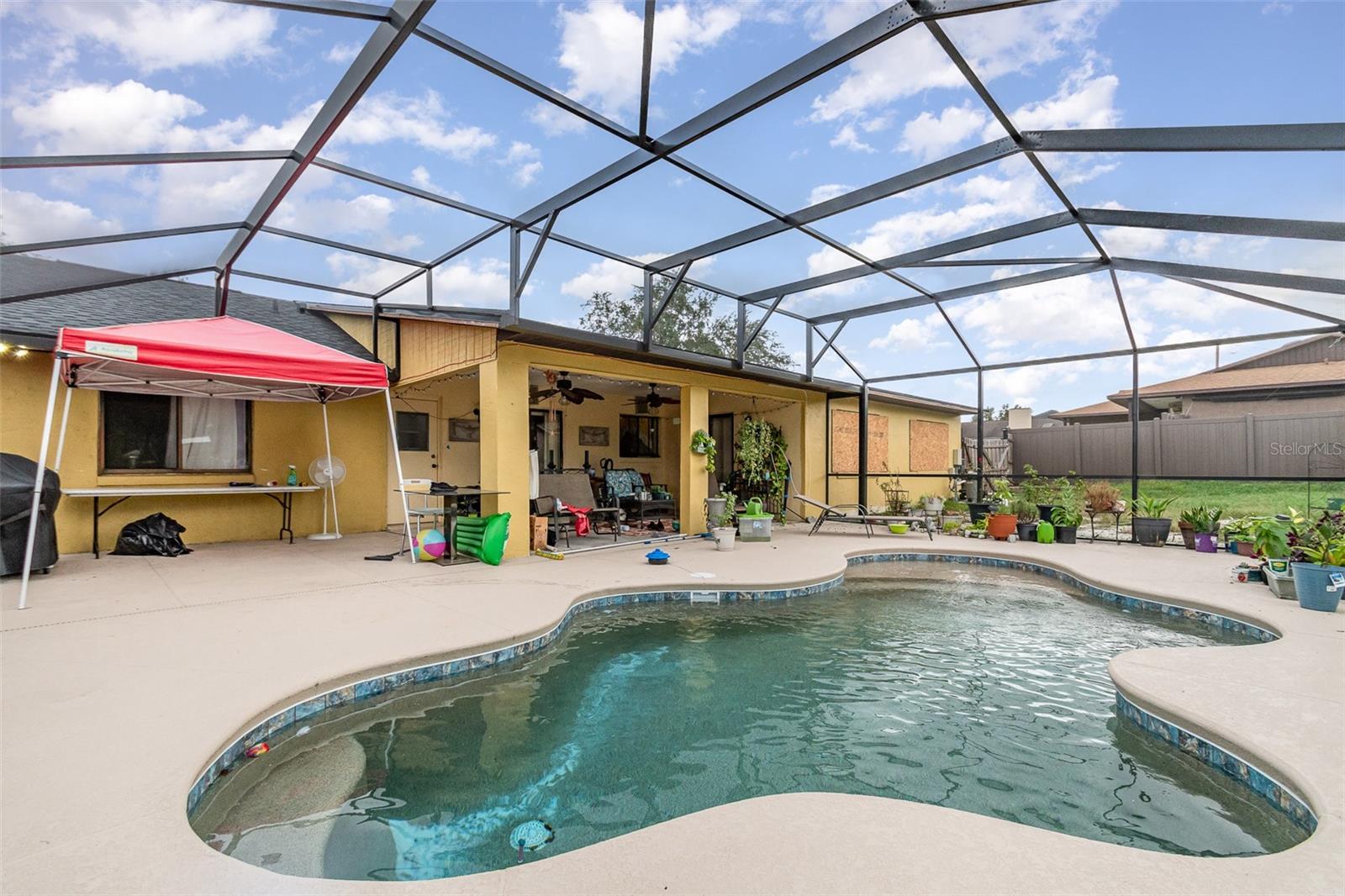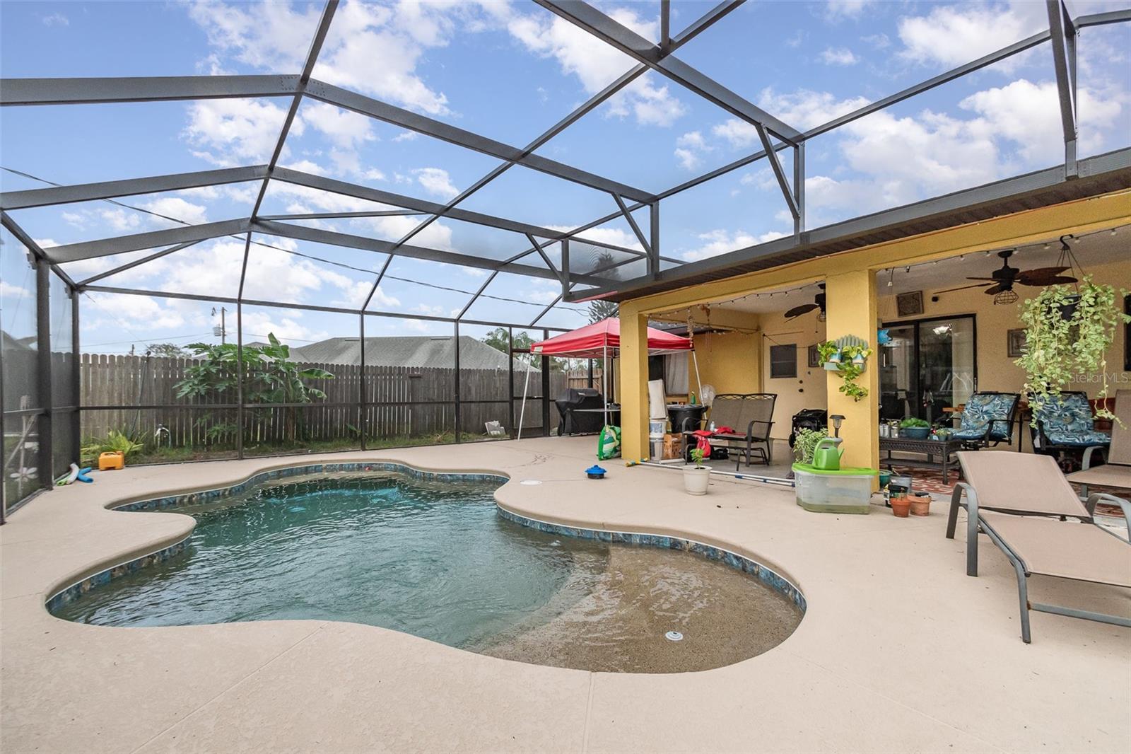 Esta encantadora casa de 3 quartos e 2 banheiros é a combinação perfeita de conforto e vida moderna. A cozinha totalmente remodelada apresenta bancadas elegantes, backsplash de azulejos personalizados, teto de bandeja e eletrodomésticos de aço inoxidável, ideal para entusiastas da culinária. Pisos mais novos fluem pelas áreas de estar, dando à casa uma sensação fresca e atualizada. Os banheiros são elegantes e bem conservados, proporcionando comodidade para familiares e convidados. O espaço exterior é uma verdadeira delícia. Entre no amplo quintal cercado, onde uma piscina cintilante o aguarda para mergulhos relaxantes ou reuniões divertidas. A grande varanda coberta oferece muito espaço para refeições ao ar livre, entretenimento ou simplesmente desfrutar dos arredores. A casa vem com painéis solares alugados, aumentando a eficiência energética e reduzindo os custos de serviços públicos. Com um telhado novo e sem restrições de HOA, você terá tranquilidade e liberdade para tornar esta casa verdadeiramente sua. Esta propriedade oferece um retiro perfeito e ao mesmo tempo está perto de todas as comodidades que você precisa.