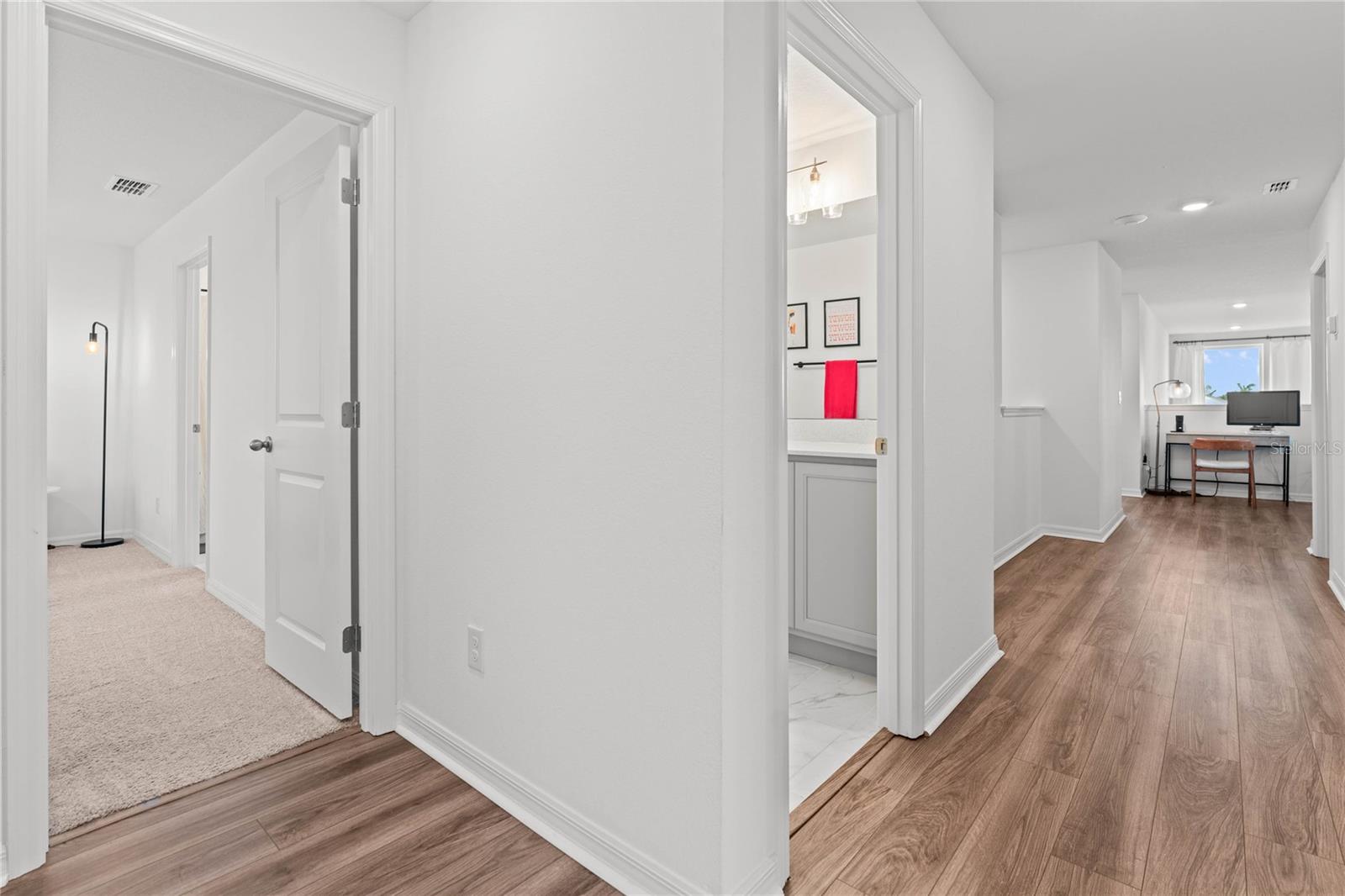 ** Suíte de multi-gênero/sogra personalizada-completa com entrada privada de porta dupla, banho de suíte completo e sala de estar privada adicional/TV den no 1º andar ** Bem -vindo ao 1639 Meadowlark DR em Deltona, Flórida - Localizado no I4, com fácil acesso a toneladas de compras e restaurantes !! -Um retiro moderno impressionante projetado para conforto e versatilidade, esta ampla casa unifamiliar possui 5 quartos e 4,5 banheiros, oferecendo mais de 3.500 pés quadrados de espaço de vida lindamente projetado em um lote generoso de 0,33 acres. Um verdadeiro destaque desta residência é a suíte primária multigeracional cuidadosamente personalizada, completa com um banho de banheiro privativo e uma sala de estar privada - perfeita para a família, convidados ou um retiro privado. Built in 2023 (ROOF, AC, PLUMBING, ELECTRIC 2023), this home is filled with luxurious upgrades, including elegant luxury vinyl flooring that flows throughout the open-concept layout including the entire upstairs, Energy efficient SS SMART appliances and windows, custom built floor to ceiling 20ft feature wall with beautifully crafted built-in shelving , stunning electric fireplace, entertainment system efficiently wired to hide all electronics for a seamless Look de designer (conjunto de entretenimento, incluindo TV e todos os componentes, ficam com a casa), janelas expansivas e cortinas personalizadas, escadas atualizadas e muito mais a cada turno, à medida que você se aventura por essa casa espetacular. O coração da casa é a cozinha inspirada no chef, com eletrodomésticos ss premium, bancadas elegantes, ilha de cozinha premium de 11,5 pés com assentos para 5, enorme despensa de 6 pés de 6 pés e armários amplos para atender a todas as suas necessidades culinárias. Lavanderia é uma brisa com a lavanderia de 10x6 pés de tamanho grande, localizada no meio da planta baixa entre o retiro mestre e os outros 4 quartos do outro lado do loft no andar de cima, que possui vistas dos tetos da catedral de 20 pés de cima. Um lugar perfeito para famílias e amigos se espalharem e desfrutarem de seu próprio espaço. Do lado de fora, a espaçosa série Manor Series Premium Lot oferece inúmeras possibilidades de relaxamento ou entretenimento. Com as comodidades modernas, acabamentos sofisticados e uma localização privilegiada, esta casa é uma jóia rara esperando seus novos proprietários. Não perca a oportunidade de torná -lo seu!