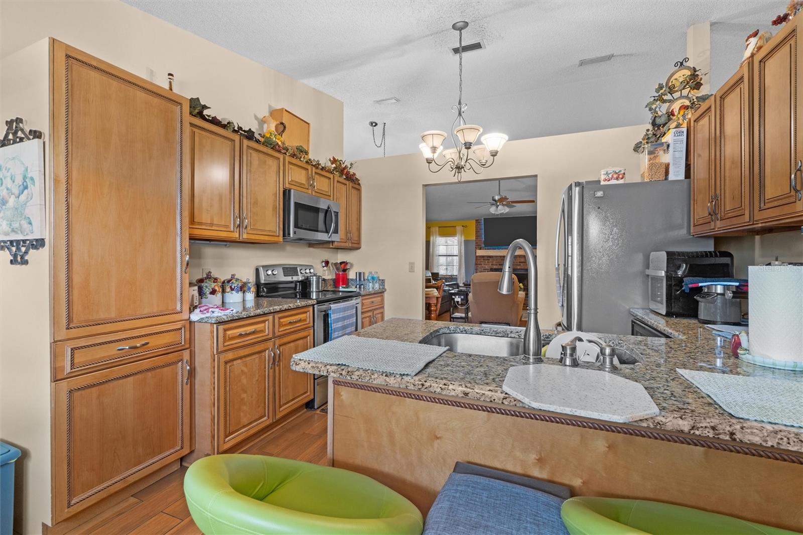Melhor negócio em Deltona! Novo aquecedor de água recém-instalado! Esta charmosa e espaçosa casa de 3 quartos e 2 banheiros oferece 1.600 pés quadrados de área de estar cuidadosamente projetada, além de um cômodo flexível que pode ser transformado em um 4º quarto, escritório, sala de jogos ou sala de família - o que melhor atender às suas necessidades! Os painéis solares mantêm a sua conta de luz baixa. Com um gerador elétrico caseiro com 8 painéis solares (valor de US$ 12 mil) que fica em casa! No interior, você entrará em uma área de estar aberta e iluminada, com tetos abobadados e uma impressionante lareira de tijolos - perfeita para noites aconchegantes. A cozinha é o sonho de um chef com armários de madeira, bancadas de granito, eletrodomésticos de aço inoxidável e uma encantadora janela saliente que banha o espaço com luz natural - um local ideal para a sua copa. A planta dividida proporciona privacidade, com dois quartos e banheiro completo de um lado e a suíte principal do outro, completa com closet e banheiro privativo. Lá fora, esta casa realmente brilha! A entrada de grandes dimensões, a garagem para 2 carros e a garagem oferecem muito espaço para estacionamento - incluindo espaço para o seu barco! Precisa de armazenamento extra? Você vai adorar os dois galpões. A varanda traseira fechada é perfeita para relaxar, enquanto o quintal sereno apresenta um pequeno lago com uma ponte de jardim - um retiro tranquilo em casa. Além disso, os painéis solares ajudam a manter baixos os custos de energia! Não perca esta oportunidade – agende sua exibição privada hoje mesmo!