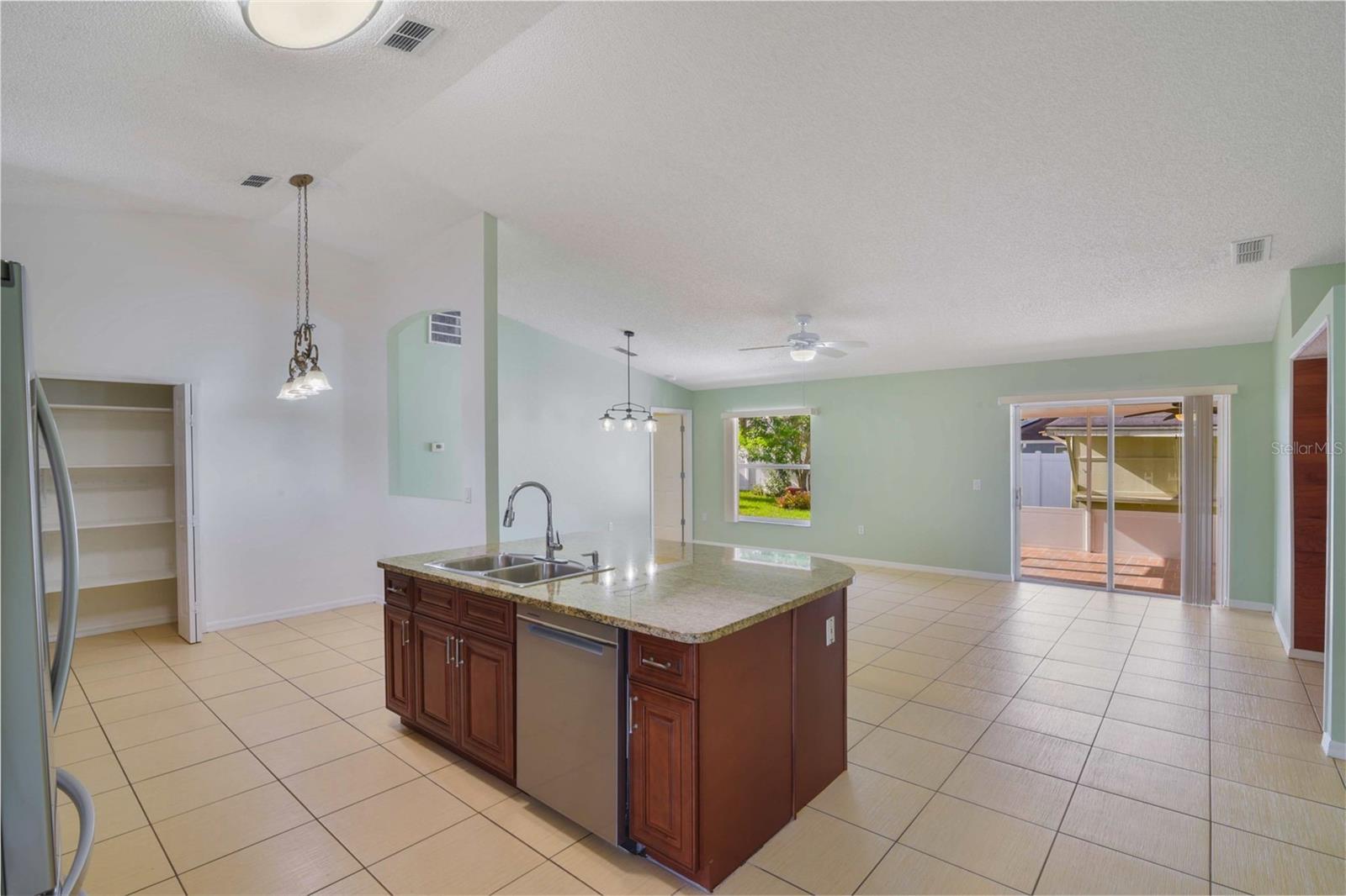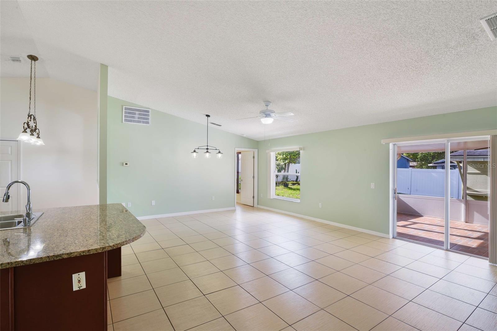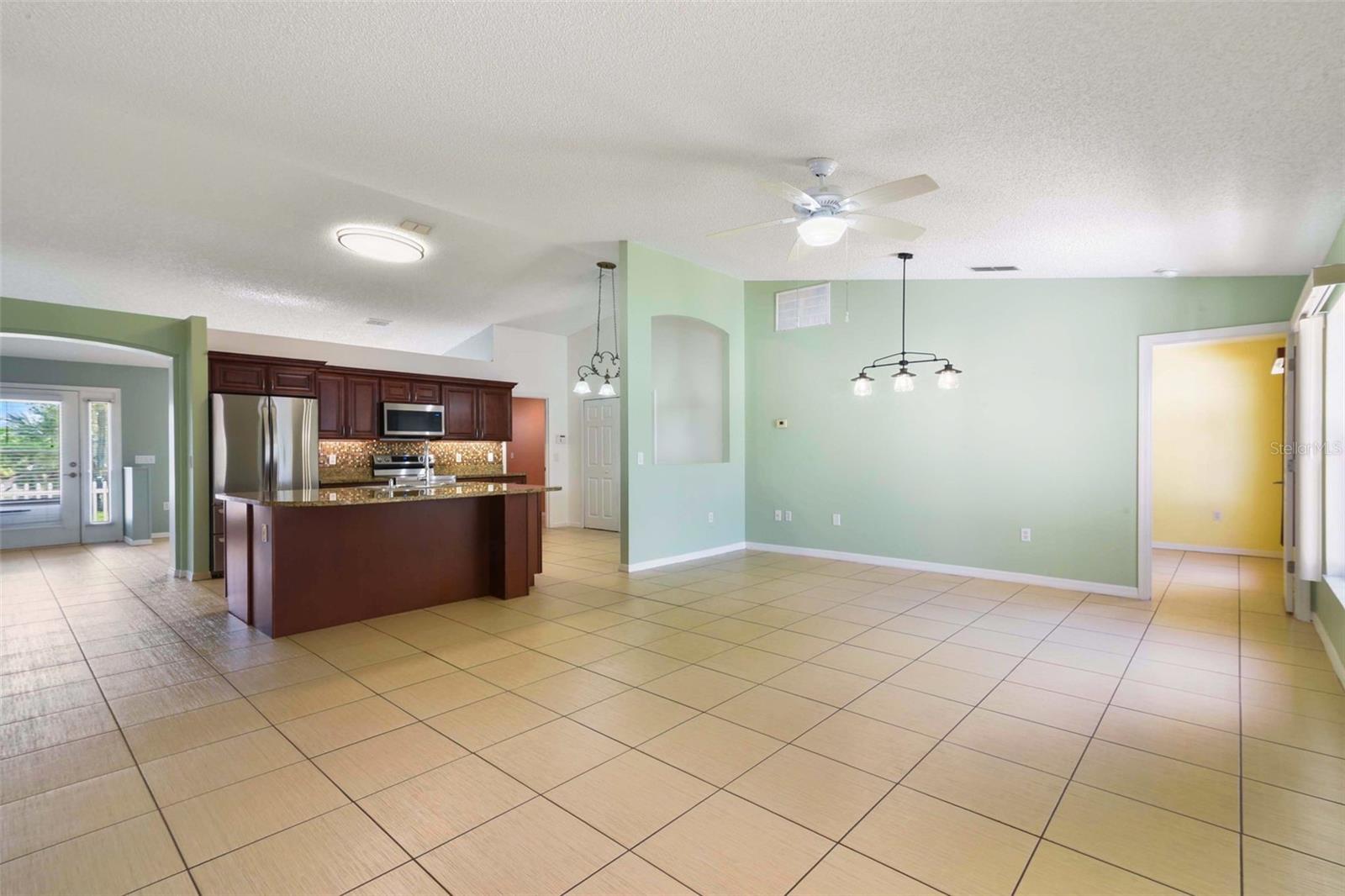 Uma ou mais fotos foram virtualmente encenadas. REDUÇÃO DE PREÇO! Casa com planta dividida em 3/2 em terreno de esquina, sem HOA e sem carpete! TELHADO MAIS NOVO. Totalmente cercado com vinil no quintal e uma adorável cerca branca envolvendo o pátio aberto da frente. Espaçosa e luminosa, a área de estar principal é uma combinação de cozinha/sala familiar EIK com teto abobadado que dá à casa uma sensação grandiosa. O quintal é maravilhoso e privado e pode ser acessado pela sala de família e pelo pátio coberto ao ar livre. Esta cozinha tem lindos armários de madeira, uma ilha enorme, bancada de granito, pia de aço e oferece área de estar adicional e armazenamento, incluindo recipientes de lixo removíveis. Todos os eletrodomésticos são s/s, a maioria mais novos, e a geladeira está incluída! O armazenamento é abundante aqui. Uma grande despensa de porta dupla com prateleiras de madeira tem a capacidade de armazenar todos os seus utensílios de cozinha menores e itens a granel. Além da ilha que oferece acomodações para sentar, há outras duas áreas de alimentação opcionais na área de estar principal E há também uma sala de jantar e de estar formal. Ao lado da cozinha fica a despensa com pia nova e acesso à garagem para 2 carros. O quarto principal pode acomodar uma cama king size, espaço para área de estar e há um WIC. Este quintal será o seu oásis com espaço e oportunidade para cultivar árvores cítricas, plantar uma horta ou um jardim de flores ou adicionar um recurso de água ou fazer todos os 3! Tem até um galpão que pode servir de área de envasamento, churrasqueira, casinha de brinquedo ou galpão! O telhado tem apenas 2 anos e esta casa está bem conservada e pronta para morar! A localização é excelente e perto de lojas e I-4 com aplicativos Disney e Daytona Beach. 1 hora ou menos.