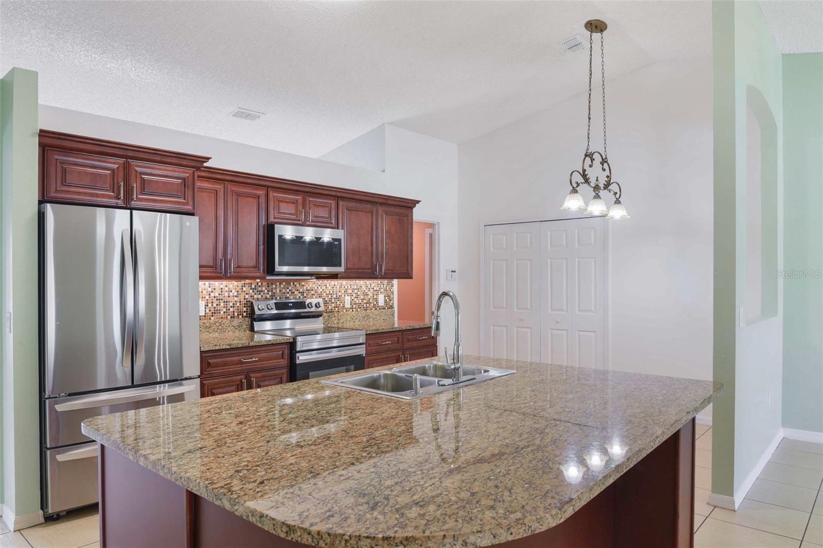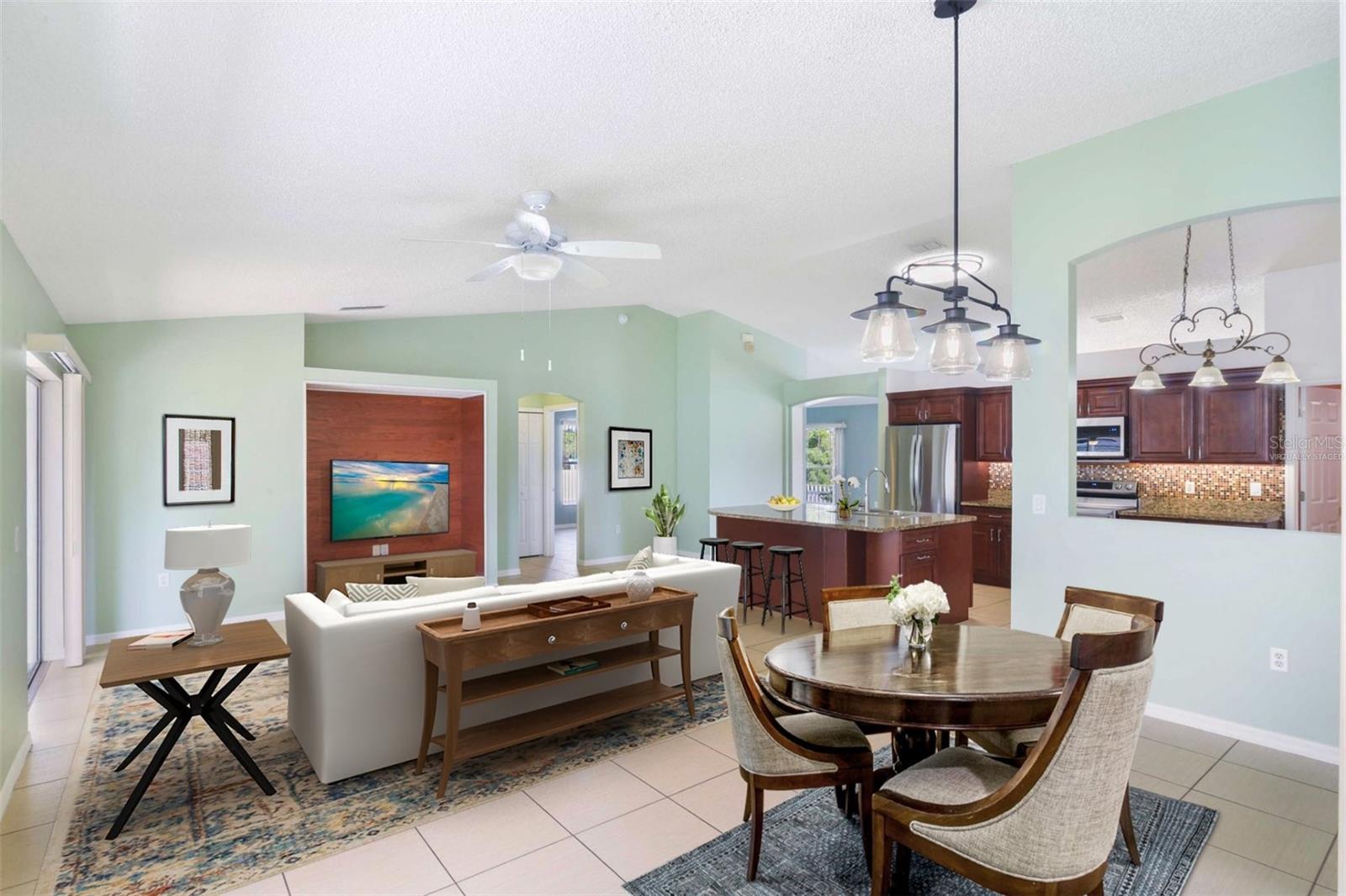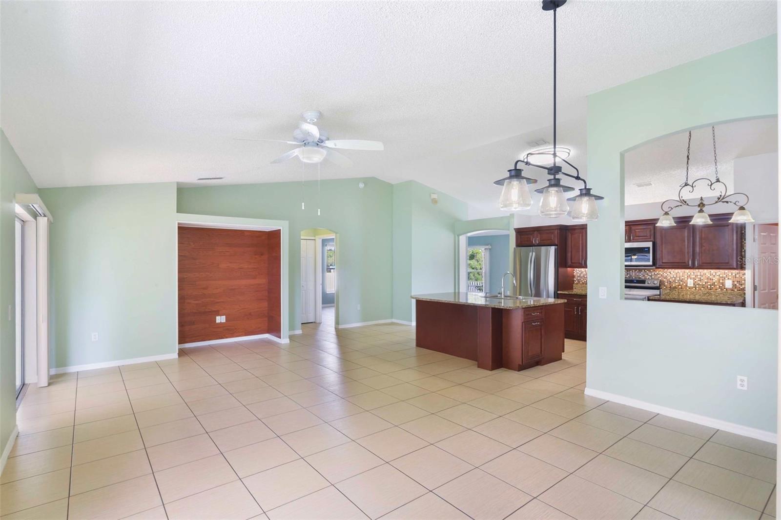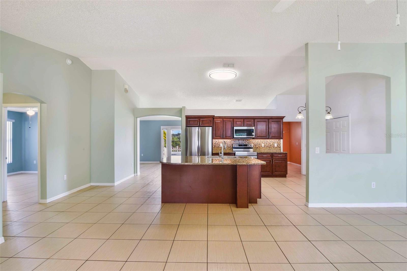 Uma ou mais fotos foram virtualmente encenadas. REDUÇÃO DE PREÇO! Casa com planta dividida em 3/2 em terreno de esquina, sem HOA e sem carpete! TELHADO MAIS NOVO. Totalmente cercado com vinil no quintal e uma adorável cerca branca envolvendo o pátio aberto da frente. Espaçosa e luminosa, a área de estar principal é uma combinação de cozinha/sala familiar EIK com teto abobadado que dá à casa uma sensação grandiosa. O quintal é maravilhoso e privado e pode ser acessado pela sala de família e pelo pátio coberto ao ar livre. Esta cozinha tem lindos armários de madeira, uma ilha enorme, bancada de granito, pia de aço e oferece área de estar adicional e armazenamento, incluindo recipientes de lixo removíveis. Todos os eletrodomésticos são s/s, a maioria mais novos, e a geladeira está incluída! O armazenamento é abundante aqui. Uma grande despensa de porta dupla com prateleiras de madeira tem a capacidade de armazenar todos os seus utensílios de cozinha menores e itens a granel. Além da ilha que oferece acomodações para sentar, há outras duas áreas de alimentação opcionais na área de estar principal E há também uma sala de jantar e de estar formal. Ao lado da cozinha fica a despensa com pia nova e acesso à garagem para 2 carros. O quarto principal pode acomodar uma cama king size, espaço para área de estar e há um WIC. Este quintal será o seu oásis com espaço e oportunidade para cultivar árvores cítricas, plantar uma horta ou um jardim de flores ou adicionar um recurso de água ou fazer todos os 3! Tem até um galpão que pode servir de área de envasamento, churrasqueira, casinha de brinquedo ou galpão! O telhado tem apenas 2 anos e esta casa está bem conservada e pronta para morar! A localização é excelente e perto de lojas e I-4 com aplicativos Disney e Daytona Beach. 1 hora ou menos.