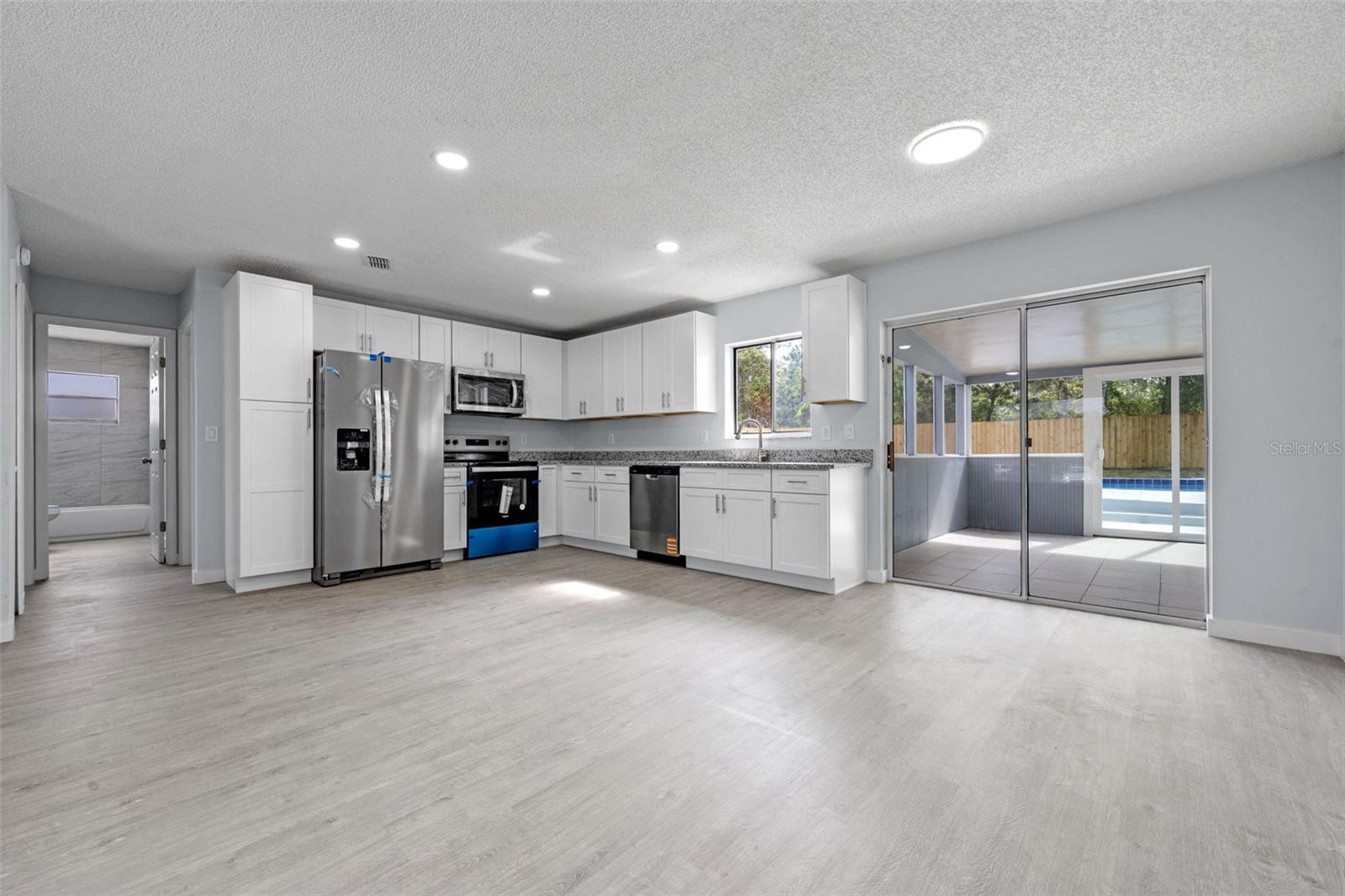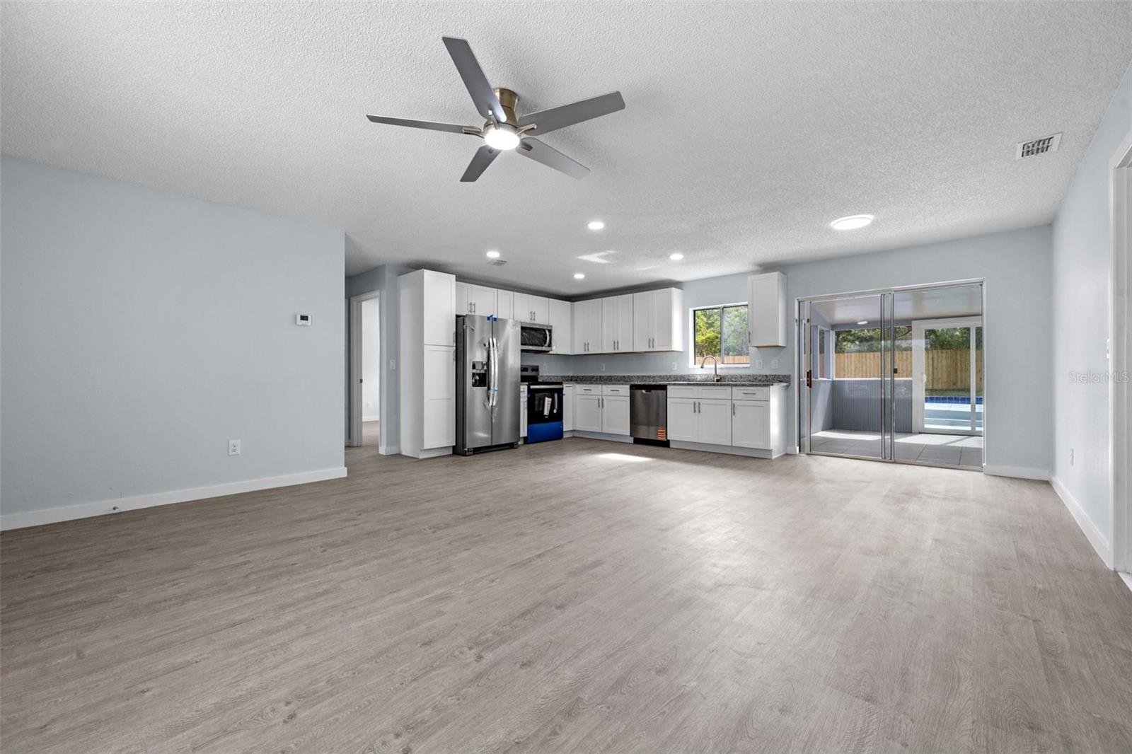 Bem-vindo ao 2763 Waco Dr E, Deltona - uma casa com piscina de 3 camas e 2 banheiros, pronta para morar, com atualizações modernas. Living em conceito aberto, novos pisos LVP, pintura fresca, ventiladores de teto. Cozinha reformada: armários brancos, balcões de granito, eletrodomésticos SS. Banhos atualizados; primário tem chuveiro de vidro sem moldura. Quartos espaçosos, varanda coberta, piscina reformada, nova cerca de privacidade. Novo AC e dutos. Bairro tranquilo perto de escolas, parques, I-4.