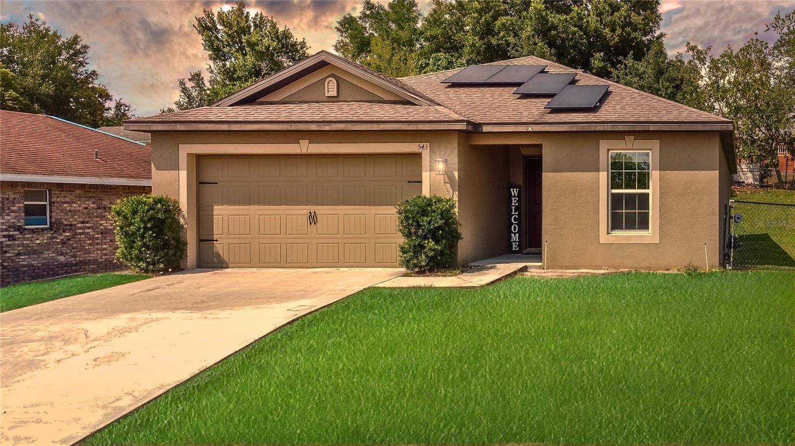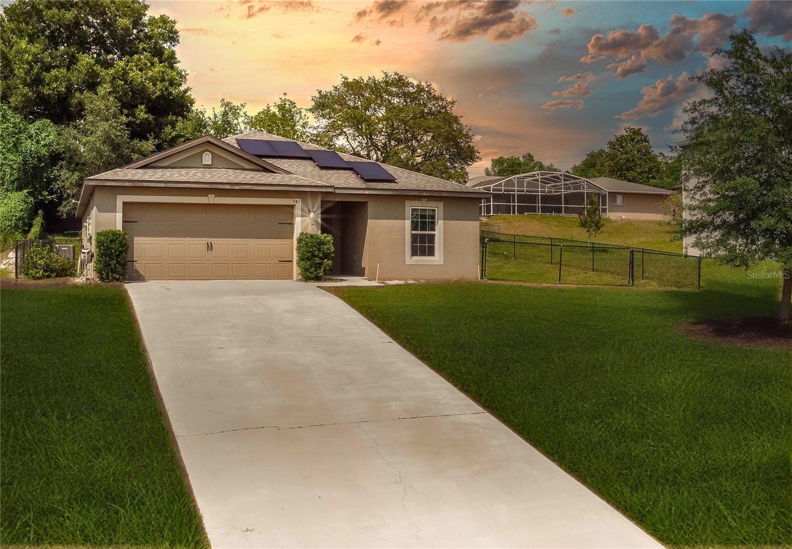 Bem-vindo a esta casa bem mantida de 3 quartos e 2 banheiros construída em 2020, oferecendo conforto e funcionalidade modernos no coração de Deltona. Esta residência de um andar apresenta um layout de conceito aberto com uma espaçosa área de estar e jantar, perfeita para entretenimento ou relaxamento. The kitchen boasts granite-style countertops, 36” upper cabinets with crown molding, energy-efficient appliances and solar panels included. The private primary suite includes a generous walk-in closet and end-suite bath. Additional highlights include a dedicated laundry room, a covered back patio ideal for outdoor gatherings, and a two-car garage. Situated on a landscaped lot, this home is close to local parks, top-rated golf Cursos, e a uma curta viagem de carro para as praias e a recreação de água.