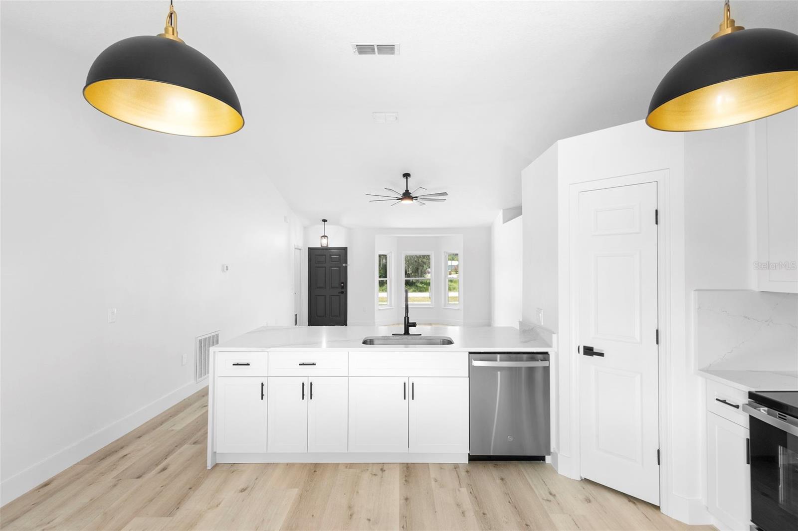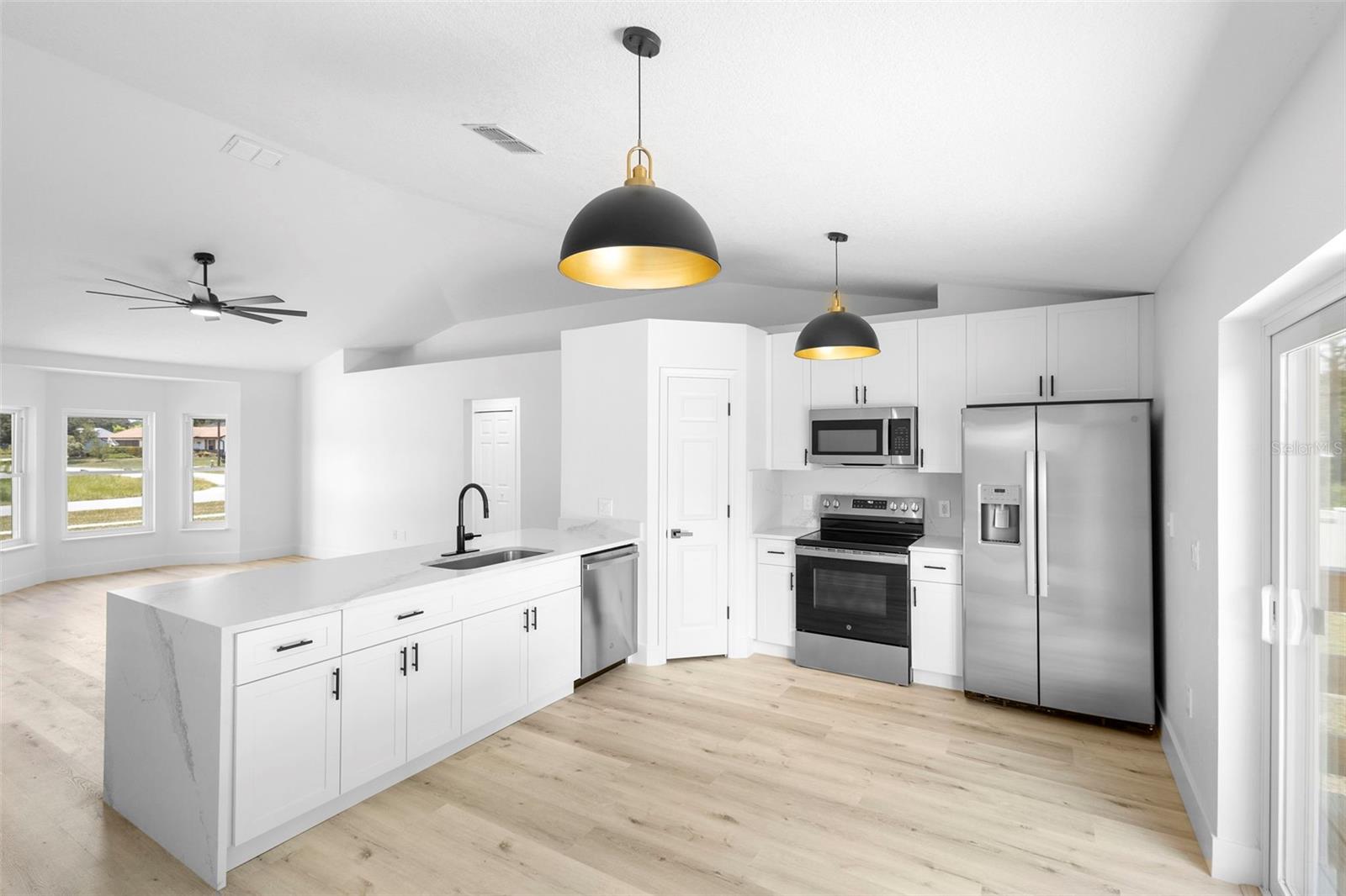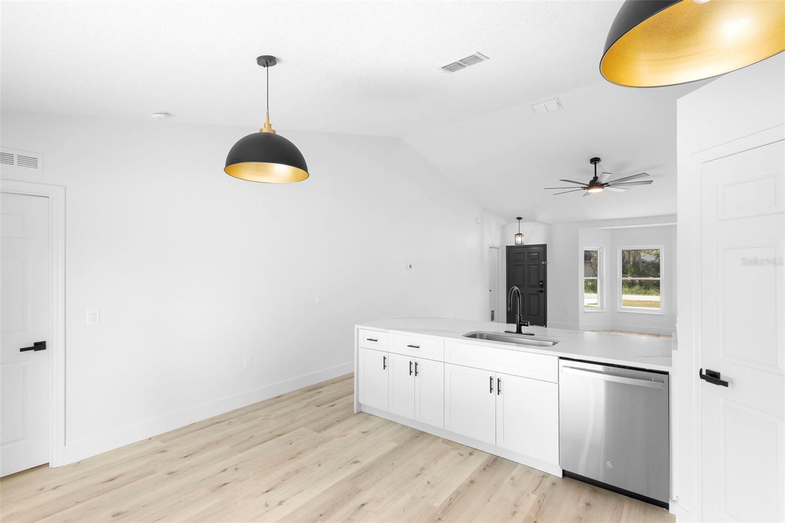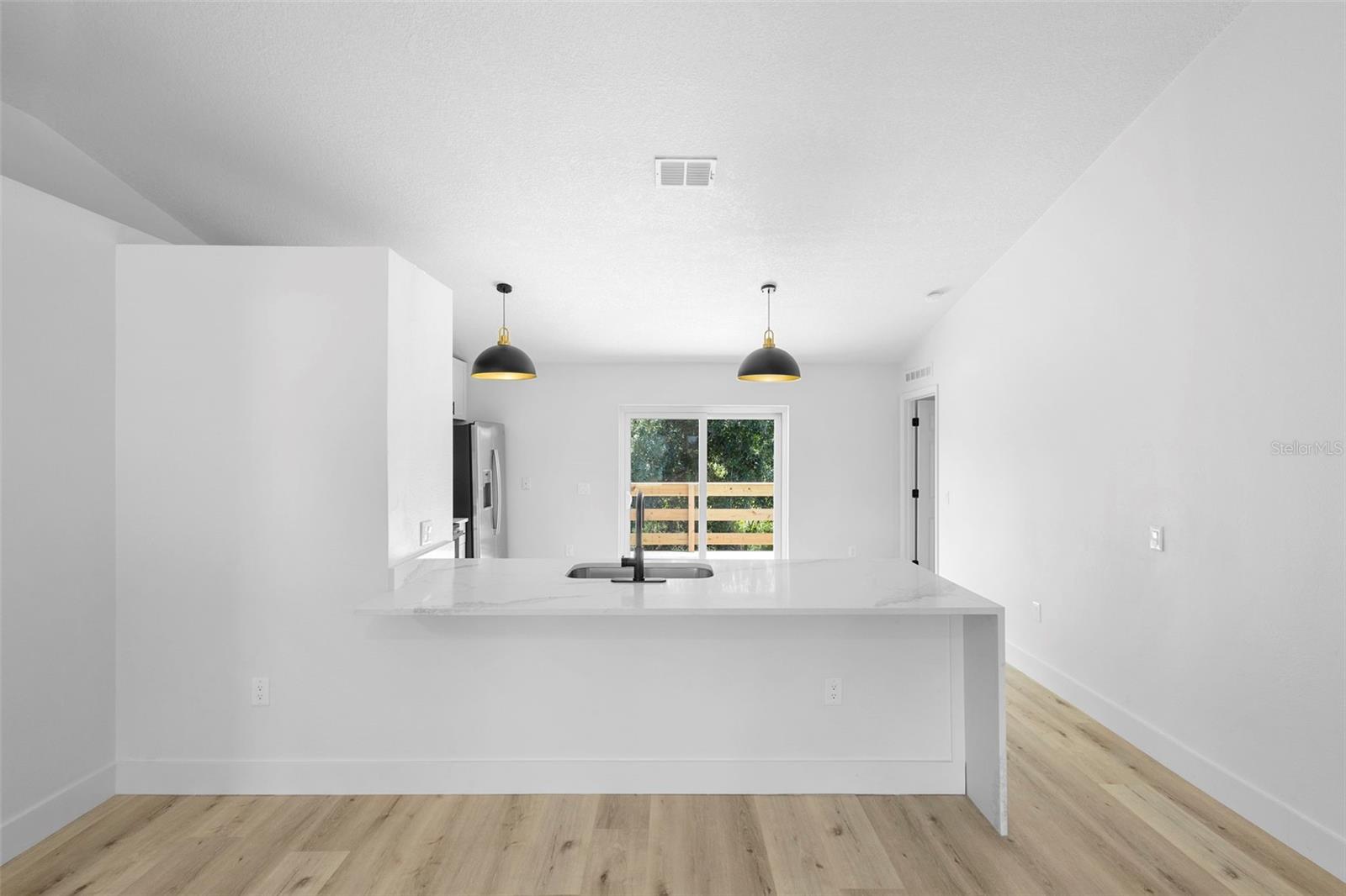 Casa totalmente remodelada de 3 quartos e 2 banheiros em Deltona, oferecendo uma estética moderna e uma vida sem preocupações. Apresentando um telhado novo, tinta fresca por dentro e por fora e piso de tábua de vinil de luxo por toda parte. O layout de conceito aberto possui tetos abobadados e luz natural abundante. A cozinha está equipada com bancadas de quartzo, armários agitadores e utensílios de aço inoxidável. Ambos os banheiros foram completamente atualizados com ladrilhos personalizados e vaidades modernas. Desfrute de uma vida inteira fora de fora com portas de vidro deslizantes, levando a um novo deck de madeira com vista para um quintal pacífico e privado, sem vizinhos traseiros. A casa também inclui uma espaçosa garagem de dois carros e uma garagem ampla para estacionamento extra. Localizado perto da I-4, escolas, compras e parques. Sem HOA e mudança de movimento-esta casa oferece a combinação perfeita de estilo, conforto e conveniência. Agende sua turnê hoje!