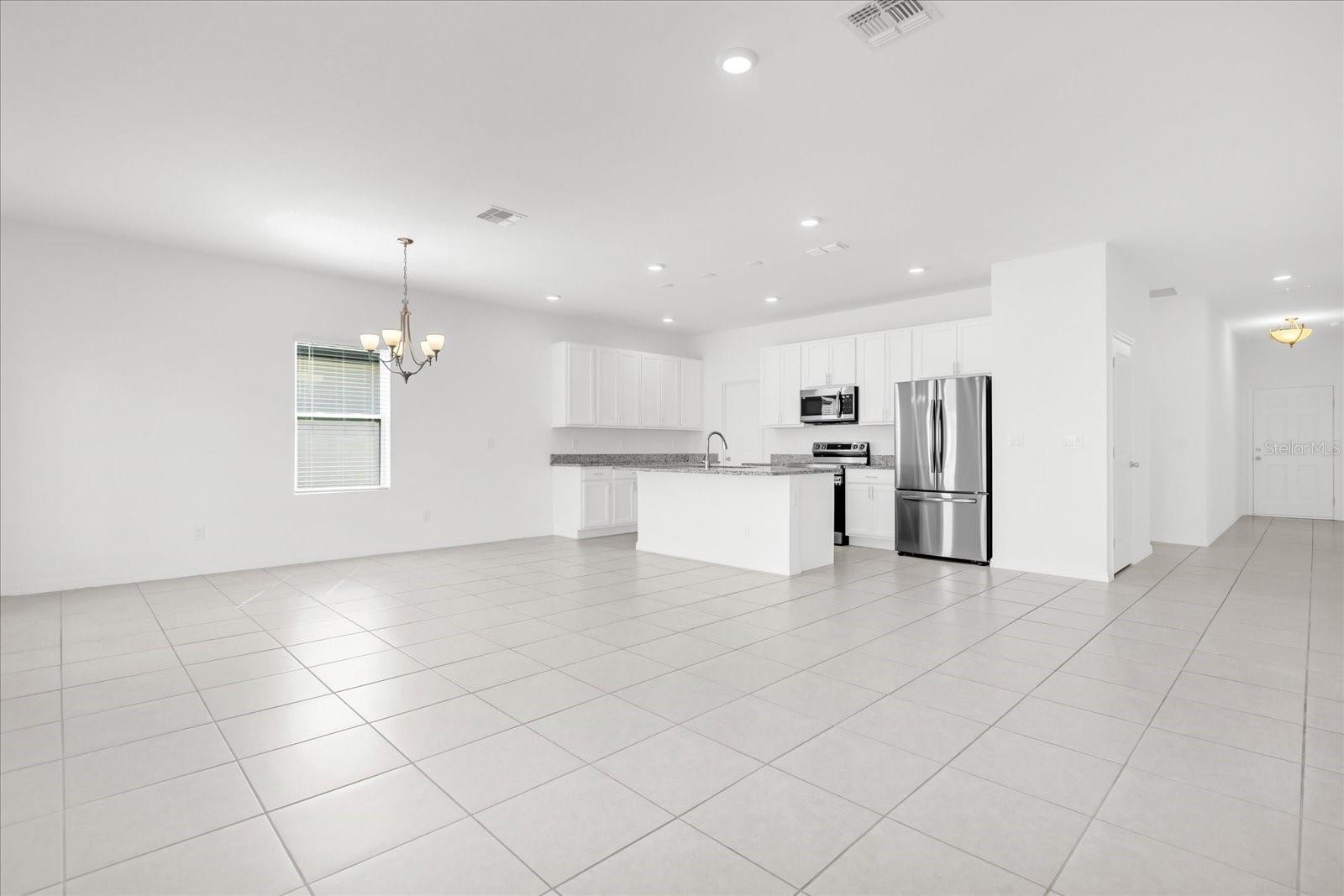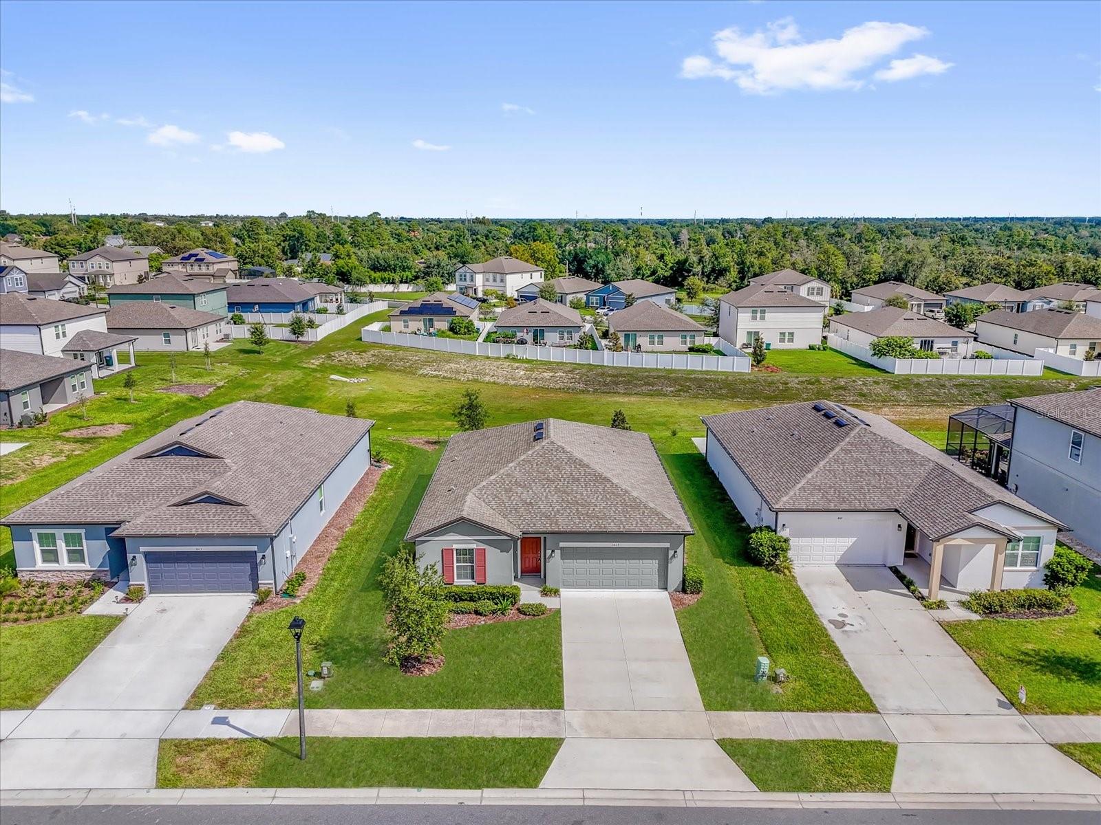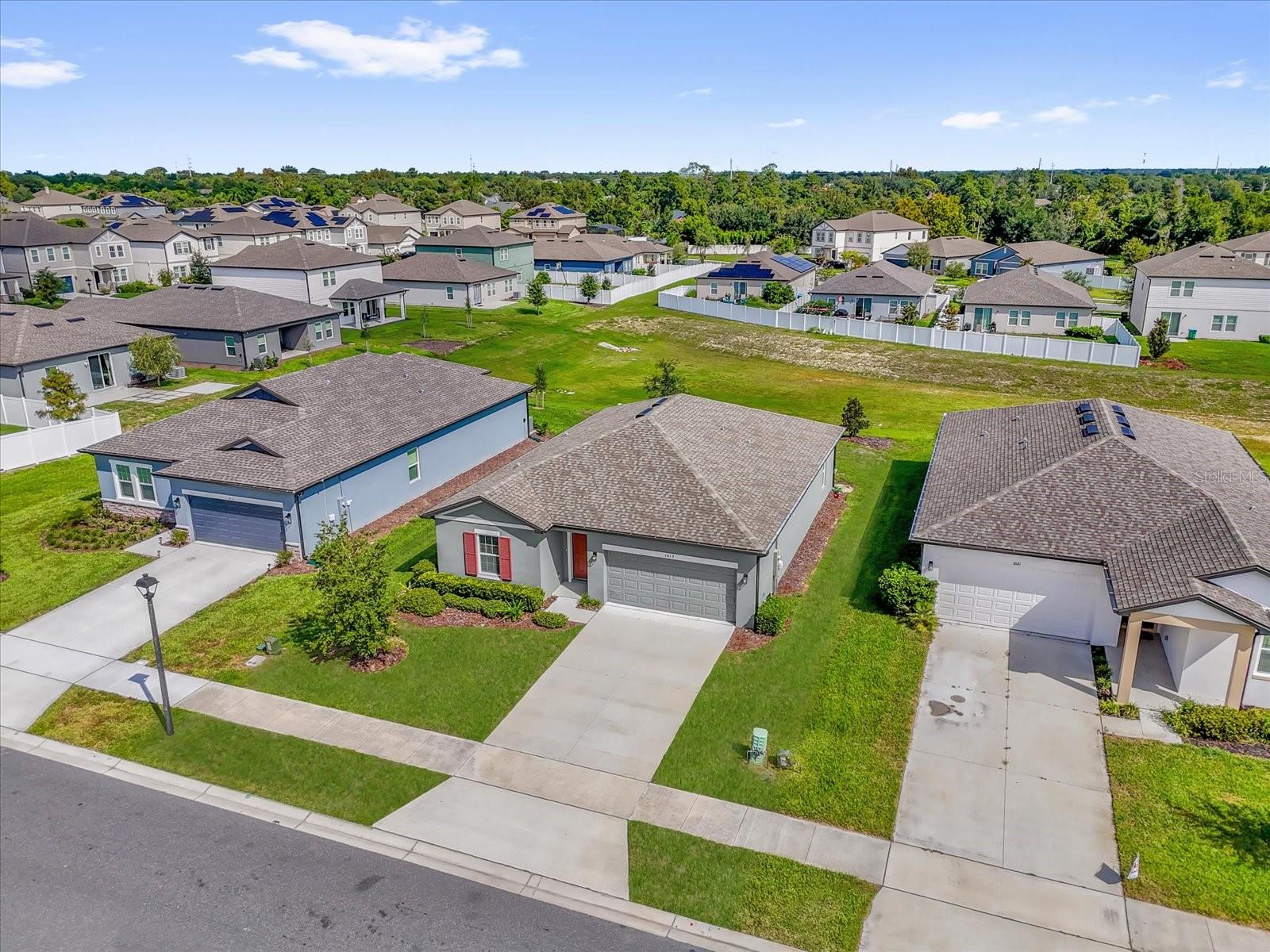 Esta criança de dois anos, 3 quartos, 2 banheiros, que parecia nova. O gramado será substituído em breve. 42” Premium cabinet in the kitchen, all cabinets throughout the house are upgraded, the backyard backs up to a wet/dry retention, with the extra open space, it made your yard like a park. Primary suite has a large walk-in closet. Walking distance to supermarkets, shops, and restaurants. Less than a minute's drive to I-4 and HWY 17, HWY 415, and HWY 44, and a 30 mins drive to New Smyrna Praia, Blue Springs.