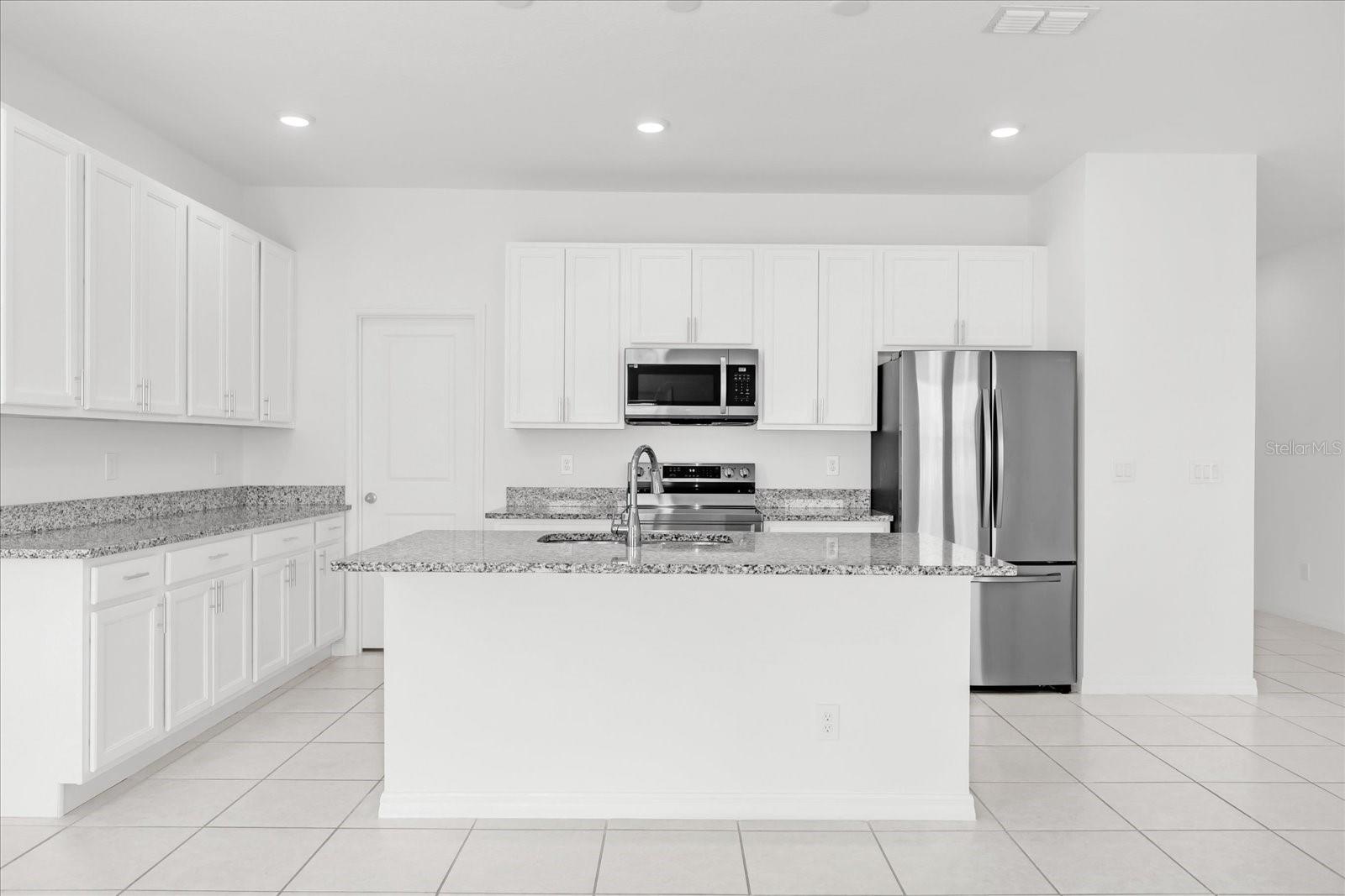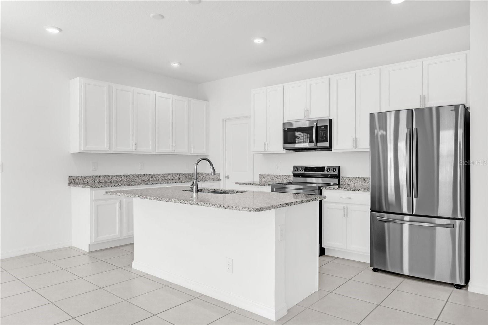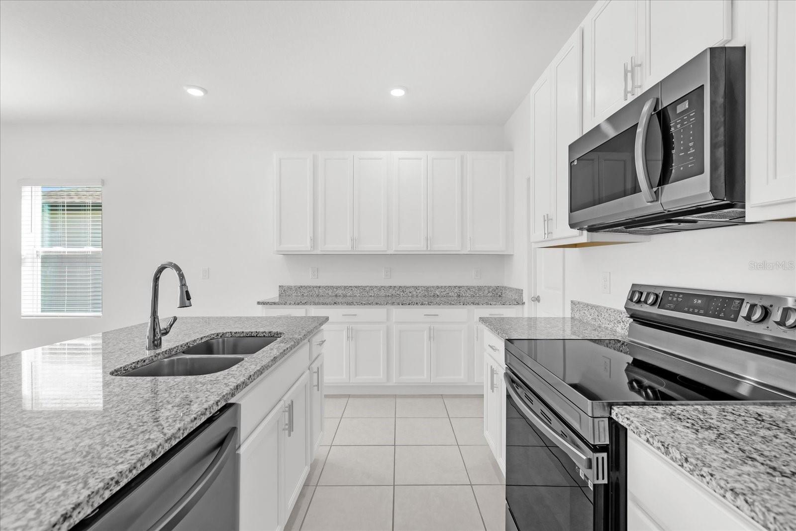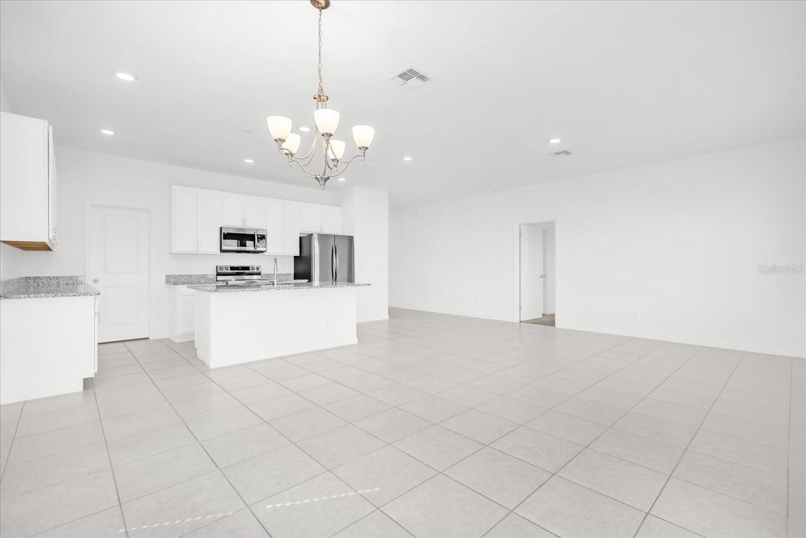 Esta criança de dois anos, 3 quartos, 2 banheiros, que parecia nova. O gramado será substituído em breve. 42” Premium cabinet in the kitchen, all cabinets throughout the house are upgraded, the backyard backs up to a wet/dry retention, with the extra open space, it made your yard like a park. Primary suite has a large walk-in closet. Walking distance to supermarkets, shops, and restaurants. Less than a minute's drive to I-4 and HWY 17, HWY 415, and HWY 44, and a 30 mins drive to New Smyrna Praia, Blue Springs.