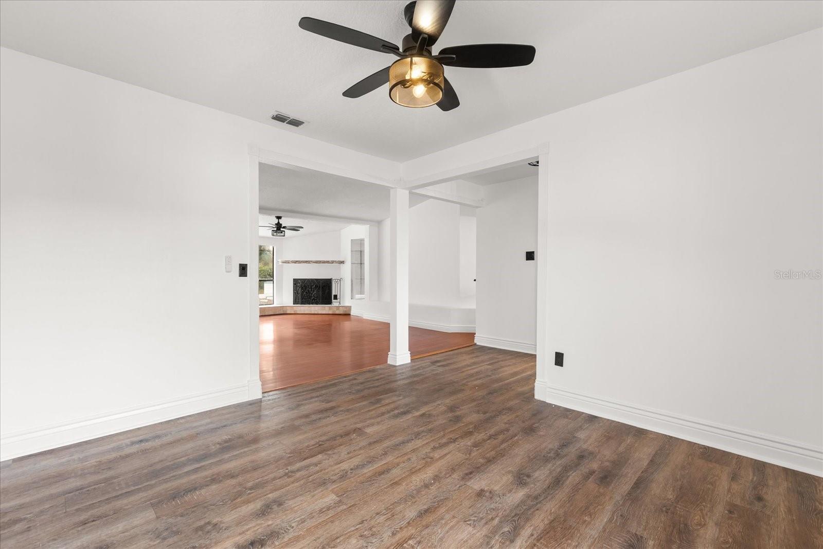 Uma ou mais fotos foram virtualmente encenadas. Bem-vindo a esta espaçosa casa em um bairro tranquilo de Deltona! Apresentando uma planta aberta com lindo piso em madeira, cores neutras e uma lareira aconchegante, esta casa oferece a combinação perfeita de conforto e funcionalidade. A cozinha inclui bancadas de granito, armários escuros e amplo balcão, ideal para cozinhar e se divertir no dia a dia. Desfrute de um layout de quarto dividido para maior privacidade, interiores claros e uma área de piscina protegida perfeita para relaxar ou organizar reuniões. Convenientemente localizada perto de escolas, parques, lojas e principais rodovias, esta casa oferece conforto e conveniência em um ótimo pacote.