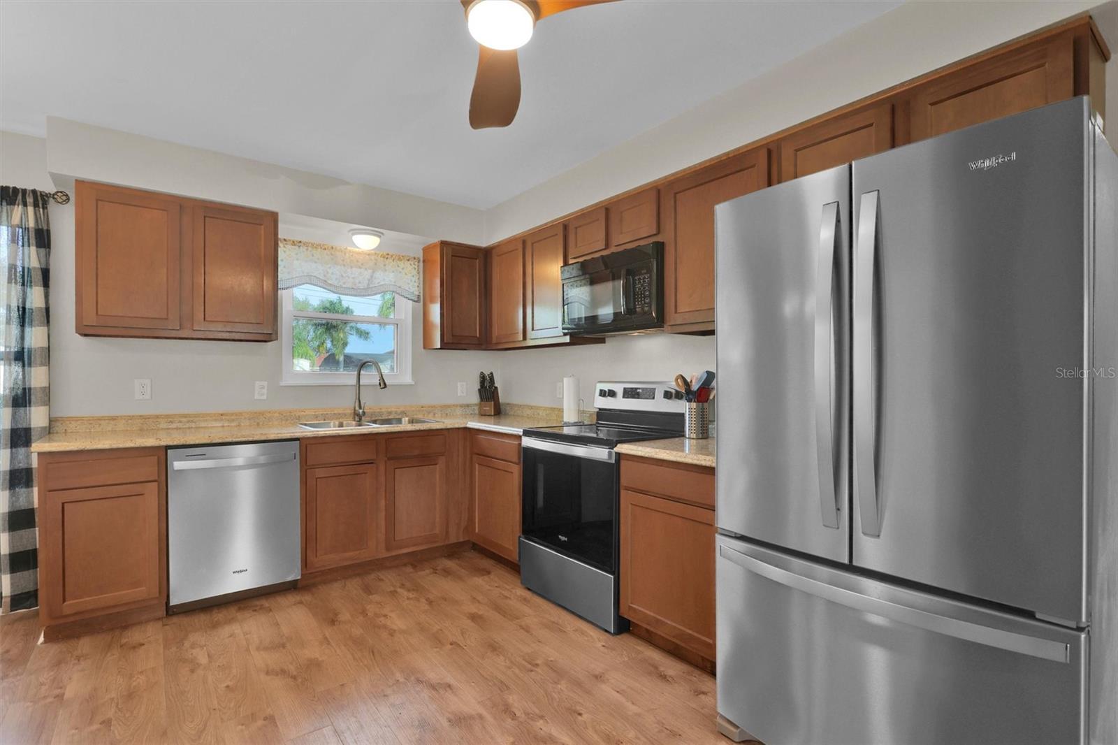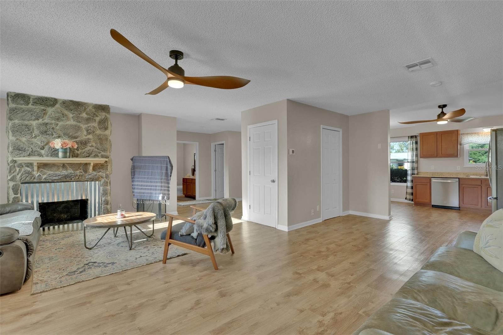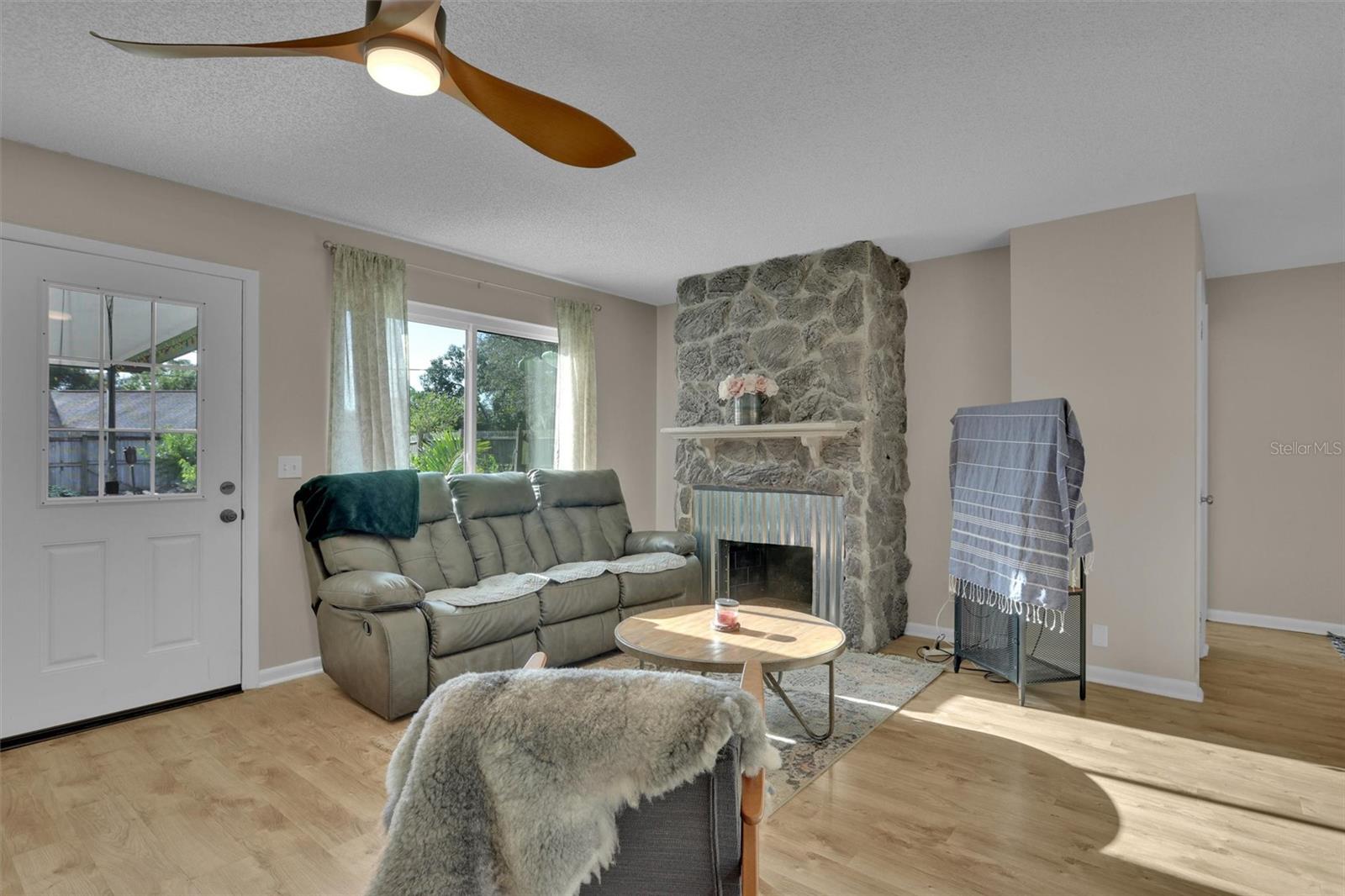 Uma ou mais fotos foram virtualmente encenadas. Venha conhecer sua nova casa! Esta encantadora casa de 2 quartos tem muito para desfrutar com um amplo hall de entrada que dá acesso à sala de estar aberta com lareira em pedra e zona de cozinha/pequeno-almoço. Utensílios de cozinha: fogão, micro-ondas, lava-louças e geladeira (novo é 2023) estão incluídos. Lavadora e secadora mais recentes também estão incluídas. Ambos os quartos possuem ventiladores de teto, e a sala bônus anteriormente fechada possui closet. A lavandaria encontra-se no restante espaço da garagem/oficina. A sala de bônus pode ser facilmente convertida novamente em garagem. O banheiro foi atualizado com uma nova banheira/backsplash em 2022, nova pintura e torneira do banheiro. Do lado de fora, você vai adorar o grande quintal paisagístico e o pátio coberto. Este é o espaço perfeito para desfrutar do ar livre! Desfrute de canteiros elevados, arbustos de mirtilo, batata doce, pessegueiros, morangos, abacaxis, plantas de plumeria e roseiras. Outras atualizações incluem nova pintura nos quartos, portas dianteiras e traseiras substituídas e pintadas, substituídos 3 alarmes de incêndio, substituído a pia da cozinha, conectado o encanamento na oficina para a pia da lavanderia, substituído o termostato AC, instalado o ventilador e o interruptor do banheiro, removido a pipoca do teto em ambos quartos então texturizados e pintados, substituição da frente da lareira por revestimento de aço galvanizado e reparo da lareira com vazamento. Todas as janelas foram substituídas, calhas substituídas, algumas cercas e portões substituídos. Esta casa fica a poucos minutos de vários parques (alguns deles aceitam cães), parques para cães, parques infantis, lagos e trilhas para caminhada.