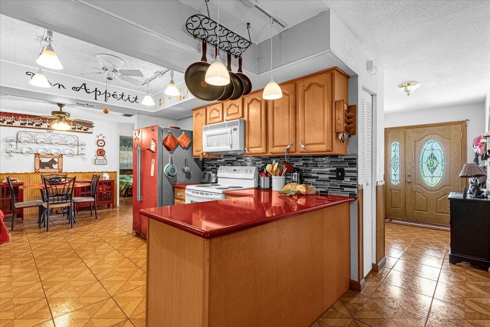 Bem-vindo ao lar! Não perca a oportunidade de possuir esta linda residência unifamiliar de 3 quartos e 2 banheiros localizada em um bairro bem estabelecido em Deltona. Esta casa é composta por 2.228 pés quadrados de área útil com uma oficina completa independente com elevador para carros, e a propriedade ocupa mais de meio acre de terreno. Esta casa possui muitas características incríveis que fazem dela o sonho de qualquer comprador. Você tem uma garagem para dois carros e uma garagem para dois carros, tornando-o perfeito para receber convidados. Ao entrar pela porta da frente, você é recebido com piso de cerâmica e uma planta dividida. À sua direita você tem uma sala de estar formal conectada à sala de jantar. Este lado da casa também possui o quarto principal com armários duplos e um amplo banheiro privativo. O banheiro privativo dispõe de banheira de azulejos no jardim, pia grande e box amplo. A cozinha é o ponto central da casa com bancadas de quartzo vermelho, backsplash de azulejos e armários de madeira maciça. Movendo-se para o lado esquerdo da casa você tem sua sala de família com uma grande lareira a lenha e dois quartos amplos com banheiro compartilhado. Esta propriedade também tem um amplo pátio traseiro com um bar completo, um sistema de ar condicionado separado e amplas janelas que permitem a entrada de muita luz natural, tornando este espaço o sonho de um artista. Nos fundos você tem um quintal espaçoso com muito espaço para animais de estimação e crianças brincarem. O pátio também possui uma grande oficina de automóveis com portas de enrolar e um elevador completo, perfeito para quem precisa de trabalho ou tem um hobby de carros clássicos. Por último, esta casa tem um gerador completo e um sistema de amaciante de água de primeira linha. Esta casa tem muito a oferecer e está convenientemente localizada entre o centro de Orlando e as belas praias da Flórida. Não espere, agende sua exibição privada hoje mesmo!
