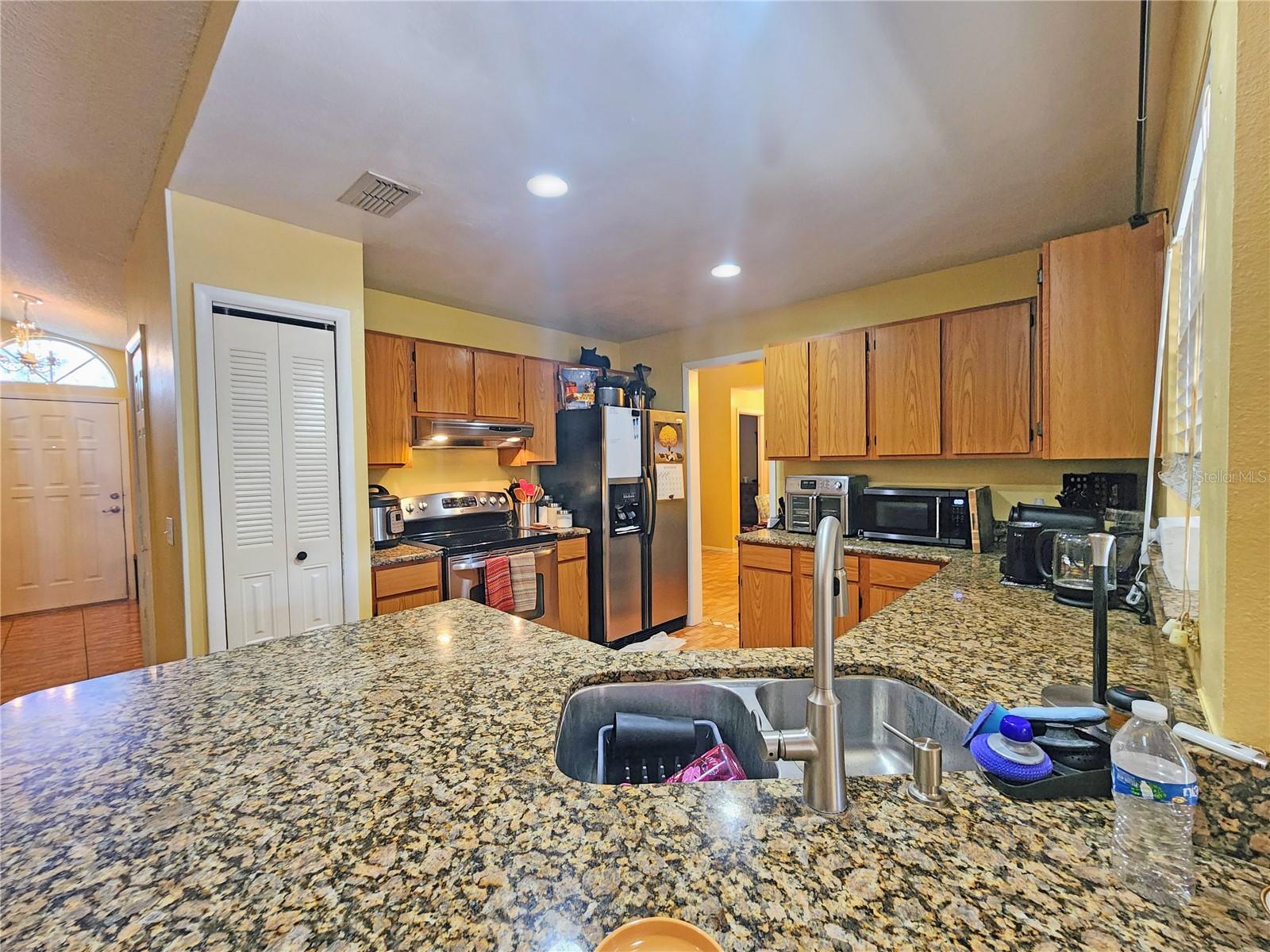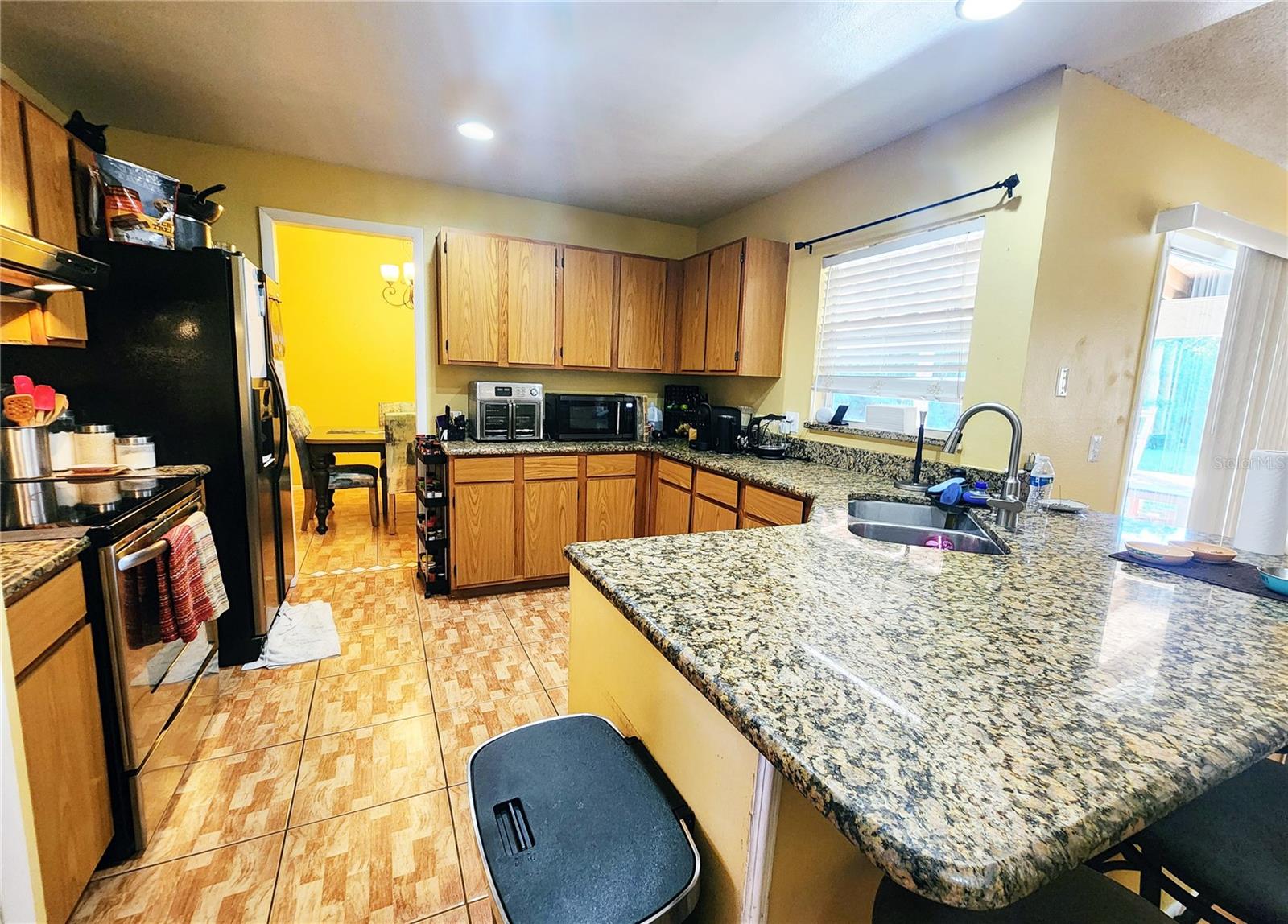 Esta casa com planta dividida de 3 quartos e 2 banheiros em quase ½ acre com um ENORME quintal cercado possui um NOVO TELHADO em 2022 e um NOVO SISTEMA DE AR CONDICIONADO em 2020. A amplitude dos tetos da catedral faz com que esta casa pareça ainda maior do que é. , e o lindo azulejo deslocado flui por todos os cômodos desta casa. A cozinha com localização central é aberta para as áreas de jantar formais e informais e para a sala de família e inclui todos os eletrodomésticos de aço inoxidável, iluminação embutida, despensa e muitas lindas bancadas de granito. A sala de estar da frente está aberta para a sala de jantar formal, que possui uma linda janela saliente que dá para o quintal traseiro através da varanda privativa dos fundos. A grande sala familiar possui muita iluminação natural e flui para a varanda traseira de 26' X 15' e para o enorme quintal cercado, que inclui portões laterais para estacionamento de trailers ou barcos. A suíte principal de 16' X 10' inclui tetos altos, closet e banheiro privativo com pia com tampo de granito e pias duplas, banheira de imersão no jardim, vaso sanitário e box amplo. Esta casa está localizada a meio caminho entre as praias de Orlando e Daytona, com acesso rápido à I-4, tornando a viagem para qualquer lugar muito fácil! Todas as medições são aproximadas e devem ser verificadas de forma independente.