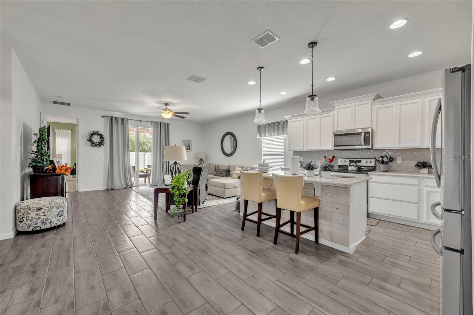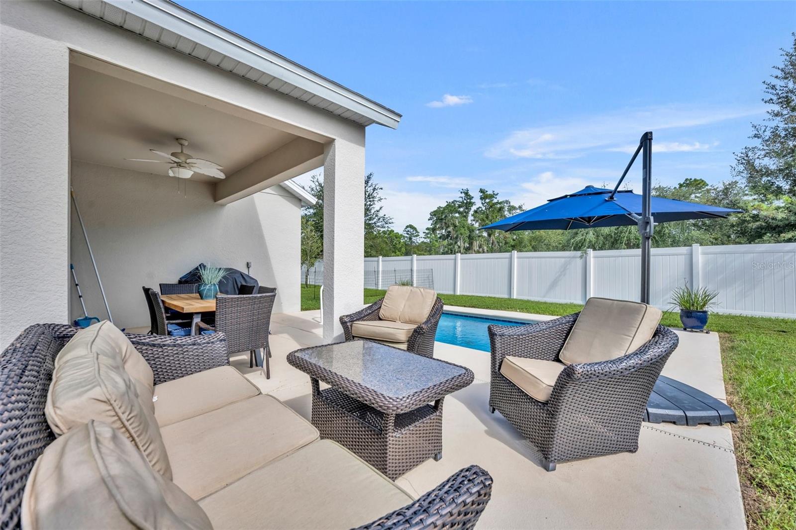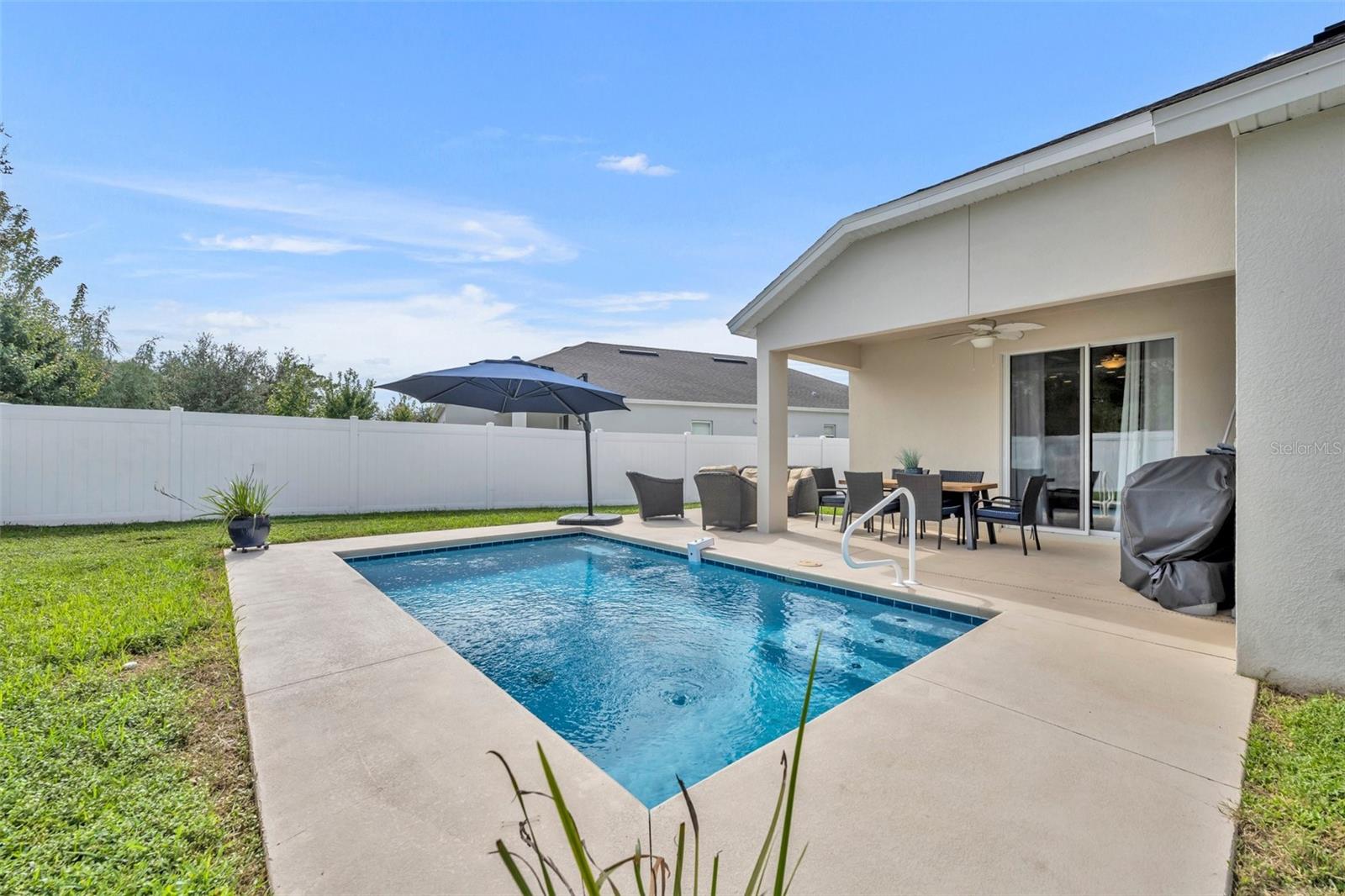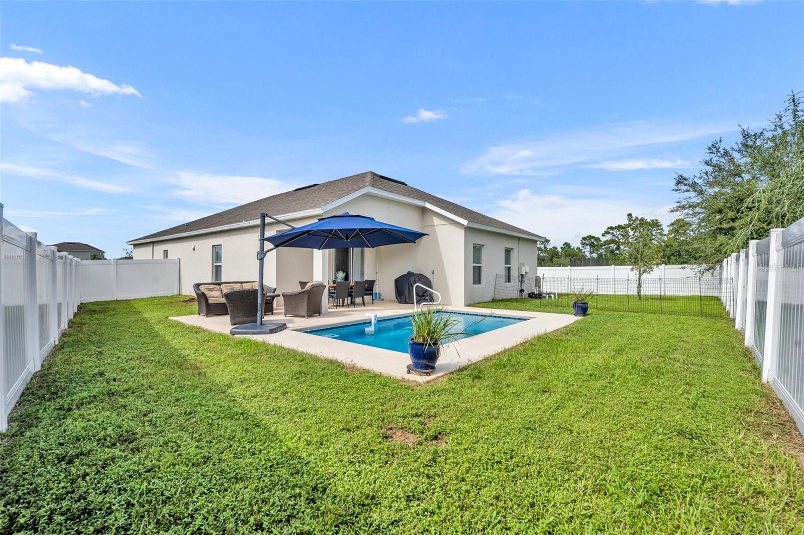 Esta deslumbrante casa de 4 quartos e 3 banheiros, oferecendo espaçosos 2.110 pés quadrados, é a combinação ideal de vida moderna e comodidades ideais para famílias. A planta aberta cria um ambiente acolhedor e espaçoso, perfeito para entreter ou simplesmente relaxar com seus entes queridos. Aproveite o luxo de duas suítes master, proporcionando amplo espaço para sua família relaxar. Saia para o seu oásis privado no quintal, completo com uma piscina cintilante, ideal para entretenimento ou simplesmente para aproveitar o sol. Localizada a apenas 1,6 km das escolas locais, esta casa é perfeita para famílias. Experimente a tranquilidade de viver em uma comunidade segura e acolhedora. Esta casa é um verdadeiro empecilho, apresentando um interior moderno, uma garagem para 2 carros e sistemas HVAC e de telhado mais recentes. Convenientemente localizada a apenas 30 minutos das belas praias de New Smyrna Beach e do charme histórico de Deland, esta casa oferece a combinação perfeita de vida suburbana e acessibilidade costeira. Não perca esta oportunidade de tornar esta linda casa sua!