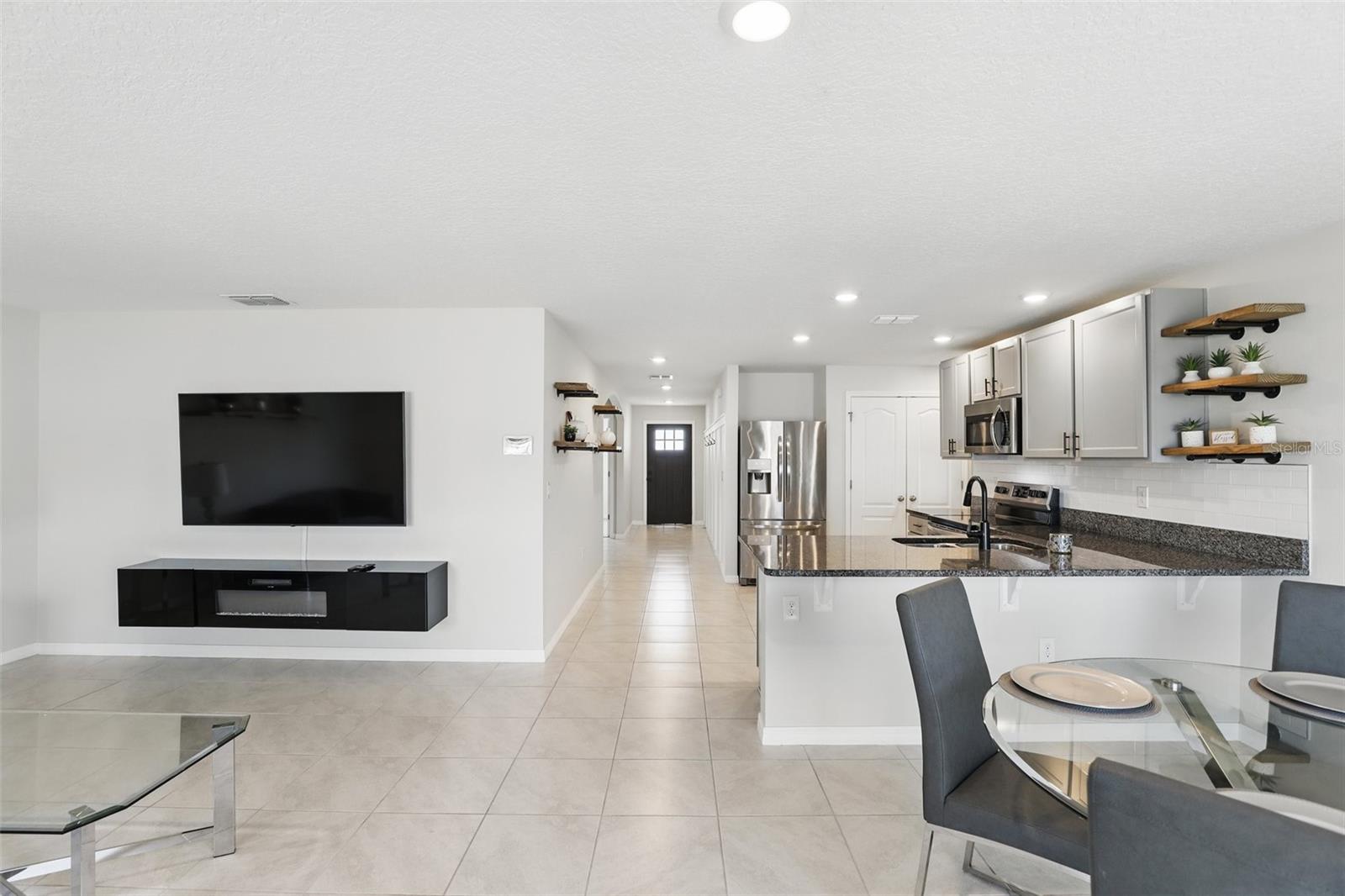 Descubra uma oportunidade excepcional de possuir uma casa quase nova com um design moderno de conceito aberto, perfeitamente situado em um local de grandes dimensões, com um espaçoso quintal totalmente cercado, oferecendo privacidade e espaço para relaxar ou divertir. No interior, o layout atencioso inclui dois quartos secundários posicionados na frente da casa, separados por um banheiro de salão convenientemente localizado - ideal para hóspedes ou familiares. O hall de recepção é aprimorado com acabamentos em estilo de fazenda que adicionam calor e caráter ao espaço. Um vestíbulo privado, perto da cozinha, fornece acesso direto à garagem de dois carros e a uma lavanderia separada. A cozinha do chef é um destaque, exibindo armários cinza modernos, hardware elegante, backsplash de telha, utensílios de aço inoxidável, bancadas em granito com assentos de barra de café da manhã e uma despensa para amplo armazenamento. A cozinha flui sem esforço para a área de jantar e a espaçosa sala grande, onde janelas grandes e uma porta de vidro deslizante oferecem belas vistas do quintal de grandes dimensões. O quarto da família oferece espaço generoso para uma vida confortável e flexibilidade para acomodar as necessidades tecnológicas em evolução de hoje. A suíte primária privada está localizada na parte traseira da casa e apresenta uma luz natural abundante, amplo espaço na parede, um closet e uma atmosfera serena. Destaques adicionais incluem recursos domésticos inteligentes com eficiência energética, painéis solares, janelas de baixo e baixo e sem panela e sem HOA, ajudando a manter os custos de vida mensais mais baixos. Não perca a chance de visitar esta bela casa - faça o seu show particular hoje!