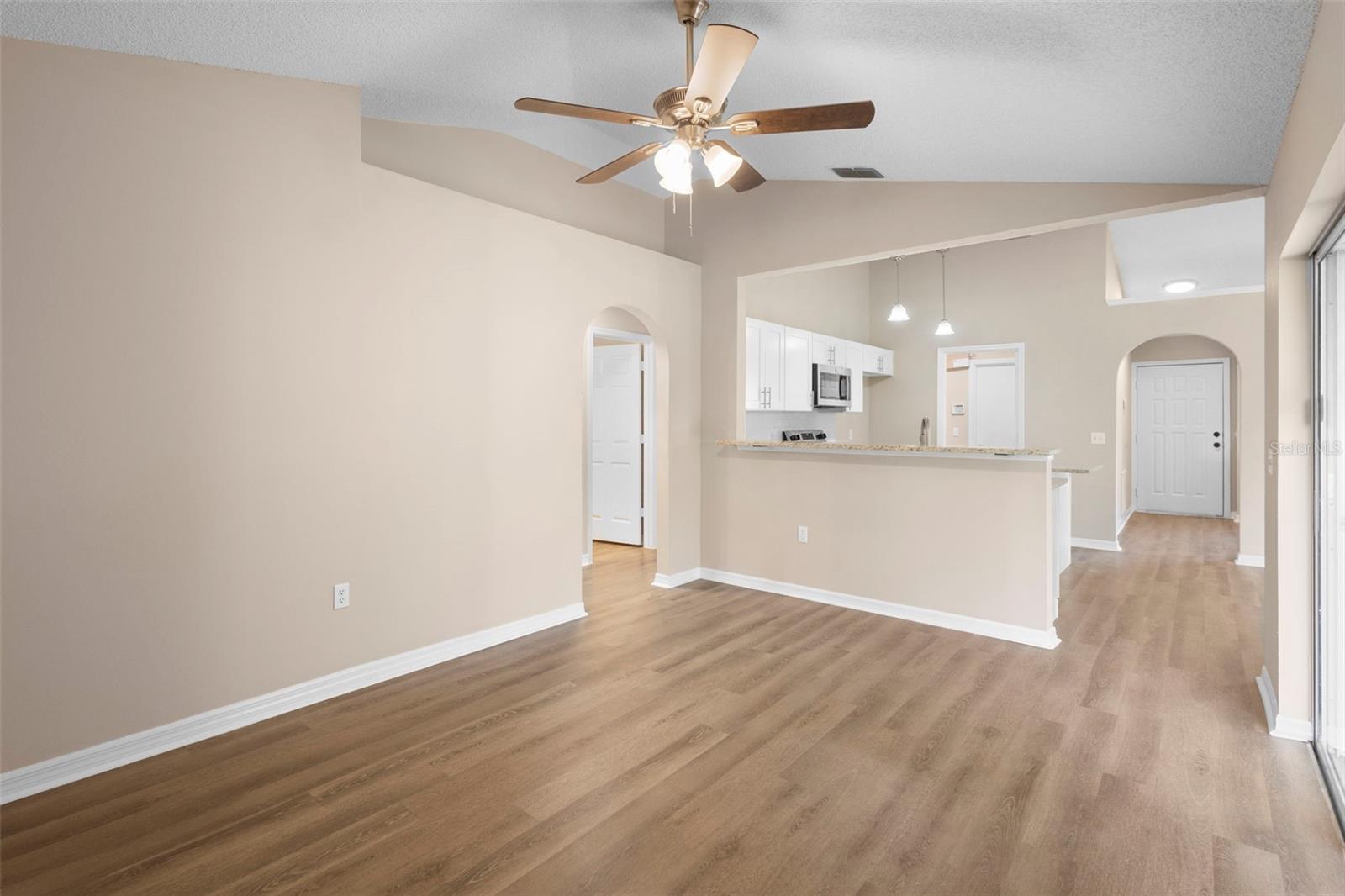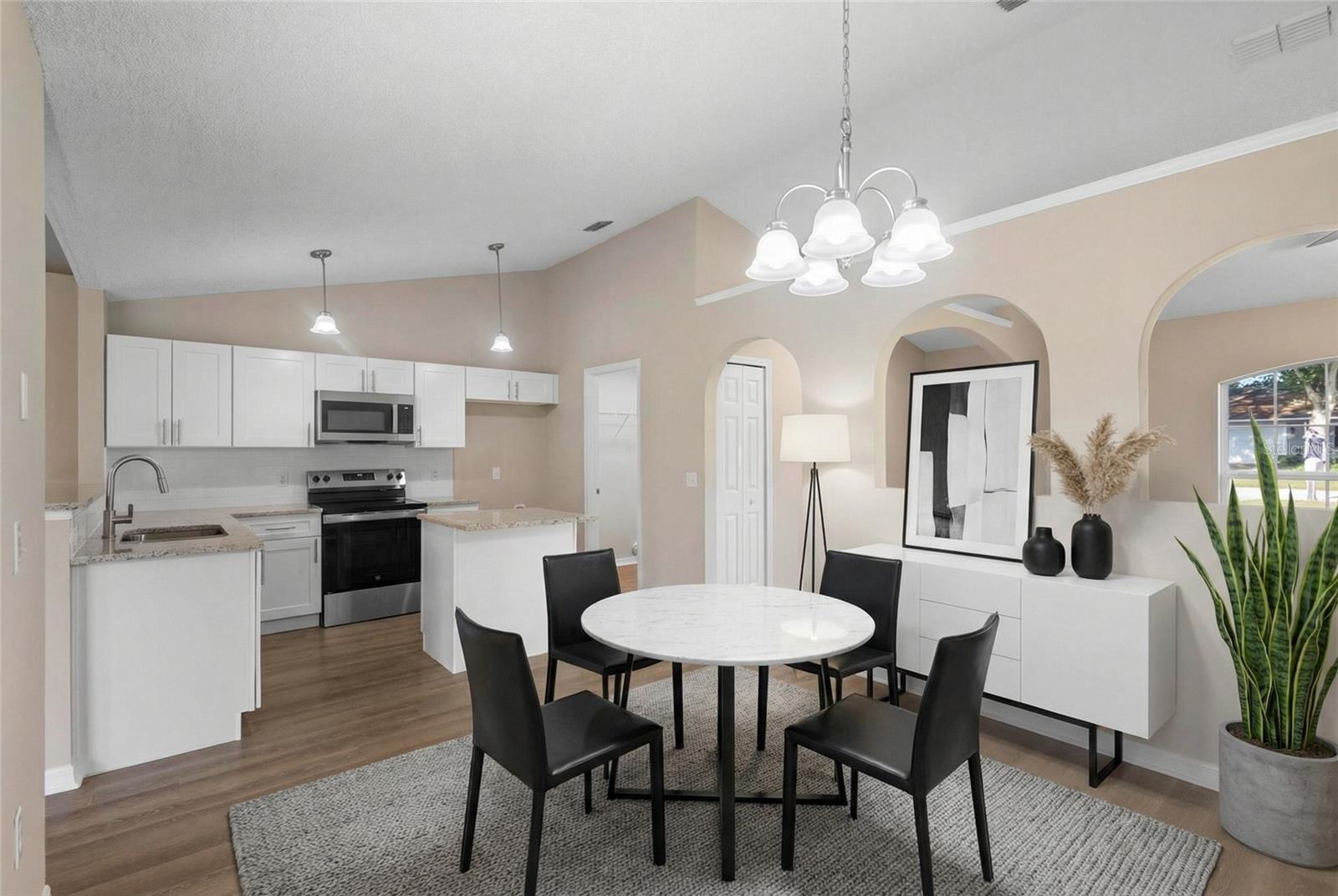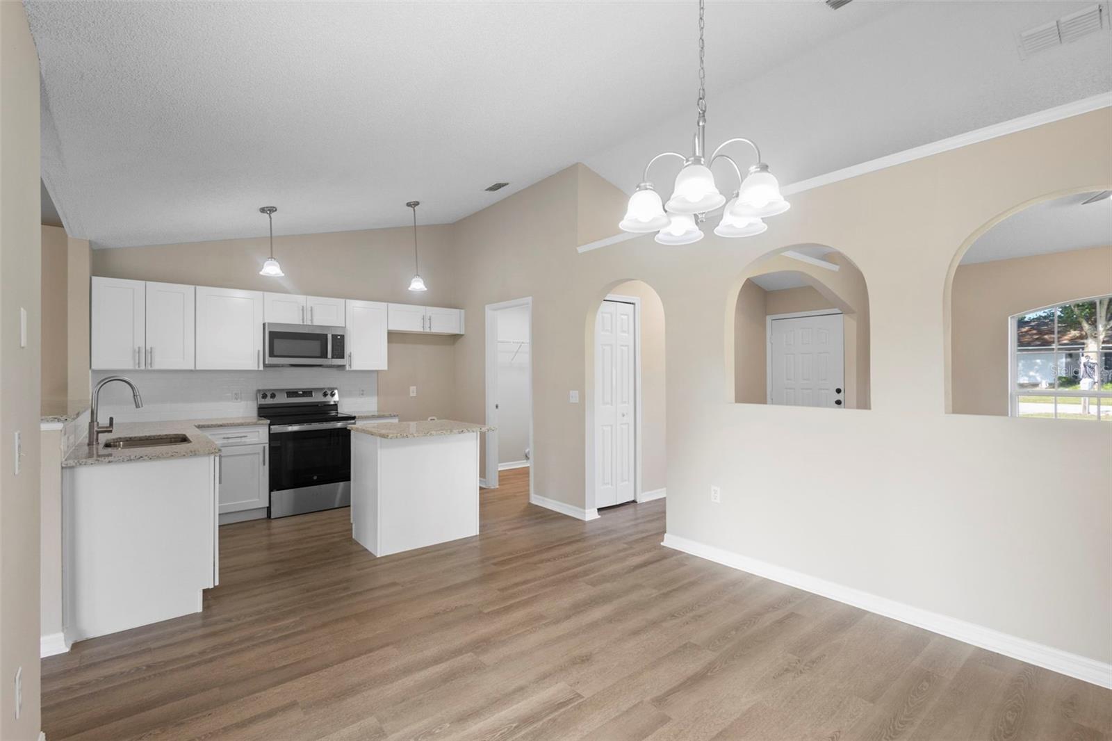 Uma ou mais fotos foram virtualmente encenadas. Descubra esta casa lindamente remodelada de três quartos e dois banheiros que está realmente pronta para morar. Atualizações cuidadosas brilham por toda parte, incluindo uma cozinha totalmente renovada com novos armários, bancadas e eletrodomésticos modernos, além de piso de pranchas de vinil duráveis nas principais áreas de estar. A planta dividida oferece maior privacidade, com a suíte principal separada dos quartos adicionais, todos com carpete novo e macio e luz natural abundante. Um telhado totalmente novo proporciona tranquilidade, enquanto a varanda protegida e o quintal cercado criam espaços ideais para relaxar ou se divertir. Convenientemente localizada perto de Publix em Deltona Commons, Tom Hoffman Park e Pine Ridge High School, esta encantadora casa combina conforto moderno com conveniência diária. Agende sua exibição privada hoje.