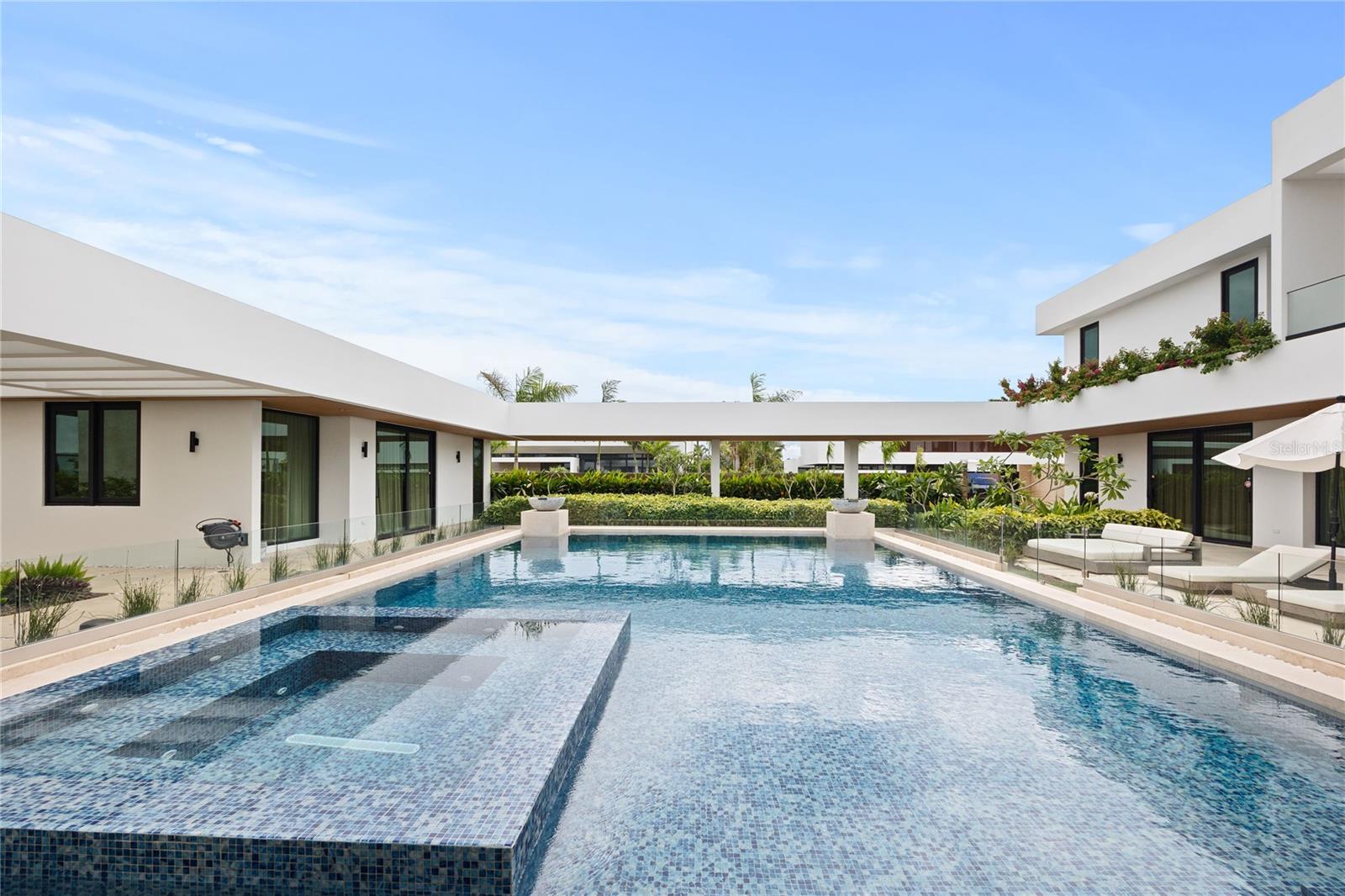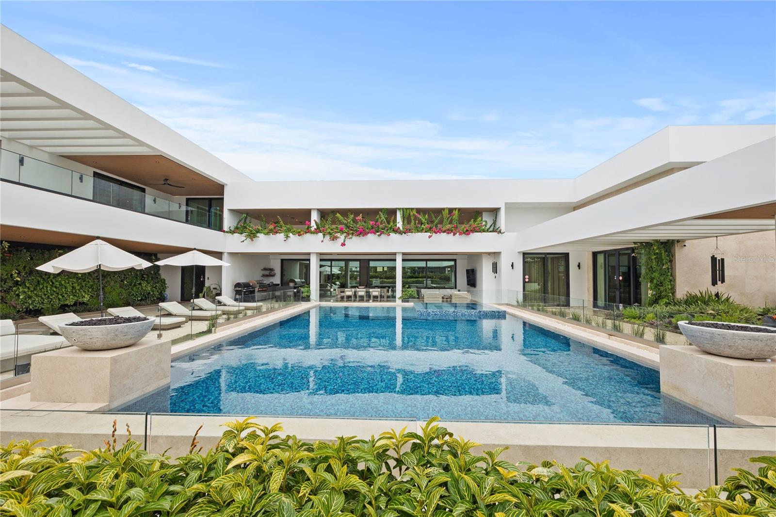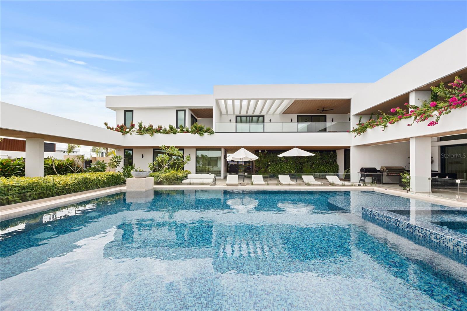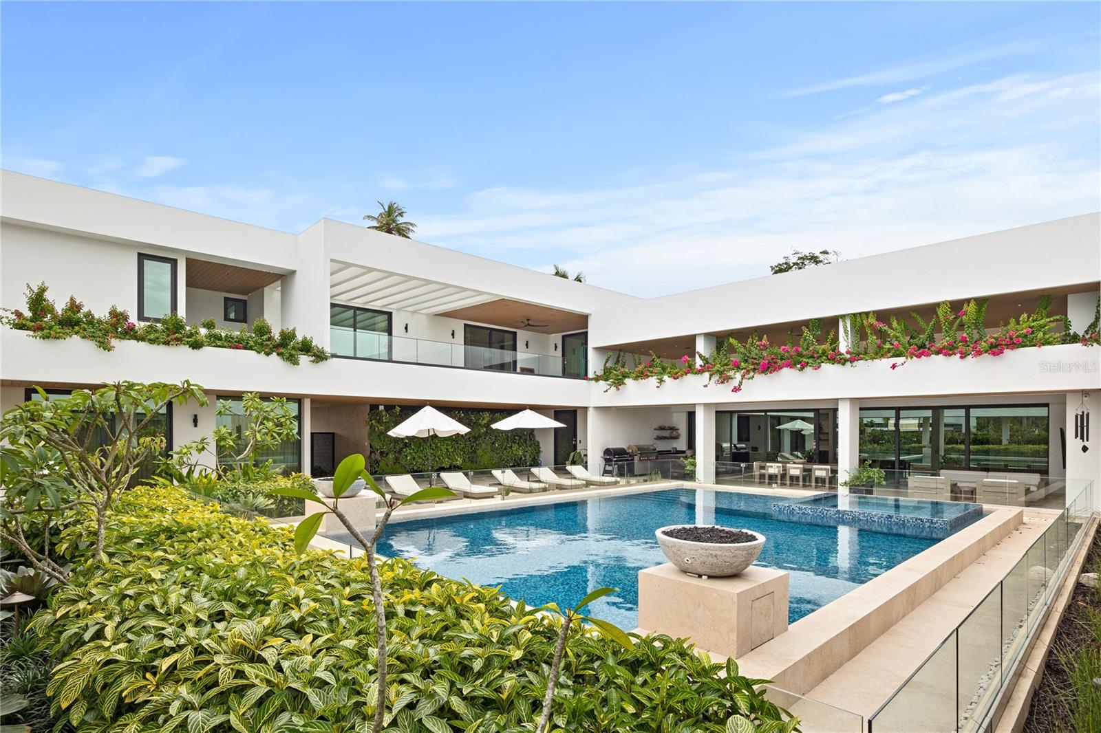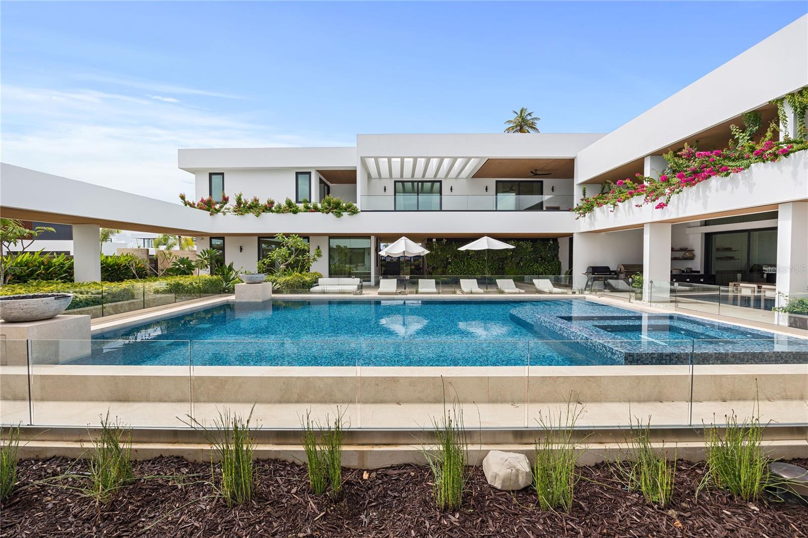 Entre numa vida de luxo com esta casa deslumbrante, uma propriedade única no mercado. Em um lote de 2.500 metros quadrados, esta enorme mansão tem quase 15.000 pés quadrados de construção, com 11.233 pés quadrados de área útil divididos entre a casa principal e 2 casitas (casas de hóspedes) ao redor da grande piscina privada em estilo resort. Na casa principal, a suíte master goza de conforto e privacidade como único quarto da ala leste do imóvel, complementada com amplo closet próprio e amplo banheiro. Também localizado no primeiro andar fica o escritório principal com amplo espaço dedicado ao trabalho e estudo, além de um home theater iluminado pelas estrelas, perfeito para lazer e recepção de convidados. No centro da casa, encontra-se a deslumbrante cozinha e sala de estar com tectos altos que marcam uma excelente primeira impressão, bem como muito espaço de arrumação e uma divisão adicional escondida, que pode funcionar como um segundo escritório. A casa está totalmente mobiliada e equipada com eletrodomésticos de última geração, todos Sub-zero, Wolf & Miele. A garagem climatizada para três carros, acessível através da cozinha, está também equipada com um adequado ginásio doméstico. No segundo nível da casa estão 3 quartos adicionais, cada um acompanhado de seu próprio banheiro, além de uma sala de jogos e uma segunda lavanderia. A partir do segundo andar, você poderá apreciar plenamente a obra-prima da casa: o amplo terraço equipado com alto-falantes e subwoofer Landscape Origin Acoustics e lindamente decorado com acabamentos personalizados e detalhes lindos, como uma parede floral que diferencia esta piscina privada. o resto. O financiamento do vendedor está disponível.