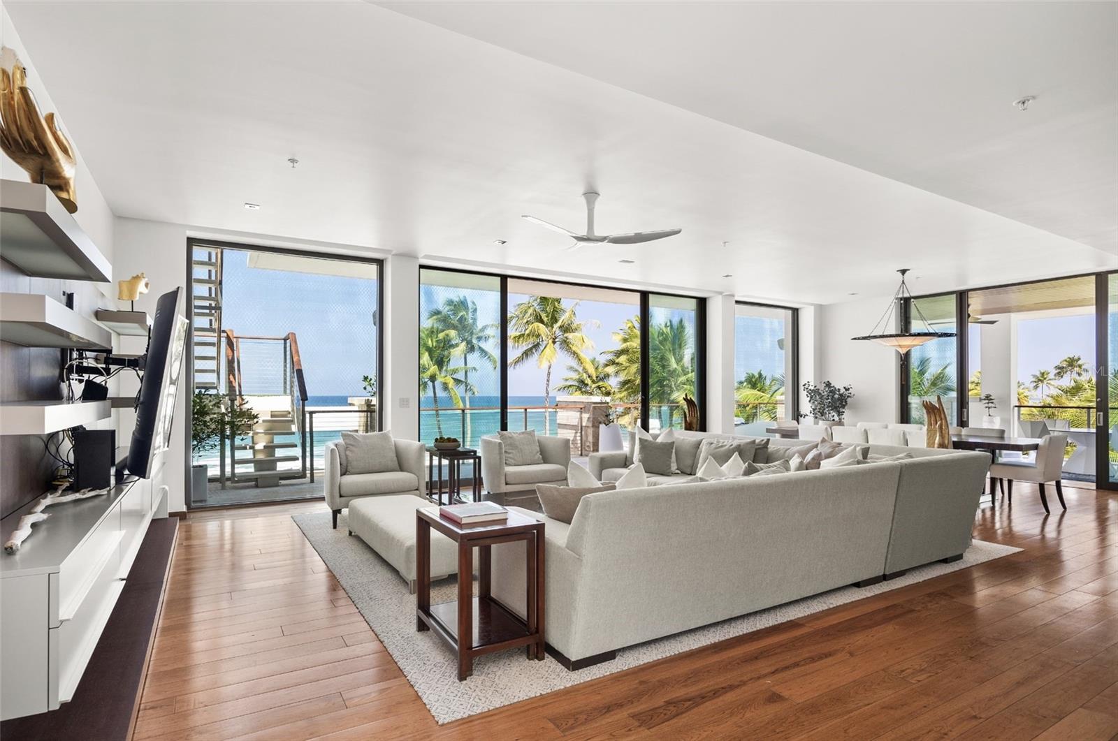 Experimente o melhor estilo de vida à beira-mar e mergulhe na beleza desta ampla cobertura dupla à beira-mar, espalhada por 9.342 pés quadrados de pura extravagância, oferecendo um nível incomparável de refinamento e exclusividade localizada na prestigiada comunidade de luxo de 1.400 acres de Dorado Beach, em Porto Rico, lar do Ritz Carlton Reserve 5 estrelas. Apresentando uma fusão deslumbrante de riqueza e sofisticação, em meio a uma mistura única e delicada de design moderno, paletas de cores calmas e pedras nobres, este troféu PH oferece nada menos que possuir seu próprio retiro tropical privado. Ocupando os dois andares inteiros, esta casa no céu atende a quem busca o máximo conforto e isolamento. Com 4 quartos suntuosos, 4,5 banheiros bem equipados e acesso direto a praias de areia dourada, esta residência da marca Ritz Carlton incorpora o que há de melhor na vida à beira-mar. O PH 3141-3142 desfruta de uma riqueza de benefícios, incluindo “propriedade sem complicações” no âmbito do programa de aluguer da bandeira, prometendo uma gestão sem esforço, bem como um activo de investimento atraente nas costas das Caraíbas. Eleve o seu estilo de vida em meio às vistas panorâmicas do Oceano Atlântico a partir do amplo terraço na cobertura de 2.609 pés quadrados, um refúgio de serenidade e tranquilidade. Delicie-se com o luxo de uma convidativa piscina infinita em forma de L de 670 pés quadrados, cercada por várias áreas de estar e uma cozinha externa coberta equipada com as melhores comodidades para refeições e entretenimento ao ar livre. Seja organizando saraus luxuosos sob as estrelas ou simplesmente relaxando enquanto aprecia o pôr do sol de tirar o fôlego, este santuário na cobertura promete um cenário idílico para reuniões íntimas e momentos preciosos com entes queridos, com as águas azuis da Praia Dorado como cenário pitoresco. Entre nos interiores meticulosamente projetados e admire o fluxo contínuo dos espaços de conceito aberto, completos com portas de vidro do chão ao teto que emolduram a vista panorâmica do oceano, combinando facilmente a vida interna e externa. A cozinha do chef de última geração, equipada com eletrodomésticos premium Wolf e Sub Zero, acena para a excelência culinária, enquanto as áreas familiares e de jantar adjacentes proporcionam um ambiente relaxante e acolhedor para a família e convidados. O terraço exterior envolvente liga-se perfeitamente aos interiores – um espaço perfeito para desfrutar do seu café da manhã ou relaxar à noite ouvindo o som suave das ondas. Retire-se para o conforto edificante da grande suíte principal, onde vistas inspiradoras da praia o recebem todas as manhãs. Seu banheiro principal com 5 acessórios, semelhante a um spa, dispõe de chuveiro privativo ao ar livre, jacuzzi à sombra e uma área de descanso serena para contemplação tranquila. Delicie-se com a melhor experiência de rejuvenescimento com uma sauna de última geração, garantindo relaxamento e bem-estar absolutos na privacidade da sua casa. Como parte da Reserva Ritz Carlton, reconhecida por suas comodidades e serviços incomparáveis, os residentes têm acesso a instalações de classe mundial, incluindo dois campos de golfe projetados por Robert Trent Jones Jr., o Parque Aquático 'Watermill', um recém-inaugurado Centro de Tênis , e um centro de fitness e bem-estar de última geração, um centro de esportes aquáticos 'Goodwinds' e uma variedade de opções gastronômicas selecionadas por renomados chefs locais, este endereço cobiçado incorpora o auge da vida rica na ilha. Bem-vindo a um mundo de luxo incomparável – bem-vindo ao West Beach PH 3141-3142, uma residência Ritz Carlton Reserve.