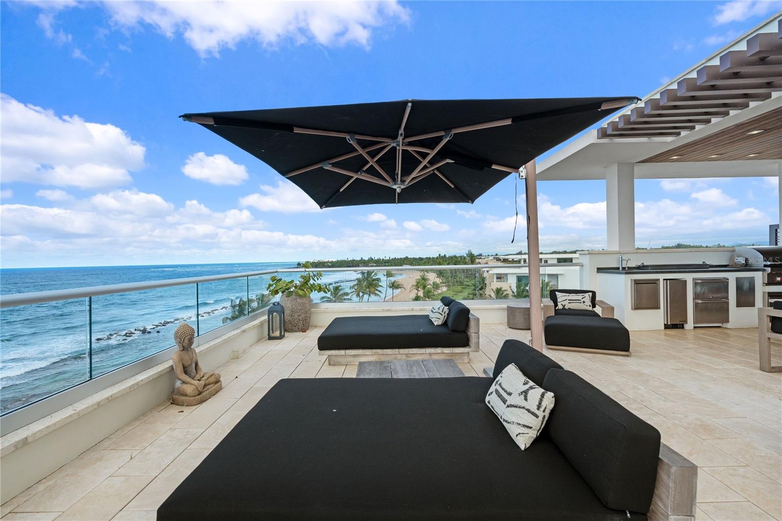 Experimente o epítome de luxo à beira-mar nesta recém-construída Penthouse West Point, parte das residências de Ritz-Carlton, aninhadas no estimado Dorado Beach Resort and Club. Esta cobertura excepcional de dois andares possui vistas incomparáveis de oceano, nascer do sol e pôr do sol, fornecendo 360 panoramas de uma das praias mais pitorescas do mundo, majestosos recifes de coral e montanhas exuberantes. Esta cobertura desfruta do local mais privilegiado do Dorado Beach Resort, adjacente ao West Point Beach Club, e com vistas exclusivamente protegidas e desobstruídas da costa norte de Porto Rico. Apresentando quatro quartos, incluindo uma suíte master e suíte júnior no primeiro andar, esta cobertura oferece uma mistura única de conforto e elegância discreta. O terceiro quarto voltado para o sul oferece vistas cativantes do recém -redesenhado Robert Trent Jones Jr. TPC West Course do resort, bem como das regiões montanhosas do lago e exuberante. Com aproximadamente 4.265 pés quadrados de espaço interior de ar condicionado e uma área bruta total de 7.172 pés quadrados, há amplo espaço para entretenimento, especialmente nos amplos terraços do primeiro andar e na cobertura. Aproveite a conveniência de uma entrada de escada coberta separada para acesso direto ao telhado, garantindo a privacidade para as áreas de estar enquanto divertido. No interior, um elevador ou escada interior pode levá-lo para a área de estar no andar de cima, completa com uma sala de estar, banheiro completo, bar molhado e quarto adicional na suíte com vistas de tirar o fôlego, atualmente utilizadas como um elegante escritório em casa. Prepare suas obras -primas culinárias em uma cozinha projetada para inspirar, com o prazer adicional das vistas diretas do oceano enquanto você cozinha e entretene. Equipado com aparelhos de primeira linha, como uma geladeira sub-zero de 36 ', a Cooktop de Indução de Lobo, dois fabricantes de gelo, dois frigoríficos de vinho sub-zero e filtros de água reversa de osmose por toda parte, o paraíso deste chef atende a todas as suas necessidades. NEOLITH CALACATTA GOLD BARTOPSES, ILHA E BACKSPLASH, complementados por prateleiras abertas poliformes e um capô acabado de gesso embutido, eleva o espaço a novas alturas de sofisticação. Seja hospedando reuniões animadas ou jantares íntimos, o jantar e a área de estar criam um ambiente caloroso e acolhedor para todas as ocasiões. Tecnologia audiovisual de ponta, sistema de segurança, tons elétricos construídos personalizados e iluminação de Lutron é integrada em toda a unidade, complementada por atualizações luxuosas, incluindo equipamentos foscos para um toque contemporâneo. Com alturas de teto da catedral em todas as áreas de vida e entretenimento, a cobertura emana uma sensação de grandeza e espaço. Saia para o terraço coberto na cobertura, onde uma cozinha ao ar livre, na área de churrasco de Wolf Grill, bar molhado, piscina e jacuzzi aguardam, criando um cenário idílico para absorver as vistas deslumbrantes e o ambiente costeiro. O conforto encontra luxo com acesso conveniente ao novo West Point Beach Club exclusivo com piscinas, jacuzzi, saunas, salas de vapor e mergulho frio. Esta cobertura de West Point também está passando de surf de classe mundial, esportes oceânicos e áreas de mergulho. Esta residência vem com três vagas de estacionamento cobertas de carrinho de golfe, uma garagem para carros duplos com ar condicionado e um grande espaço de armazenamento ou estacionamento adicional. Mergulhe -se no auge do litoral à beira -mar no Dorado Beach Resort and Club com esta residência incomparável de cobertura.