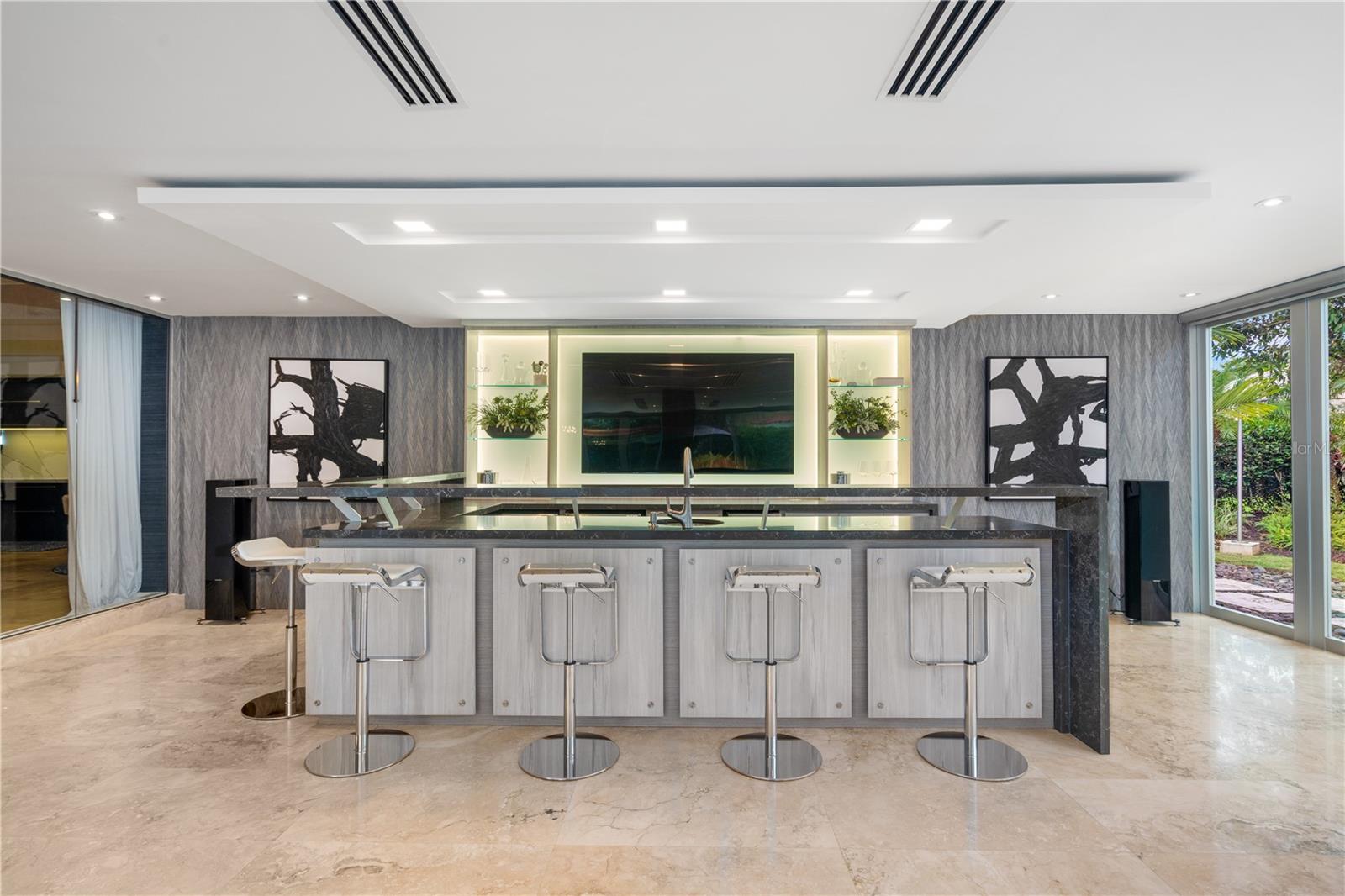 Esta residência em Dorado Beach East oferece 5.813 pés quadrados internos com acabamentos de alta qualidade. O layout de 5 quartos e 5,5 banheiros inclui papéis de parede de designer, móveis selecionados e tetos altos. As áreas abertas de jantar e de estar se estendem até um terraço fechado com vidro do chão ao teto, um bar personalizado com máquina de fazer gelo e adega refrigerada, além de uma mesa de bilhar. A cozinha dispõe de eletrodomésticos de última geração para Café, uma despensa com uma segunda geladeira e uma adega. Um quarto de hóspedes com casa de banho privativa completa o primeiro andar. No andar de cima, a suíte principal inclui um closet ampliado com iluminação LED e uma parede com detalhes de designer. Três quartos adicionais, cada um com casa de banho privativa, proporcionam conforto e privacidade. Ao ar livre, desfrute de uma piscina, cozinha externa e várias áreas de estar em um terreno de esquina de 0,35 acres. Localizado no final de uma rua sem saída e perto do Orlando Health Hospital, do TASIS Dorado e de restaurantes locais. Pronto para morar e morar, agende sua exibição privada hoje mesmo.