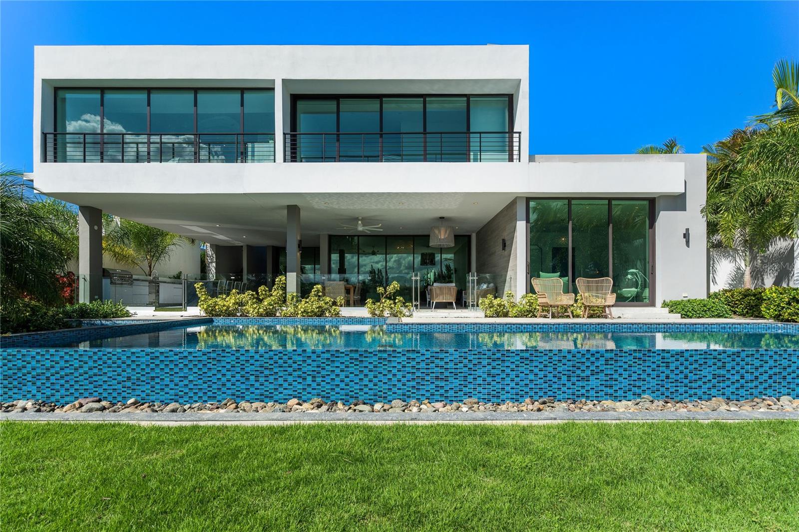 Experimente o luxo moderno no seu melhor nesta casa localizada em The Isles at Dorado Beach, a comunidade mais nova e exclusiva do resort. Com vistas deslumbrantes sobre o campo de golfe e lago, esta propriedade destaca-se pelo seu design excepcional e características incomparáveis, incluindo uma guesthouse com dois quartos adicionais e casas de banho. Abrangendo 4.065 pés quadrados de espaço interno com ar condicionado e aproximadamente 5.200 pés quadrados de construção total, esta casa fica em um amplo terreno de 1.259 metros quadrados, oferecendo vida espaçosa e privacidade. A casa principal possui uma planta de conceito aberto com tetos altos, uma deslumbrante cozinha italiana com eletrodomésticos Thermador, fogão a gás e bancadas de quartzo que combinam lindamente elegância e funcionalidade. Cada um dos quatro quartos com banheiro privativo oferece conforto e privacidade, enquanto um lavabo elegante acrescenta comodidade aos hóspedes. A suíte principal é um santuário, oferecendo vistas cativantes e acesso direto a um terraço ampliado. Entre no espaço ao ar livre, projetado para entretenimento, com uma cozinha externa personalizada, piscina e banheira de hidromassagem com temperatura controlada e um lavabo ao lado da piscina com chuveiro externo adicional. O banheiro inspirado em spa da suíte principal inclui chuveiros duplos, banheira de imersão independente e chuveiro externo privativo, criando um retiro sereno. A guesthouse, ligada por um terraço coberto, fica no segundo andar e oferece duas suítes com portas e janelas de vidro do chão ao teto, enquadrando perfeitamente as vistas panorâmicas do lago e do campo de golfe. Este espaço é ideal para receber hóspedes ou viver multigeracionais. Somando-se à conveniência de morar nas Ilhas de Dorado Beach, o condomínio conta com um gerador de energia de última geração que garante energia ininterrupta, proporcionando tranquilidade sem o incômodo ou a manutenção de possuir um gerador pessoal. Decorada profissionalmente por um designer de interiores de luxo e vendida pronta para uso, esta casa está pronta para você se mudar e desfrutar da vida em estilo resort. Com disponibilidade limitada de casas que oferecem vistas deste calibre, esta é uma rara oportunidade de possuir uma propriedade verdadeiramente excepcional nas Ilhas de Dorado Beach. Desde seus interiores cuidadosamente selecionados até seus espaços ao ar livre de tirar o fôlego, esta propriedade tem tudo que você precisa e muito mais. Agende seu tour privado hoje – esta casa está destinada a ter alta demanda!