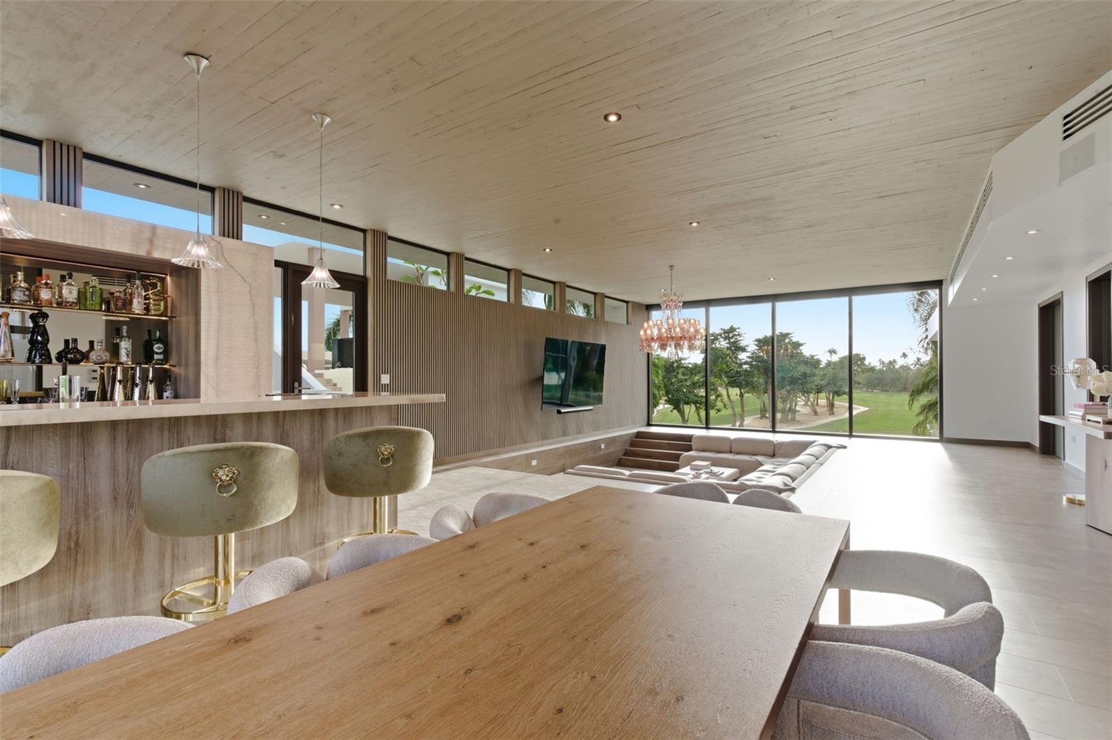 Villa D'Or, uma propriedade da marca Ritz-Carlton Reserve dentro da exclusiva comunidade de East Beach do Dorado Beach Resort, se destaca como uma das maiores e mais significativas residências arquitetonicamente já oferecidas. Expandida e totalmente reinventada, esta obra-prima moderna oferece mais de 10.700 m² internos. Pés. e 13.300 m² totais. Ft., posicionado em uma casa de esquina de primeira linha com vistas deslumbrantes para o mar, campo de golfe e lago. A partir do momento em que você entra, um dramático foyer com teto em caixotões de 20 pés emoldura vistas de tirar o fôlego para a piscina infinita e os fairways além, dando o tom para uma casa que combina escala, privacidade e luxo de resort. O primeiro nível oferece cinco suítes de tamanhos generosos, todas com tetos altos e closets personalizados. Duas suítes incluem chuveiros com sauna a vapor, chuveiros ao ar livre e banheiras de pedra natural, criando retiros semelhantes a um spa. Duas suítes adicionais possuem terraços externos privativos, enquanto um quinto quarto serve como acomodação flexível para hóspedes ou quartos de serviço com banheiro completo. A suíte principal, situada em sua própria ala isolada, oferece vista direta para o mar, banheira de pedra sólida, chuveiros internos e externos, closet espaçoso e amplo terraço privativo – um santuário ideal com privacidade incomparável. A expansão do segundo nível da casa é um destino próprio, projetada para entretenimento de classe mundial e vida elevada. Este nível possui uma cozinha externa na cobertura equipada com churrasqueira Grillworks, geladeira para bebidas e máquina de fazer gelo; uma deslumbrante jacuzzi de vidro com vistas panorâmicas do oceano e do fairway; e um amplo lounge rebaixado, ideal para reuniões ou experiências de vida noturna. As comodidades adicionais incluem um bar de mármore retroiluminado com iluminação Baccarat, um bar no andar de cima, uma adega com temperatura controlada, umidificador de charutos, escritório dedicado e um lavabo. Uma sala de mídia totalmente equipada com paredes com painéis acústicos e uma cozinha compacta com fogão de indução Wolf oferecem o ambiente perfeito para cinema, jogos, educação ou uso em estúdio. Também localizada neste nível está uma suíte completa para sogros/hóspedes que oferece uma cozinha compacta, armários italianos personalizados, tetos altos e um banheiro de mármore com qualidade de spa com banheira independente de porcelana. A vida ao ar livre em toda a propriedade é inspirada em resort, oferecendo vários terraços, áreas de estar, chuveiros ao ar livre, paisagismo tropical selecionado, sauna privada e conectividade interna e externa perfeita. A escala arquitetônica, os acabamentos refinados e os elementos de design cuidadosos, incluindo pedras importadas, marcenaria personalizada, acessórios Baccarat e recursos de casa inteligente, criam uma atmosfera de luxo incomparável. Idealmente posicionado perto do Spa Botánico e a poucos minutos das comodidades de renome mundial do Dorado Beach Resort, o Villa D'Or representa uma oportunidade única na vida de possuir uma propriedade ousada e icônica dentro do enclave de East Beach, com a marca Ritz-Carlton Reserve. Uma verdadeira propriedade troféu em todos os sentidos.