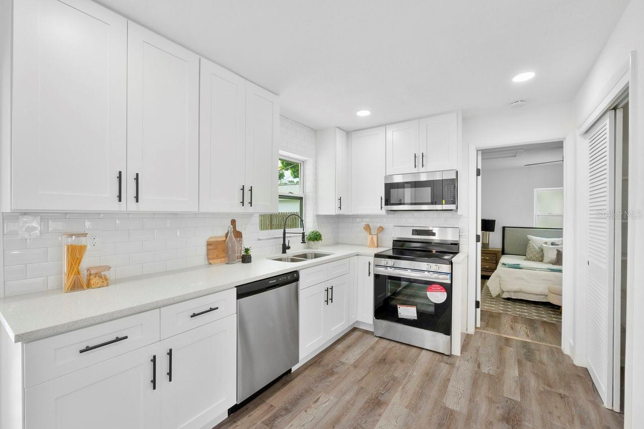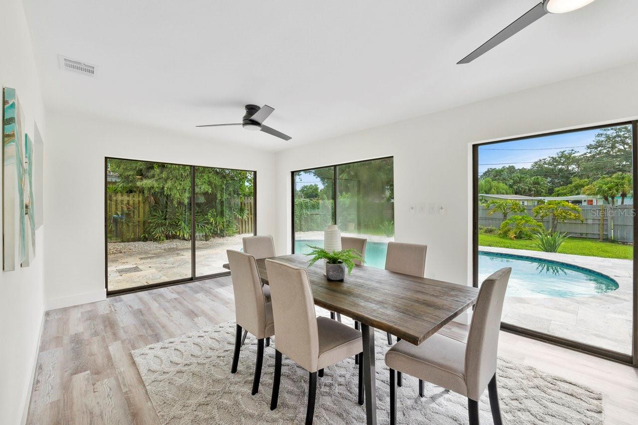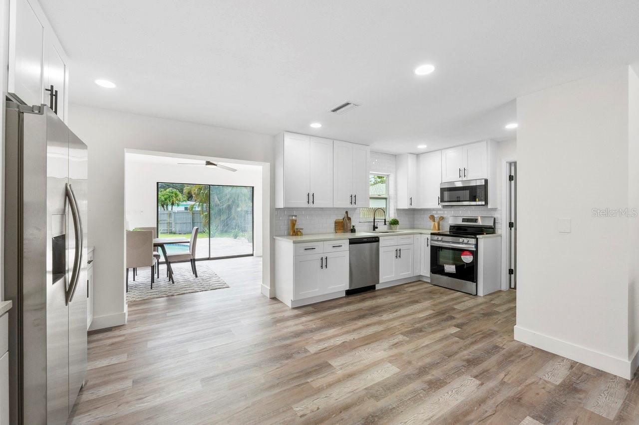 Bem -vindo à sua casa de sonho na cobiçada comunidade Dunedin Isles! Esta gema encantadora de 4 quartos e 2 banheiros possui 1.712 pés quadrados de conforto moderno e está perfeitamente situado para desfrutar de tudo o que Dunedin tem a oferecer. A um curto passeio, você encontrará o encantador parque de rede com seu jardim de borboleta, playground, trilhas e até golfe de disco. Além disso, você está a poucos minutos da água brilhante e do vibrante centro de Dunedin! Entre e seja recebido por uma abundância de luz natural, graças à grande janela de sacada na frente e à deslumbrante marquise com controles deslizantes em três lados. Esses controles deslizantes não apenas deixam o glorioso sol da Flórida, mas também fornecem uma maneira deliciosa de desfrutar do clima suave do inverno. A cozinha é um paraíso do chef, com bancadas elegantes de quartzo, utensílios de aço inoxidável, armários de perto e uma despensa embutida. A casa oferece uma planta baixa, com o quarto principal fornecendo um retiro privado completo com um banheiro privativo com um chuveiro de azulejo elegante. Os três quartos adicionais são generosamente de tamanho, oferecendo muito espaço para hóspedes, família ou até um escritório em casa. Ambos os banheiros foram atualizados com bom gosto, e toda a casa mostra toques modernos por toda parte. O quintal cercado é um verdadeiro oásis, completo com um belo pátio de pavimentador e uma piscina refinada equipada com equipamentos de piscina novos. Fique tranquilo sabendo que as principais atualizações foram resolvidas, incluindo um novo telhado em 2020, um sistema HVAC a partir de 2018, um aquecedor de água a gás de 2024 e novas janelas com classificação de impacto. Não perca a chance de possuir esta casa cheia de luz e lindamente atualizada no coração de Dunedin Isles!
