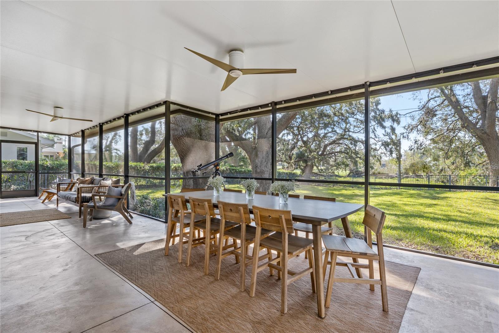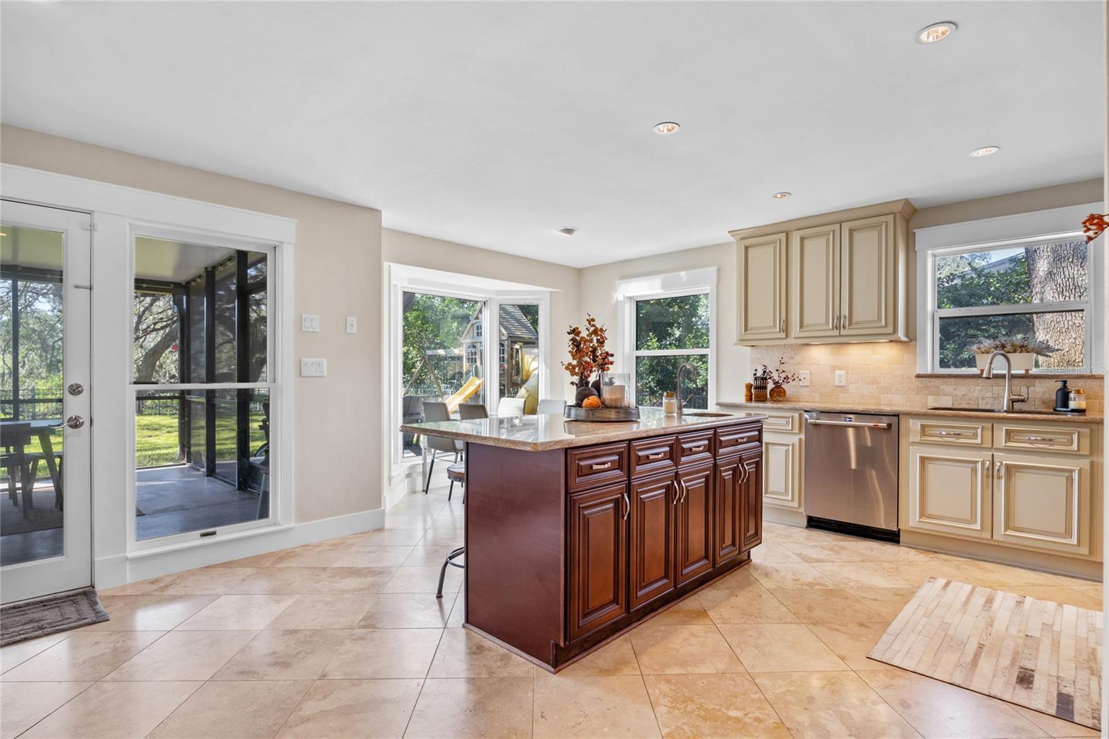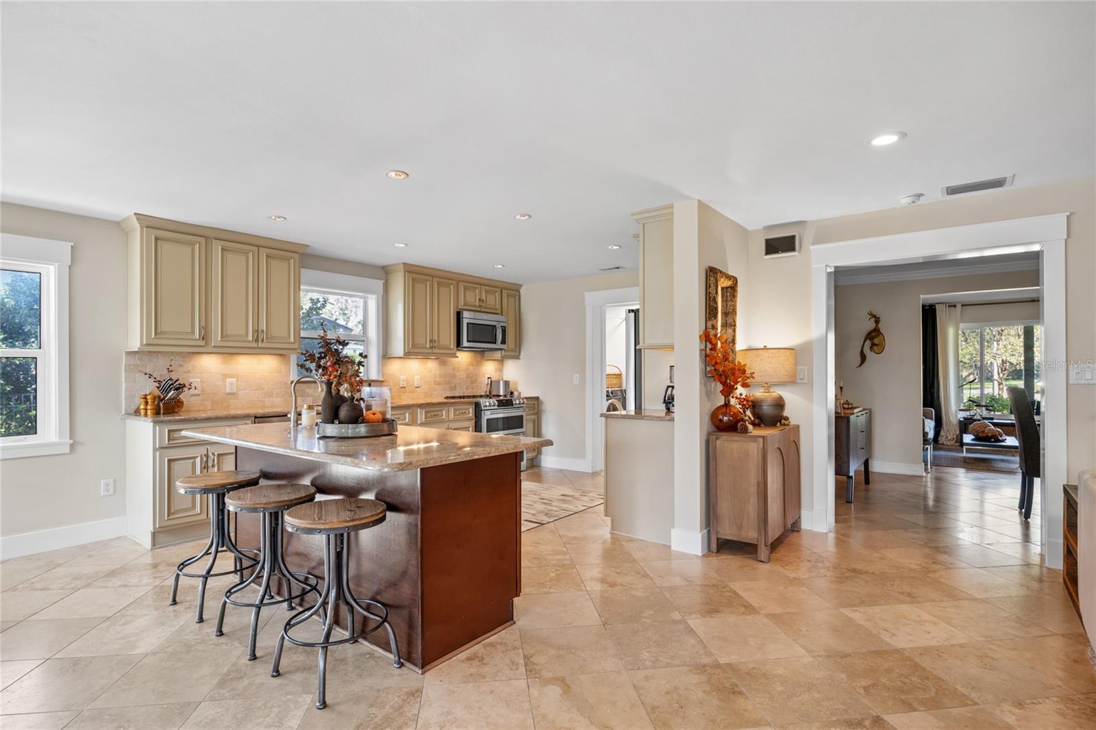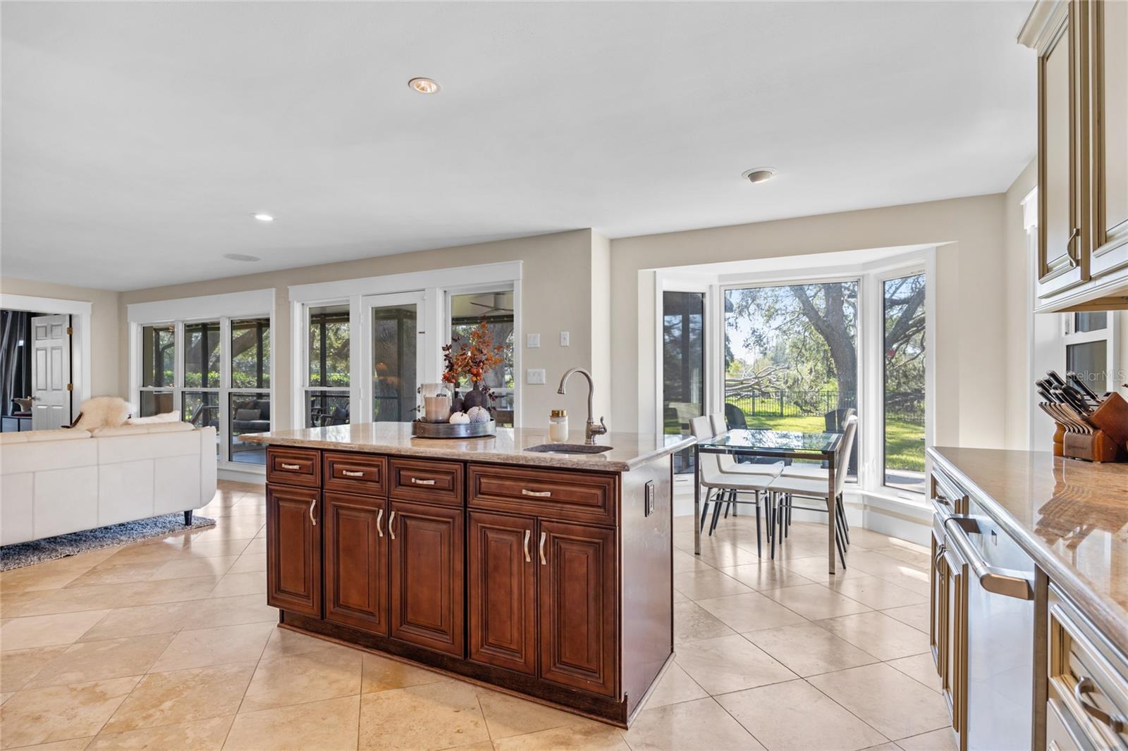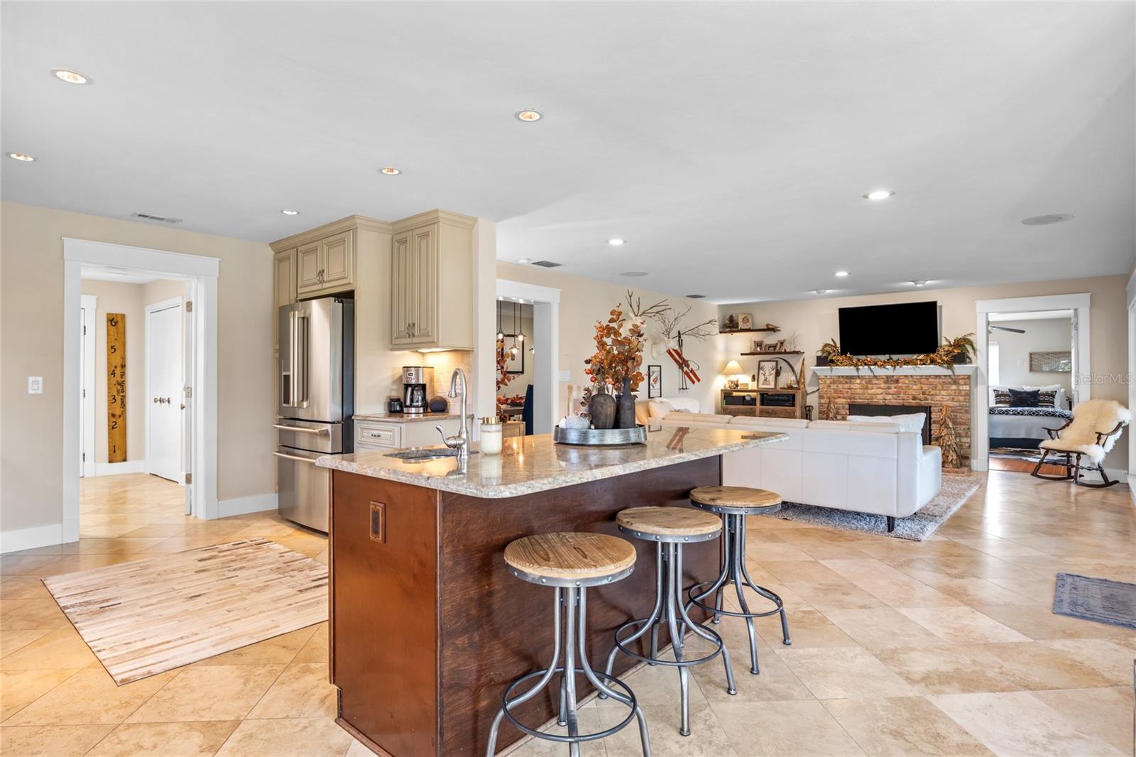 FRENTE DO CAMPO DE GOLFE! Esta propriedade excepcional está localizada no 2º Fairway do Historic Dunedin Golf Club, um campo originalmente projetado por Donald Ross e que já abrigou o PGA. O campo está atualmente na fase final de uma restauração de quase US$ 7 milhões para restaurar seu projeto histórico à sua glória original. Esta casa de luxo lindamente renovada foi meticulosamente atualizada de cima a baixo. A cozinha, com vista para o amplo quintal e para o campo de golfe, é o sonho de qualquer chef e artista. Possui eletrodomésticos de aço inoxidável de última geração, duas pias, armários personalizados, backsplash de pedra caída, iluminação sob o gabinete e impressionantes bancadas de granito. Uma despensa interna de lavanderia/mordomo de tamanho generoso oferece amplo armazenamento para maior comodidade. Em todas as áreas de estar, elegantes pisos de travertino são instalados na diagonal, enquanto todos os quartos apresentam pisos de madeira. A sala familiar é destacada pelas janelas do chão ao teto, que criam muita luz natural, e uma aconchegante lareira a lenha, perfeita para noites relaxantes. Ambos os banheiros foram totalmente atualizados com acabamentos modernos, incluindo azulejos de mármore caído. As atualizações recentes incluem: novo telhado instalado em 2019; Sistema HVAC substituído em 2017; novo esquentador em 2024; e a maioria das janelas são classificadas contra impacto. Na parte traseira da casa, uma varanda espetacular de 550 pés quadrados com tela e coberta instalada em 2020 oferece vistas deslumbrantes do amplo quintal totalmente cercado e do campo de golfe. Este espaço exterior é ideal para relaxar e divertir-se, com majestosos carvalhos que proporcionam sombra durante os meses quentes de verão. O espaço adicional no pátio também fornece acesso a uma cozinha que passa pela churrasqueira, juntamente com uma área de fogueira, perfeita para entretenimento ao ar livre. O pátio é irrigado com água recuperada da cidade de Dunedin, e a linha elétrica principal para a casa é subterrânea para maior apelo estético, segurança e integridade elétrica. A garagem é ampla e tem capacidade para dois carros, com bastante arrumação, zona de oficina e um segundo frigorífico. Fairway Estates é um bairro de alta demanda devido à sua proximidade com diversas comodidades locais. Além do campo de golfe, o condomínio possui um lindo parque às margens do Lago Saundra, onde os moradores desfrutam de encontros sazonais. O Dunedin Causeway, juntamente com os premiados Parques Estaduais Honeymoon e Caladesi Island, ficam a poucos quilômetros de distância. Você também está a apenas 1,6 km do Dunedin Community Center, do Dunedin Fine Arts Center e dos parques Highland e Hammock. Para quem gosta de caminhar, correr ou andar de bicicleta, a Trilha Pinellas está convenientemente localizada nas proximidades. Além disso, o Delightful Downtown Dunedin é facilmente acessível por carrinho de golfe. Esta é uma oportunidade que você não vai querer perder. Agende hoje mesmo seu tour privado por esta casa notável! Com uma oferta aceitável, o vendedor considerará incluir o carrinho de golfe e vender a casa quase toda mobiliada (menos itens pessoais e algumas peças selecionadas de mobília e decoração). Por favor, peça uma lista de exclusões, se estiver interessado. O vendedor pode acomodar um fechamento a descoberto, se necessário.