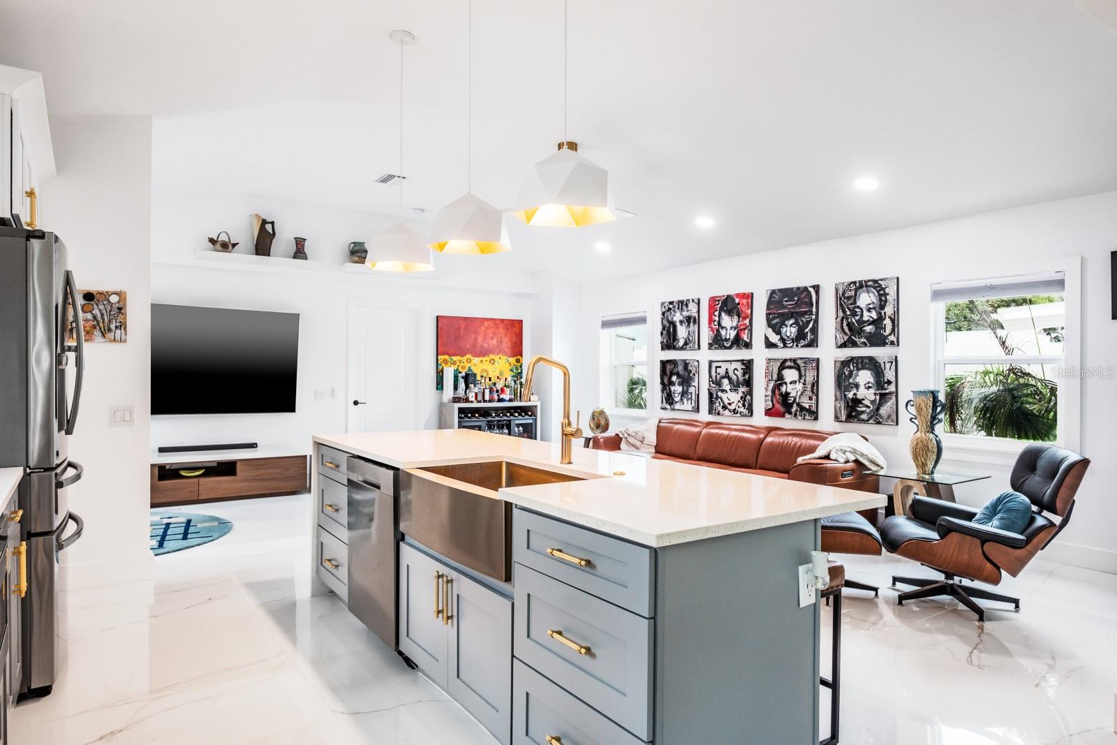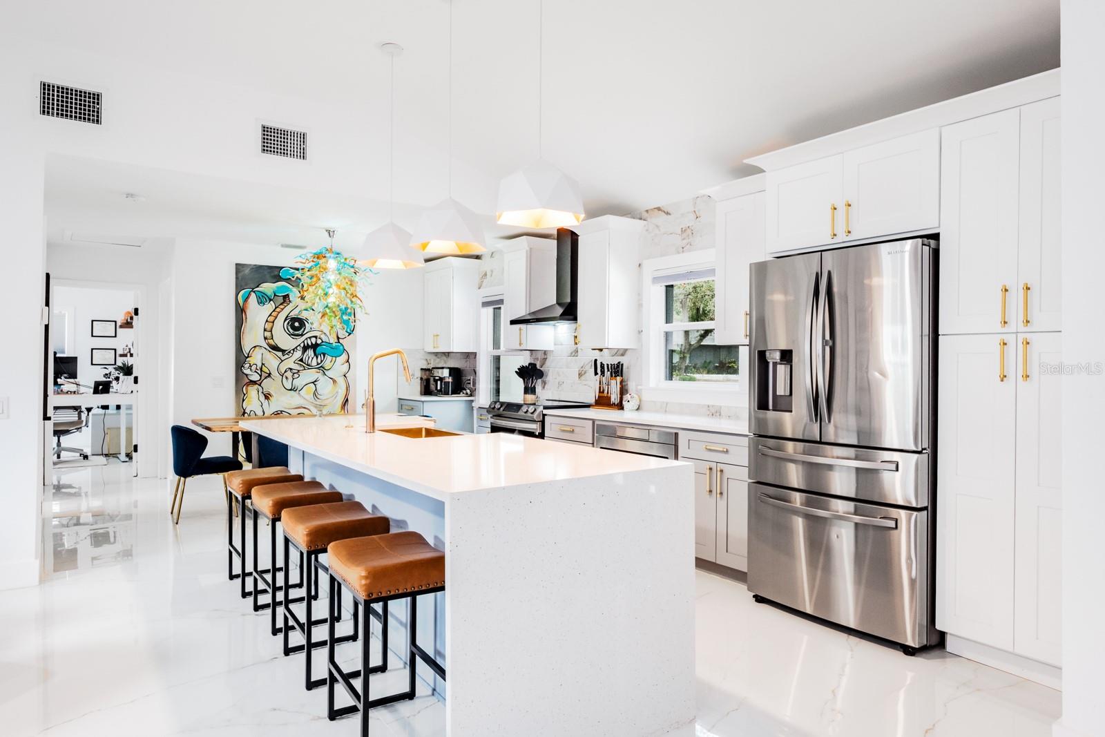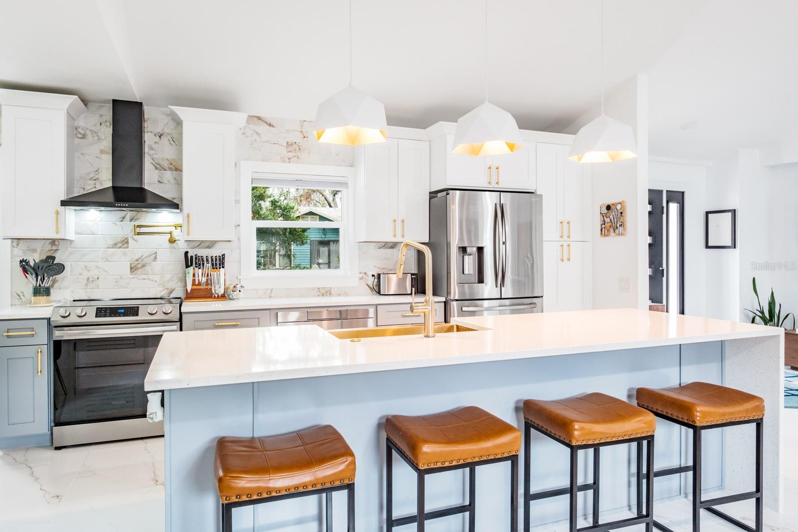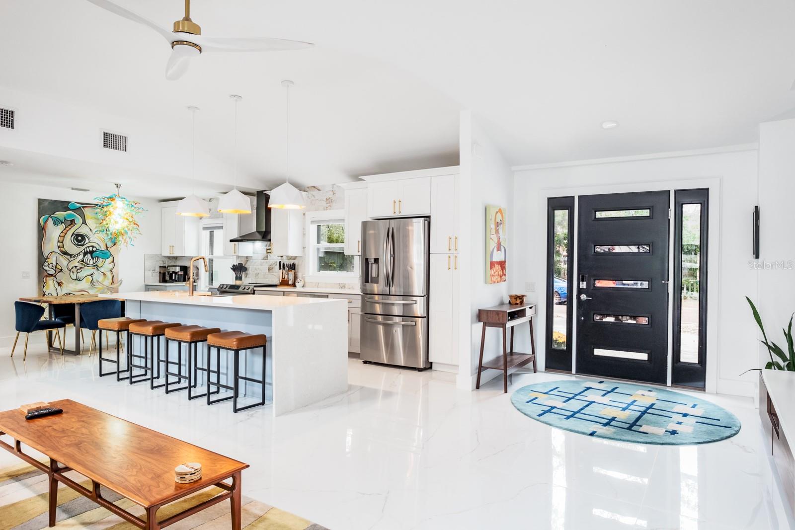 Localização, localização, localização !!! Fabuloso Downtown Dunedin! Carrinho de golfe amigável ... alto e seco, não é necessário seguro contra inundações! Esteja preparado para ficar impressionado !!! O orgulho de propriedade é abundante nesta casa imaculada e totalmente reimaginada, oferecendo quase 1.700 pés quadrados de grande espaço com 3 quartos e 2 banheiros completos. Localizado em uma das famosas ruas de tijolos nostálgicos de Dunedin em um local de canto premium, acentuado por uma espaçosa calçada circular. A planta moderna e aberta apresenta 2023 novos pisos de mármore 4'x4 'em todo o espaço e quartos. Espaçoso grande quarto apresenta tetos abobadados e um conceito aberto que antecipando reuniões familiares divertidas e divertidas. A impressionante cozinha gourmet personalizada com área de jantar adjacente apresenta balcões de quartzo acentuados por uma impressionante iluminação de ilha em cascata e designers, armários de madeira maciça de dois tons atualizados com molduras de coroa, aparelhos SS mais recentes, incluindo capa de capa e capa e presa, acabamentos de alto nível, fixações e backtsplash. A privacidade prevalece com a planta baixa do quarto. A enorme suíte do proprietário tem tinta fresca, possui um teto abobadado e oferece uma área de estar convidativa. O espaço é estendido com um closet e banheiro privativo do tipo spa, com pias duplas, balcões de quartzo, chuveiro amplo e acabamentos e acessórios da moda. As portas francesas levam a um paraíso ao ar livre ... um grande jardim de quintal, totalmente cercado para a privacidade final! Os dois quartos secundários estão do lado oposto da casa. Ambos são consideráveis com amplo espaço no armário e compartilham um banho elegante e atualizado, oferecendo uma única vaidade, trabalho de ladrilhos de designer de chão a teto e uma elegante banheira de imersão independente. A lavanderia está convenientemente localizada na grande sala. E há mais! Esta casa vem com um bônus encantador - um galpão isolado de 8'x16 'com piso de ladrilho. Absolutamente ideal para uma sala de hobby, sala de jogos, armazenamento ou até um quartel de hóspedes ... as possibilidades são infinitas! Atualizações adicionais incluem telhado (2021), CA (2021), aquecedor de água (2017), painel elétrico (2022), janelas de impacto, portas externas (2023), pintura externa (2023), cercas de vinil externo (2023), brigas (2023) apropriadas com concreto com concreto carimbado (202), pode ser adicionado a uma entrada de gente com concreto (2023). Carrinho de golfe amigável para o centro de Dunedin! Experimente a vibração de próspero Dunedin e suas fabulosas lojas, restaurantes, entretenimento, festivais, cervejarias e trilhas de ciclismo. Perto de Medical, Pinellas Trail, The Blue Jays Stadium e, claro, as lendárias areias brancas das praias do Golfo! Localização, Localização de fato!