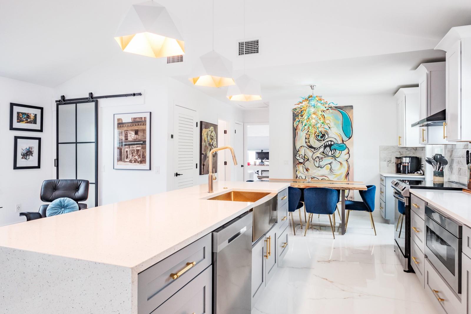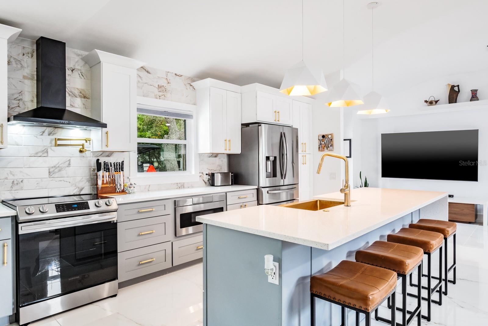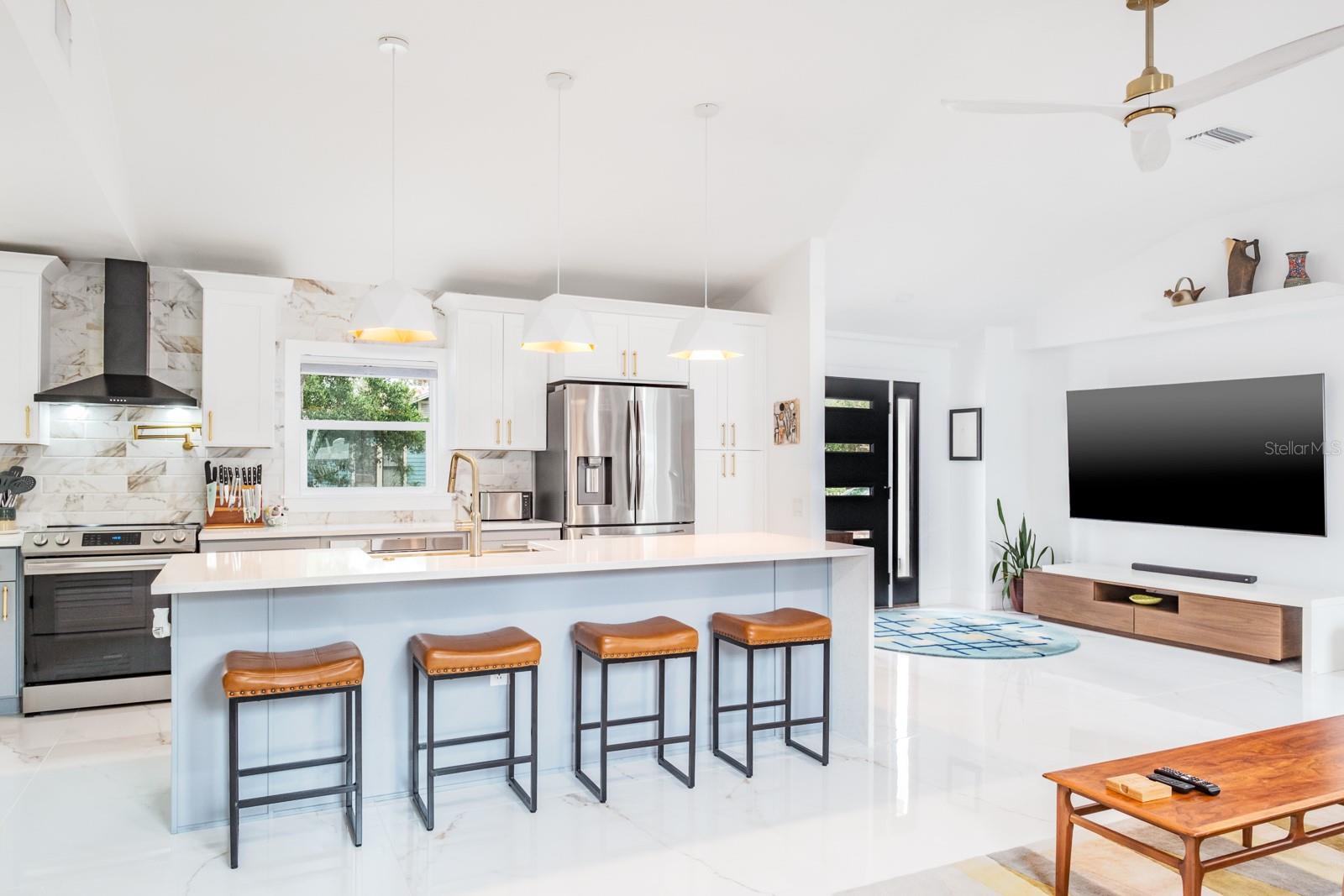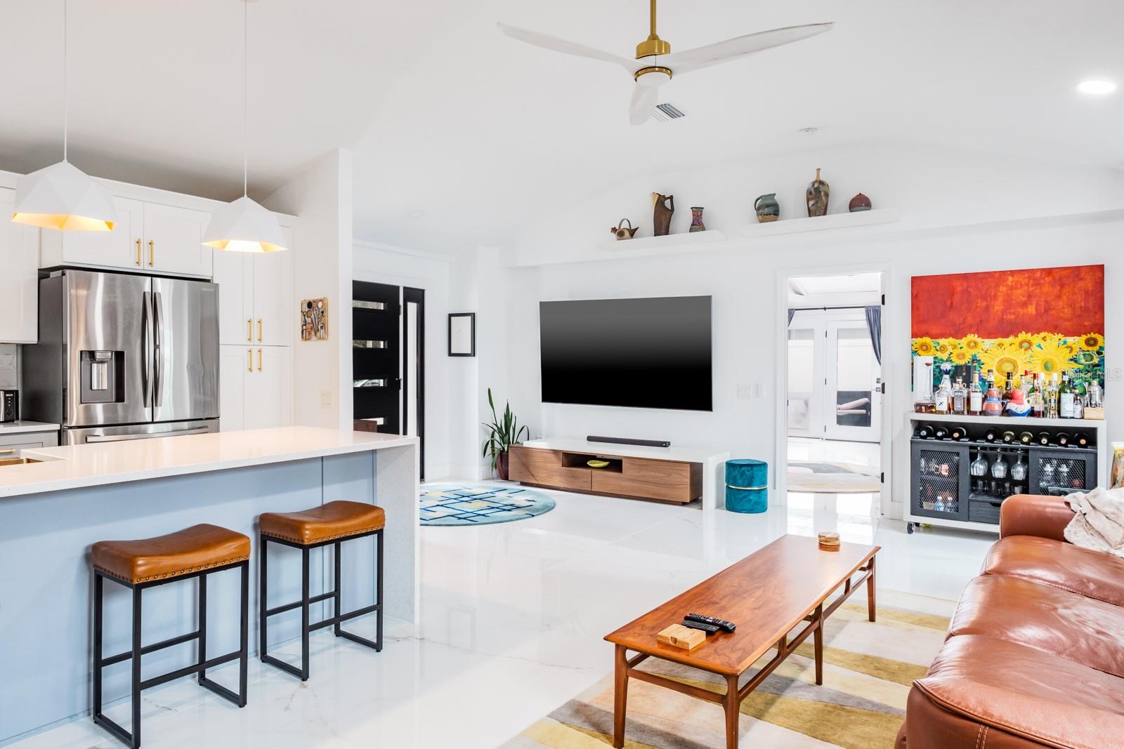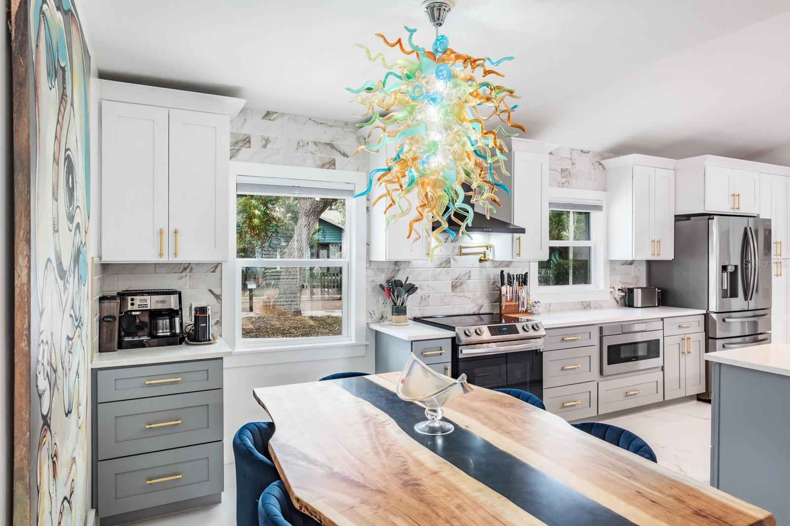 Localização, localização, localização !!! Fabuloso Downtown Dunedin! Carrinho de golfe amigável ... alto e seco, não é necessário seguro contra inundações! Esteja preparado para ficar impressionado !!! O orgulho de propriedade é abundante nesta casa imaculada e totalmente reimaginada, oferecendo quase 1.700 pés quadrados de grande espaço com 3 quartos e 2 banheiros completos. Localizado em uma das famosas ruas de tijolos nostálgicos de Dunedin em um local de canto premium, acentuado por uma espaçosa calçada circular. A planta moderna e aberta apresenta 2023 novos pisos de mármore 4'x4 'em todo o espaço e quartos. Espaçoso grande quarto apresenta tetos abobadados e um conceito aberto que antecipando reuniões familiares divertidas e divertidas. A impressionante cozinha gourmet personalizada com área de jantar adjacente apresenta balcões de quartzo acentuados por uma impressionante iluminação de ilha em cascata e designers, armários de madeira maciça de dois tons atualizados com molduras de coroa, aparelhos SS mais recentes, incluindo capa de capa e capa e presa, acabamentos de alto nível, fixações e backtsplash. A privacidade prevalece com a planta baixa do quarto. A enorme suíte do proprietário tem tinta fresca, possui um teto abobadado e oferece uma área de estar convidativa. O espaço é estendido com um closet e banheiro privativo do tipo spa, com pias duplas, balcões de quartzo, chuveiro amplo e acabamentos e acessórios da moda. As portas francesas levam a um paraíso ao ar livre ... um grande jardim de quintal, totalmente cercado para a privacidade final! Os dois quartos secundários estão do lado oposto da casa. Ambos são consideráveis com amplo espaço no armário e compartilham um banho elegante e atualizado, oferecendo uma única vaidade, trabalho de ladrilhos de designer de chão a teto e uma elegante banheira de imersão independente. A lavanderia está convenientemente localizada na grande sala. E há mais! Esta casa vem com um bônus encantador - um galpão isolado de 8'x16 'com piso de ladrilho. Absolutamente ideal para uma sala de hobby, sala de jogos, armazenamento ou até um quartel de hóspedes ... as possibilidades são infinitas! Atualizações adicionais incluem telhado (2021), CA (2021), aquecedor de água (2017), painel elétrico (2022), janelas de impacto, portas externas (2023), pintura externa (2023), cercas de vinil externo (2023), brigas (2023) apropriadas com concreto com concreto carimbado (202), pode ser adicionado a uma entrada de gente com concreto (2023). Carrinho de golfe amigável para o centro de Dunedin! Experimente a vibração de próspero Dunedin e suas fabulosas lojas, restaurantes, entretenimento, festivais, cervejarias e trilhas de ciclismo. Perto de Medical, Pinellas Trail, The Blue Jays Stadium e, claro, as lendárias areias brancas das praias do Golfo! Localização, Localização de fato!