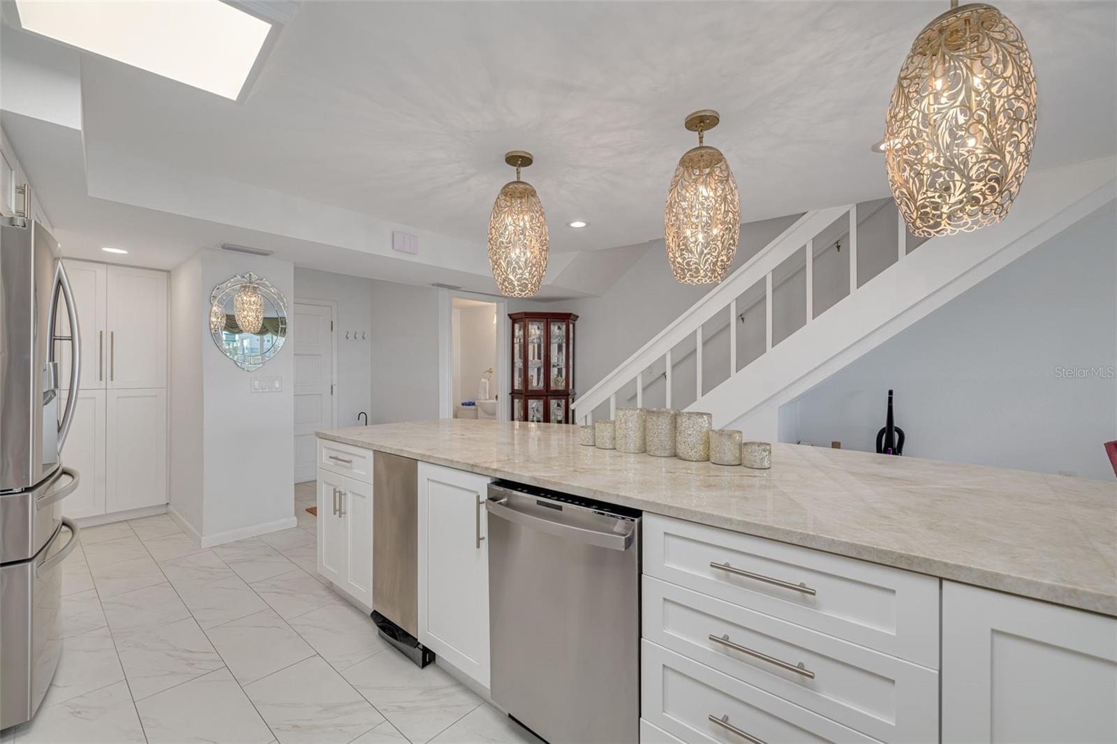 Uma ou mais fotos foram praticamente encenadas. Resort vivendo o ano todo! Este raro moradia de canto ficou chapado e seco durante as tempestades. Ocupa os 2º e 3º andares e oferece vistas elevadas no Sound Sound e Intercoastal St. Joseph, olhando para o parque de marel de lua de mel na ilha de lua de mel e no parque estadual da ilha de Caladesi. Este condomínio foi completamente remodelado há 2 anos. Piso plano aberto no térreo com vistas espetaculares da água. Sala de estar/jantar com lareira, uma grande cozinha aberta com um balcão de comer, uma varanda à beira-mar e um banho de 1/2 neste nível. Dois quartos foram combinados no andar de cima para criar um amplo quarto principal à beira -mar com dois armários. Isso pode ser facilmente convertido de volta a 2 quartos para um total de 3 quartos. O quarto frontal é um privado de suíte, o que é ótimo para a privacidade quando você tem convidados. As pessoas viajam de todo o mundo para férias em Dunedin. São apenas três quarteirões da Bike Pinellas e da Running Trail, que tem 45 milhas de comprimento. Existem vários restaurantes a uma curta distância, ou você pode fazer uma curta viagem até o histórico centro de Dunedin. Fundada no início dos anos 1900, Dunedin possui uma variedade de restaurantes, butiques, lojas e microcervejarias. Há um centro de arte ativo e um campo de golfe a uma distância de 10 a 15 minutos. Eventos de arte, desfiles, mercados de agricultores e muito mais são uma constante no centro histórico. Eles chamam isso de costa natural por um motivo. Você pode sentar na sua varanda e assistir os golfinhos, peixes -boi e aves marinhas em jogo. A associação cuidou excepcionalmente da propriedade e dos edifícios. As fotos simplesmente não fazem justiça a esta casa! Você deve ver isso pessoalmente!