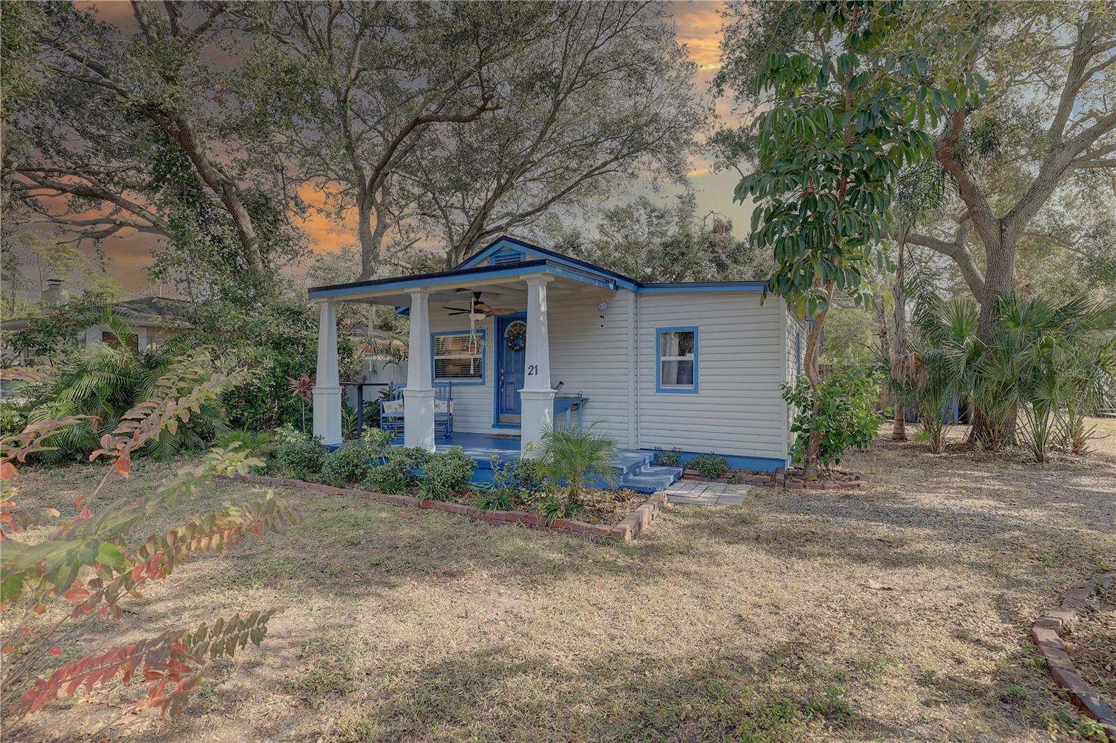 Dunedin 3/2 bangalô. Casa encantadora da década de 1920, aninhada em um ambiente sereno e tranquilo nas ruas de tijolos e perto de tudo. A apenas 1,6 km do distrito de compras e jantar do centro de Dunedin, a 1/4 de milha do Blue Jays Baseball Stadium e a uma quadra da Pinellas Trail. Também caminhar distâncias para a Curtis Fundamental School e Dunedin elementar. Autêntico piso de madeira, telhado e novo AC 2025, lavanderia separada, lotes de canto espaçosos com grande quintal cercado, perfeito para animais de estimação e crianças. Deck traseiro, galpão de armazenamento, fogo, carvalhos vivos maduros sombream esta propriedade. Desfrute de sentar no silencioso convés traseiro ou tomar café na pitoresca varanda da frente e aproveitar a sensação aconchegante deste bem cuidado de casa. Zona não de inundação, nenhum dano recente do furacão e em excelente estado. Uma descoberta rara na mais recente comunidade do condado de Pinellas. d.
