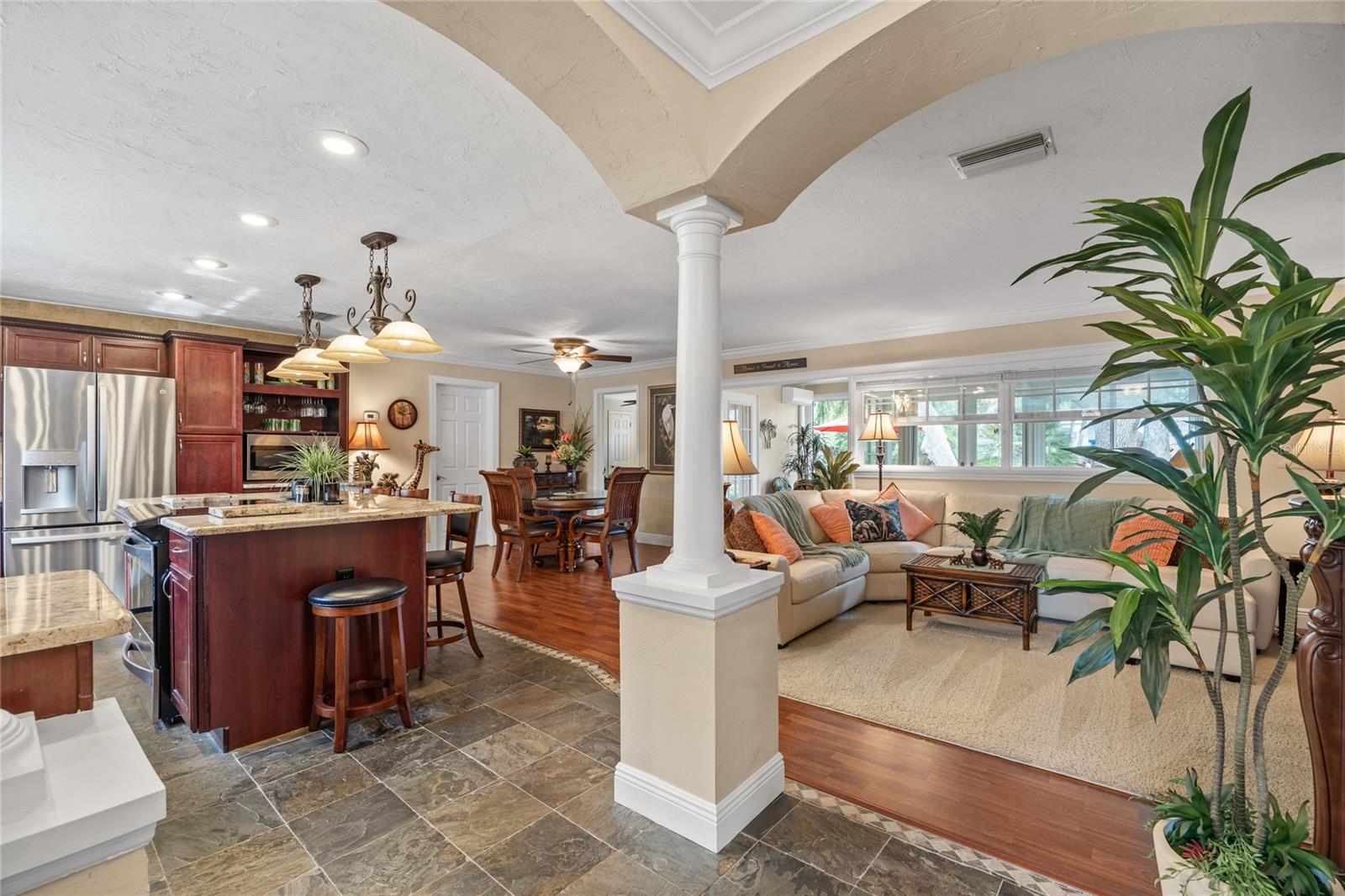 Apresentando um retiro polido em Fairway Estates! Uma acolhedora calçada e uma passarela levam você até a porta da frente desta encantadora casa. Entre no impressionante hall de entrada, realçado por graciosas colunas, arcos e sancas, que preparam o cenário para interiores elegantes e convidativos. A cozinha lindamente atualizada apresenta azulejos intrincados, uma ilha de cozinha central com assentos para os hóspedes e uma grande janela frontal que emoldura uma bela vista do jardim da frente e dos vizinhos que passam. O layout aberto conecta perfeitamente a cozinha à grande sala, área de jantar e marquise, tornando esta casa perfeita para reuniões. A procurada planta de quartos divididos garante privacidade e funcionalidade. A metragem quadrada listada inclui uma impressionante marquise fechada de 234 pés quadrados com janelas quase do chão ao teto que oferecem vistas serenas do quintal totalmente cercado. O espaço ao ar livre é verdadeiramente excepcional - um santuário privado cuidadosamente paisagístico com majestosos carvalhos, um pátio pavimentado e um deck composto que combina perfeitamente com o ambiente natural. A iluminação noturna mágica realça o ambiente, criando um retiro encantador. Com a sua exposição a norte, o quintal oferece conforto durante todo o ano, proporcionando opções de sol ou sombra durante todo o dia. Principais atualizações: • Cobertura: Cobertura em telha de concreto (2013) e cobertura plana (2022). • HVAC: Sistema principal (2015); Sistema mini-split (2022). • Esquentador: 2015. • Linha Principal de Água: Substituída em 2023. Destaques da comunidade: Fairway Estates é um bairro altamente desejável que oferece um estilo de vida único: • A poucos passos do Parque Lake Saundra, perfeito para observar pássaros, observar tartarugas e desfrutar de reuniões na vizinhança. • Ruas adequadas para carrinhos de golfe proporcionam fácil acesso ao centro de Dunedin, conhecido por seus restaurantes, lojas, cervejarias e bares. • Perto da Trilha Pinellas, que oferece quilômetros de oportunidades para caminhadas, ciclismo e patinação. • Conveniente para o Centro Comunitário de Dunedin, Centro de Artes e Parques Highlander e Hammock. • A poucos quilômetros das praias premiadas das Ilhas Honeymoon e Caladesi. • Adjacente ao restaurado Dunedin Golf Club, uma obra-prima de Donald Ross revitalizada ao seu esplendor original. Esta é uma rara oportunidade de possuir um retiro tranquilo numa das comunidades mais procuradas de Dunedin. Os móveis estão disponíveis para compra, oferecendo uma opção chave na mão para o novo proprietário. Não perca esta casa excepcional!