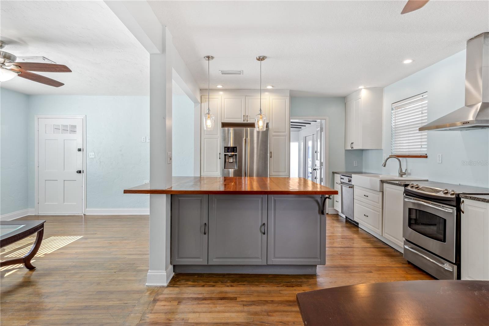 O coração é onde está a casa. Esse é o sentimento para esta encantadora casa de fazenda em uma rua de tijolos em um canto singular de Dunedin. Esta casa de quarteirão tem dois quartos grandes e um banheiro. A casa é um conceito aberto com uma grande cozinha/jantar/sala de estar. A cozinha foi remodelada com balcões de granito, armários suaves e uma enorme ilha de estilo de açougueiro. A cozinha é brilhante com muita iluminação embutida e pingentes sobre a ilha. O banheiro foi remodelado com um belo chuveiro e superfícies fáceis de limpar. O Breezeway, perto da cozinha, possui prateleiras de despensa e muito armazenamento extra, também há um galpão grande e resistente no quintal. A casa tem pisos de madeira sólidos e luz natural abundante. Esta casa está situada ao lado da Pinellas Bike Trail, com uma milha para o norte para chegar à praia/Publix e a 1,6 km para o centro do centro do centro da cidade. Golfe, playgrounds, piscina da cidade e centro de recreação estão a uma curta caminhada. A área possui restaurantes fantásticos e possui entretenimento o ano todo. Esta casa está em uma zona de inundação de AE, mas não foi danificada nas tempestades recentes.
