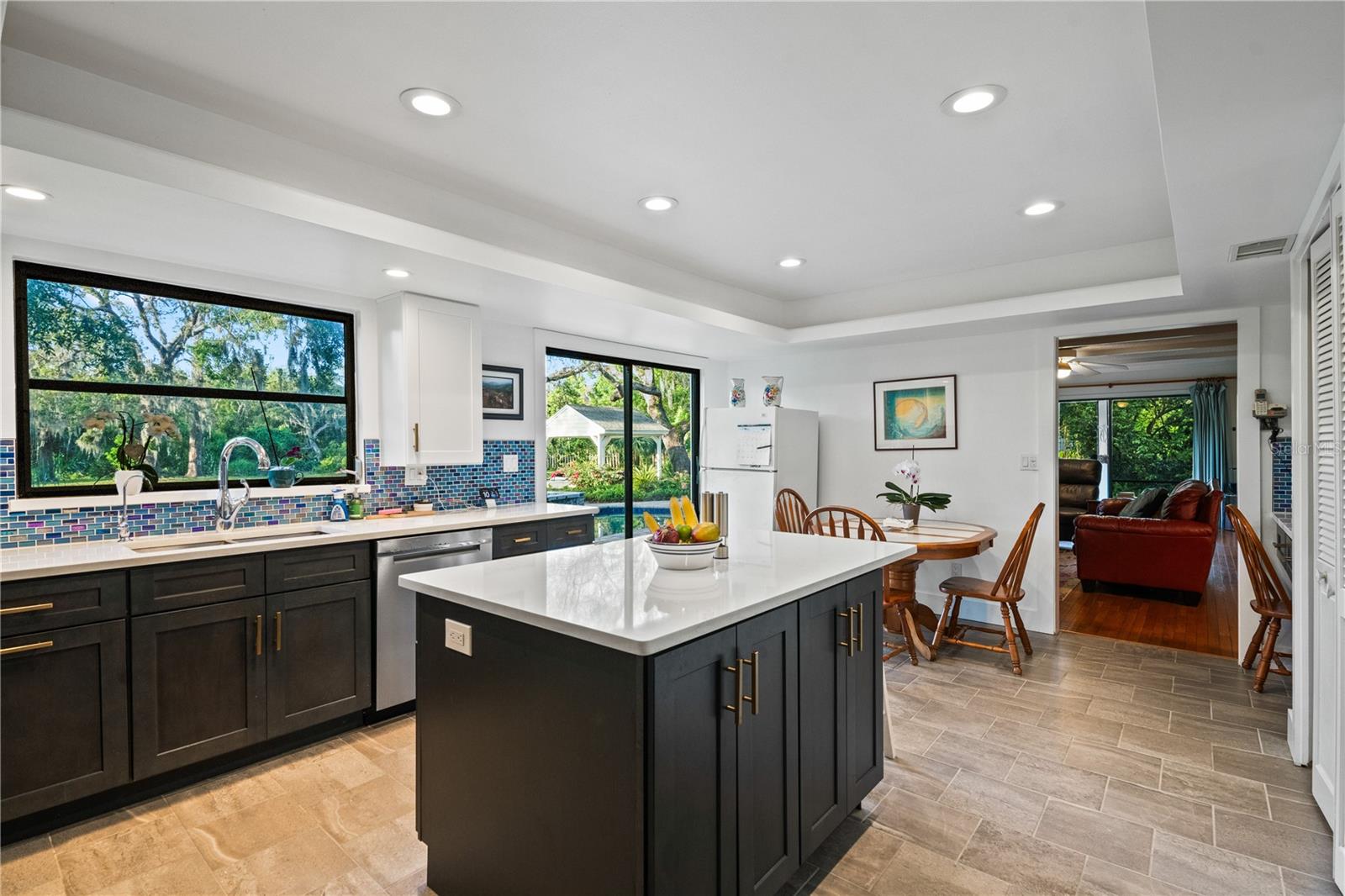 High & Dry, sem inundação durante os dois furacões recentes! Venha ver esta linda maravilha arquitetônica remodelada, situada em 1,28 acres em Dunedin, na Flórida, a apenas 4,7 quilômetros da ilha de lua de mel e a apenas 3 km do recém -reformado Dunedin Golf Club e da Pinellas Trail, enquanto o centro de Dunnedin com seus restaurantes de renome, os cafés fica a apenas 3,5 milhas. Dunedin é uma cidade pitoresca amigável para carrinho de golfe, na Famamosidade do Golfo da América, conhecida por seu Parque e Praia da Ilha da Ilha da Lua de lua de mel e pelo centro da cidade, cheio de vida, restaurantes e ruas percorridas. Esta casa de dois andares está localizada bem dentro do lote de 1,28 acres e o receberá com sua imponente mas também sutil vibração arquitetônica colonial. A garagem de três carros larga e profunda e a garagem massiva proporcionarão muito espaço para estacionar todos os seus brinquedos, carros, para que seja ideal para grandes festas. Esta casa possui convenientemente cinco quartos e 3 banheiros completos: o grande quarto primário, com seu grande banheiro grande e recentemente remodelado, está localizado no andar de cima, juntamente com outros três quartos servidos por um amplo banho de hóspedes. Há também um quarto no térreo e um banheiro de hóspedes totalmente remodelado localizado no andar de baixo junto com a lavanderia. A entrada impressionante com tetos altos com vista para as escadas se abre à esquerda para a grande sala de estar formal e espaço na sala de jantar, com muita luz de vários conjuntos de janelas que olham sobre o quintal enorme e o quintal da frente e com sua sala de estar excitada e encantadora. A cozinha totalmente remodelada fica bem no meio da casa, conectando o espaço formal de estar e jantar com a sala de estar. Esta cozinha tem tudo e mais para todas as suas necessidades, incluindo uma ilha totalmente funcional, muitos armários e um recanto de café da manhã com vista para a piscina incrível e o fabuloso jardim. Dois conjuntos de portas deslizantes conectam as áreas de estar ao quintal e piscina, enquanto um pátio coberto fechado, com tetos impressionantemente altos e abobadados, se abrirão inesperadamente, mas agradavelmente, ao lado da casa. A vista indescritível do quintal é preenchida com uma ampla piscina aberta, com um grande deck de pavimentadores, uma piscina que também é aquecida, sistema de sal, livre de cloro e convenientemente controlado remotamente através de um aplicativo. O quintal de um acre mais é absolutamente excelente e você não poderá ver o fim. Apenas um lembrete, este é uma casa de 3253 pés quadrados aquecidos, construída em 1,28 acres, teve muito trabalho, incluindo a cozinha grande com muitos armários mais novos e bancadas de quartzo extensas que oferecem muito espaço para a sua culinária, dois banheiros totalmente remodelados e, recentemente, foram pintados parcialmente e dentro, por dentro. Além disso, o sistema de aspersão está em um poço profundo, que economizará dinheiro em sua conta de água!. Por último, mas não menos importante, novo aquecedor de água no ano passado e novas calhas em toda a casa. Todo o tapume da casa é feito de tábua de hardie para sua paz de espírito.