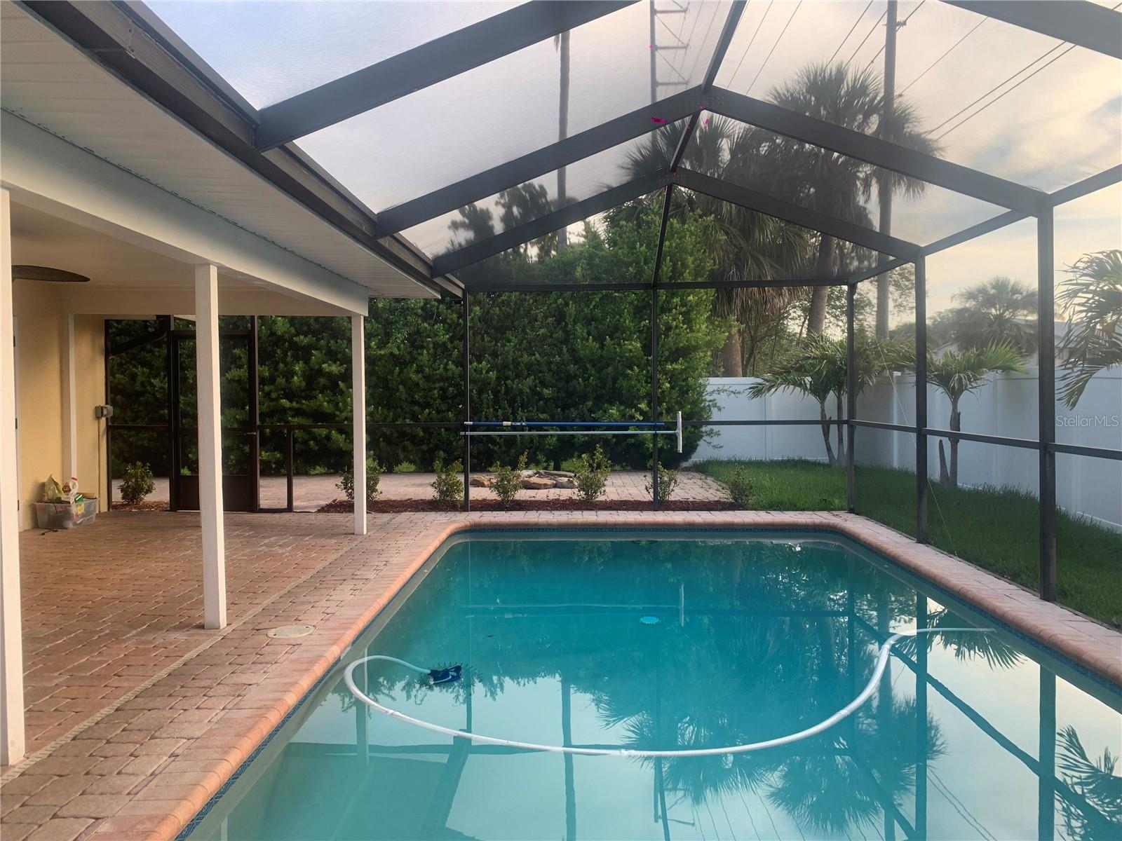 Linda casa de banho Dunedin 4 Bed/2 Bath com piscina de água salgada privada sentada e seca em uma zona de inundação (ainda apenas 15 minutos para as águas brilhantes das praias da ilha de lua de mel e apenas minutos para o centro de Dunedin) em um grande lote de 1/4 acres no altamente desejável estados de moor de carrinho de golfe de golfe e localizado em um cul-sac! Uma descoberta rara nesta comunidade, possui um interior recém -pintado 2025 com armários de cozinha novos 2025, um telhado de 2020, HVAC 2021, New Garage Door 2020, novo trabalho de duto em 2021 e totalmente pago pelos painéis solares! As contas elétricas médias podem chegar a 60 a 100 por mês. Uma garagem de 2 carros de grandes dimensões inclui bastante sala de armazenamento para todas as suas necessidades. A cozinha do chef foi atualizada com bancadas em granito, utensílios de aço inoxidável, além de uma barra de ilha/café da manhã extra grande, além de grandes armários de despensa. A área de jantar de conceito aberto adjacente à cozinha se encaixa em uma mesa grande para refeições mais formais. A sala de estar adjacente tem espaço para grandes portas seccionais e francesas que levam à piscina. O espaçoso quarto primário também possui portas francesas na área do pátio/piscina e um grande closet com banheiro privativo. O paisagismo tropical maduro, a fogueira e os pontos de relaxamento abundam dentro do gabinete de piscina/varanda rastreado e de ambos os lados com cercas de vinil. Um sistema de irrigação mantém a grama exuberante o ano todo. Esta linda casa também tem uma lavanderia interna. O quarto quarto pode ser usado como uma sala de bônus/mídia, covil ou escritório, se preferir e também tem portas francesas que levam à linda área da piscina. Aproveite todas as comodidades que você procura em uma casa de sonho de Dunedin.