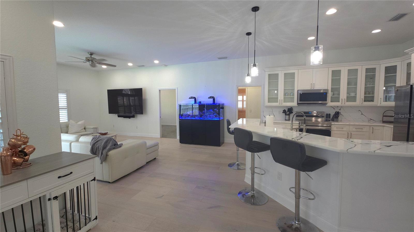 *** O vendedor é altamente motivado! Melhoria de preços e oferecendo até US $ 25.000 para incentivos para compradores, uso para fechar o custo ou a taxa de compra. Não perca esta oportunidade de tornar sua mudança mais acessível! Stirling Heights of Dunedin! Oportunidade rara em uma comunidade encantadora, a poucos minutos do centro de Dunedin, ilha de lua de mel, parques e comodidades com melhor classificação. Esta casa de piscina de 3 camas e 2 banheiros mantida com uma planta aberta e dividida cheia de luz natural e acabamentos de luxo. A espaçosa suíte master oferece acesso à piscina, armários duplos, banheira de jardim, chuveiro e vaidade dupla. Desfrute de várias áreas de estar, uma sala de jantar formal, recanto do café da manhã e cozinha de um chef com armários personalizados, despensa e utensílios de aço inoxidável. As atualizações incluem: nova cozinha, novos aparelhos, novos pisos por toda parte, todas as novas pavimentadoras, tinta nova por dentro e por fora, nova calha, gabinete de tela de condição perfeita, persianas de plantações, painel elétrico atualizado, abridores de portas de garagem mais recentes, 2022 HVAC, carregador de carros Tesla, caixa de entrada do gerador instalada na parede externa e 2021 no teto. Live the Florida Lifestyle - Schedule sua exibição particular hoje!
