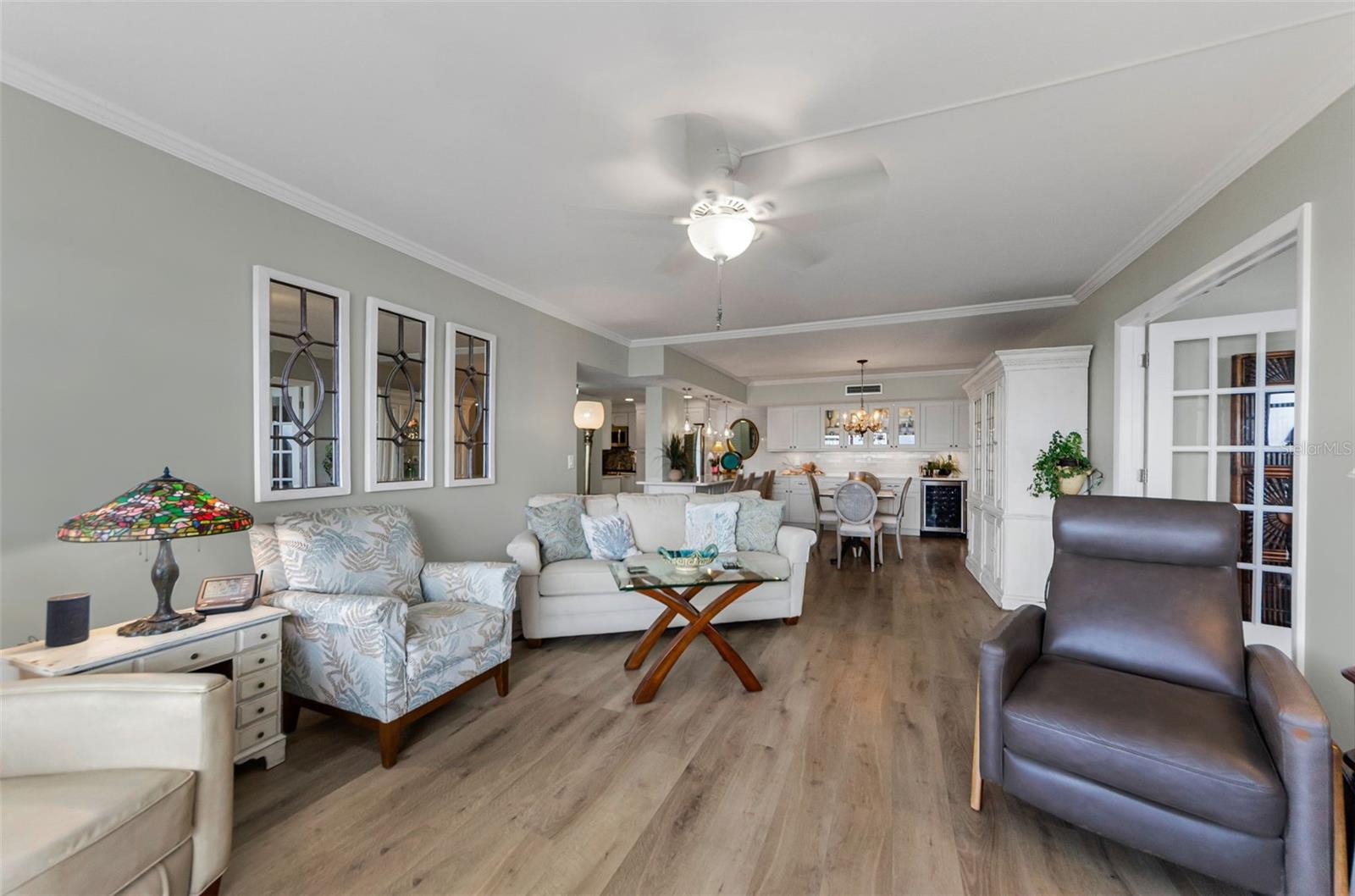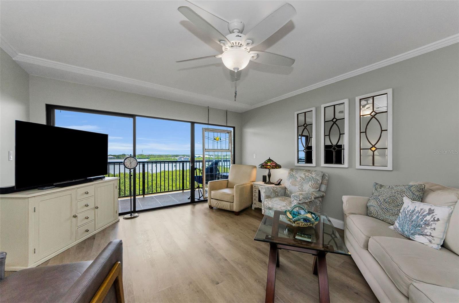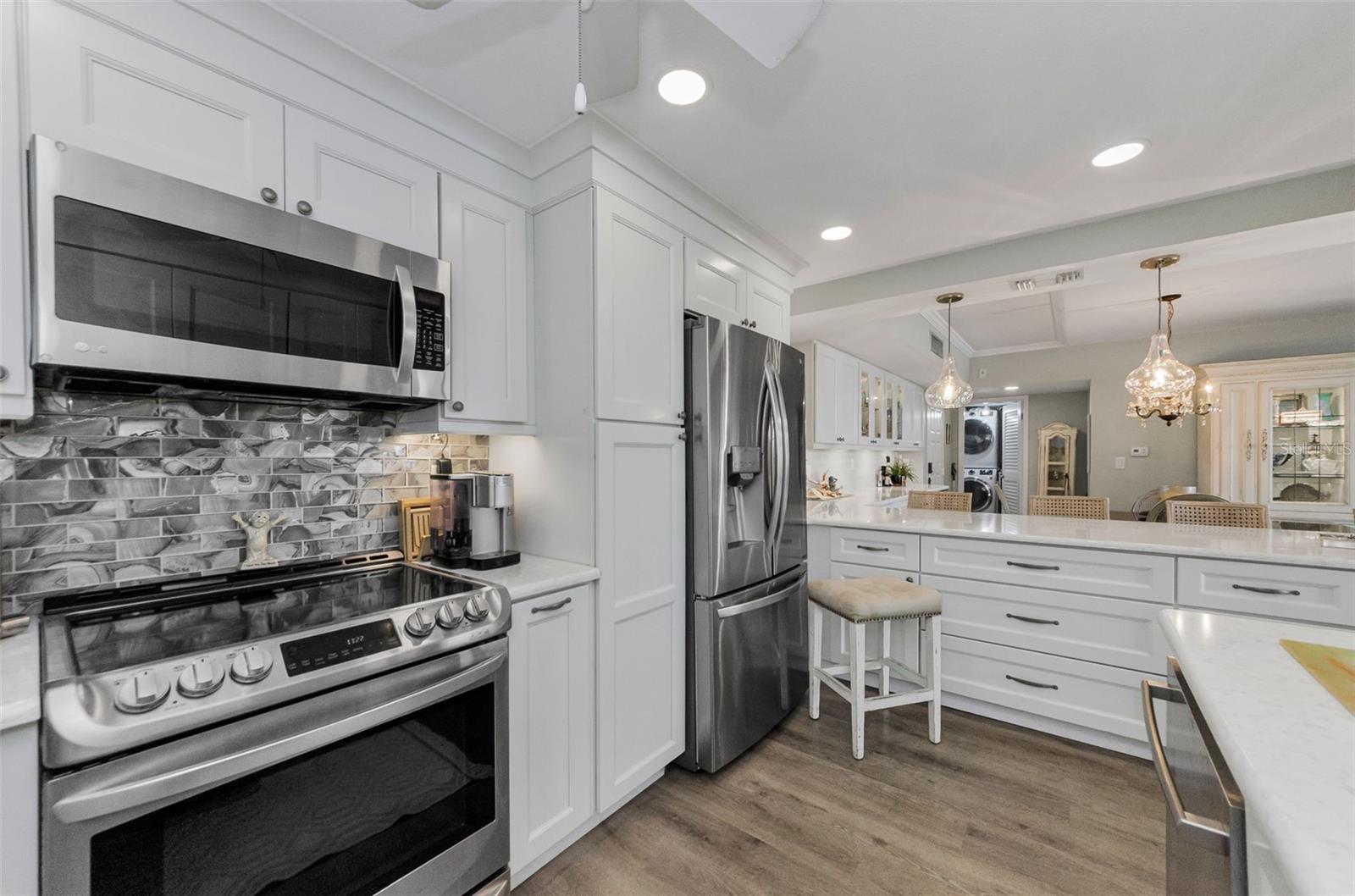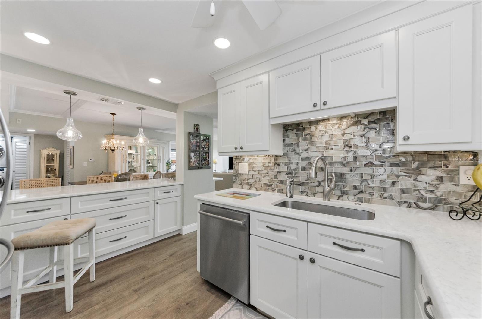 A vida à beira -mar no seu melhor! Pôs espetaculares, brisa relaxante e seus próprios desfiles de barco e golfinhos! Condomínio da unidade de canto do 5º andar com o verdadeiro espaço de vida ao ar livre e 240 pés quadrados em torno da varanda com vistas para o nascer e o pôr do sol. .. E fica melhor ... Plano de quarto dividido verdadeiramente reconfigurado e atualizado com cozinha aberta, 12 pés de assento de balcão aberto com barra seca/área de servir de comprimento total e geladeira embutida. Passe pelas portas duplas para a sua suíte primária em tamanho king com seu amplo banho privativo e uma parede de vidro deslizante que também sai para a varanda (os dois quartos fazem!). E para os hóspedes, um segundo quarto com uma bela cama Murphy embutida que é facilmente usada como um escritório. Você escolhe, está aqui ... granito, inoxidável e piso de vinil de luxo, iluminação embutida, sua lista de desejos foi concedida! Tudo isso em um estilo de segurança elevado de estilo moderno, com estacionamento em prédio. Praia privada do local no local, parque à beira-mar com chuveiros e churrasqueiras, clube à beira-mar, prateleiras de caiaque, piscina aquecida, quadra de tênis/pickleball e um edifício de recreação completo com bilhar, equipamentos de fitness, biblioteca e muito mais. Precisa de mais?- do outro lado da rua da trilha Pinellas e bloqueios curtos para Dunedin Causeway, Dunedin Golf Club, Publix, Restaurantes ... Pegue o "Jolly Trolley" para o centro de Dunedin Food e MicroBreweries, ou as dicas de três vezes, o primeiro ano, o primeiro ano, o primeiro ano.