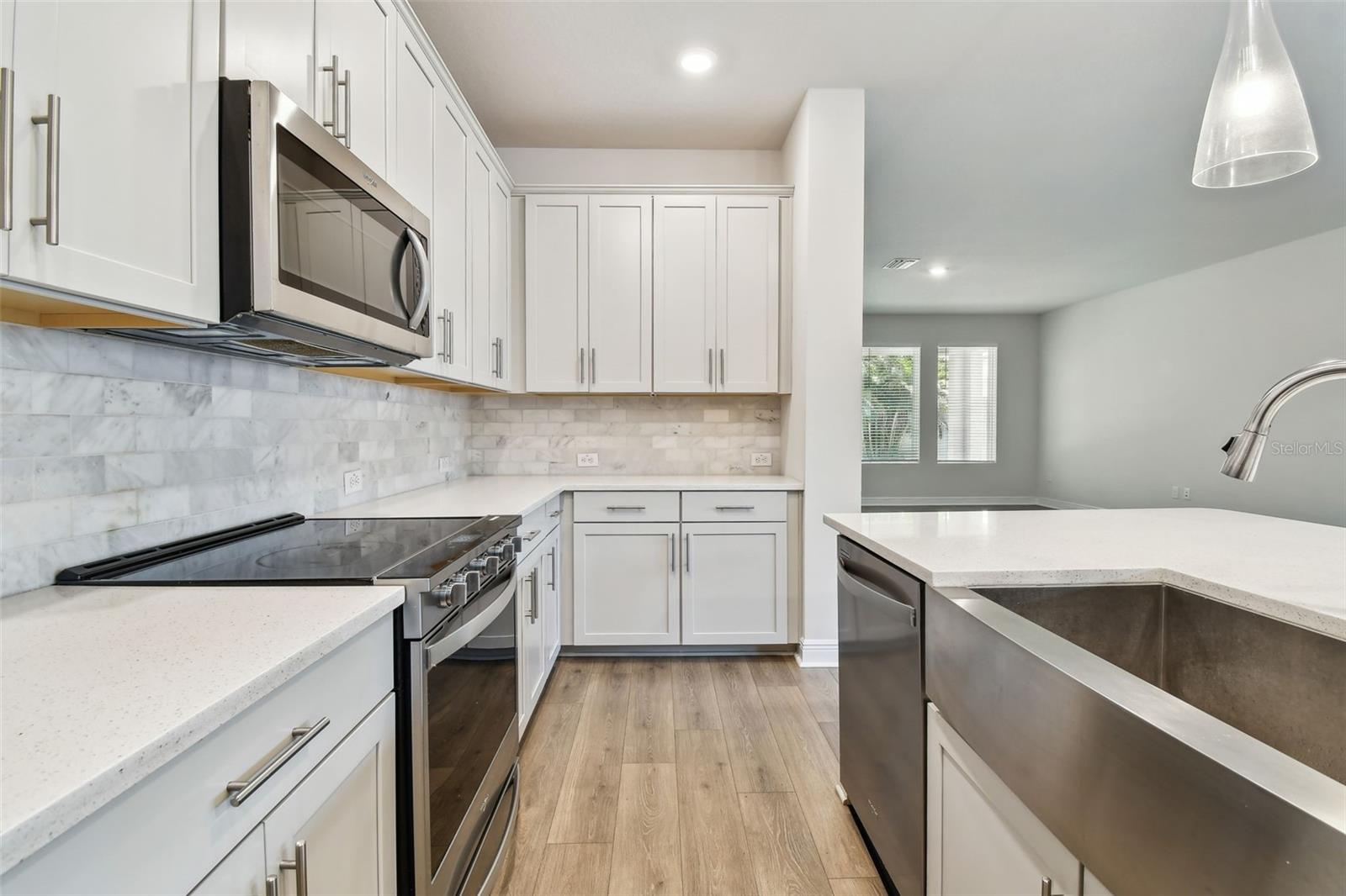 Uma ou mais fotos foram praticamente encenadas. Estamos entusiasmados em introduzir uma casa de estilo de Ranch Contemporary Design, altamente desejável, situada perfeitamente a um curto passeio do centro de Dunedin. Esta casa está idealmente localizada a uma quadra ao norte da revitalizada Skinner Boulevard e a uma quadra a leste da cênica Pinellas Bike Trail. Com a atualização do Skinner Boulevard, programada para concluir no início de 2026, você desfrutará de faixas de trânsito reduzidas, novas rotatórias, ciclovias dedicadas e travessias de pedestres aprimoradas, aprimorando o apelo do bairro. Construído em 2021, este quarto de quatro quartos, três banheiros e meio, combina o luxo moderno com conveniência e segurança. Você encontrará tetos de dez pés por toda parte, janelas e portas com classificação de furacões, luminárias e ventiladores elegantes e uma série de recursos personalizados que elevam a vida cotidiana. O coração desta casa é sua cozinha gourmet que possui uma grande ilha, bancadas elegantes de quartzo, armários de madeira branca e utensílios de aço inoxidável da linha, tornando-o perfeito para cozinhar e divertir. A sala de estar de grandes dimensões oferece amplo espaço para reuniões de família, enquanto a ampla suíte primária possui tetos deslumbrantes de bandeja, um banheiro considerável privado, pias duplas e um generoso closet. Todos os outros três quartos são bem proporcionados com o segundo quarto com seu próprio banheiro privativo. Saia para desfrutar do paisagismo exuberante do seu pátio privado e coberto de traseiro, ideal para relaxar noites ou café da manhã. Esta casa oferece tranquilidade com sua construção sólida em blocos, base de laje e telhado de telha durável. Considerando que a nova construção na área está avaliada em mais de US $ 550 por pé quadrado, esta propriedade comparável oferece valor excepcional em apenas US $ 390 por pé quadrado, destacando a conveniência desse local. Convidamos você a vir vê -la magnífica hoje e imaginar torná -la sua amanhã. Embora se acredita que todas as informações sejam precisas, os compradores são incentivados a verificar todas as informações que consideram necessárias para tomar sua decisão de comprar.
