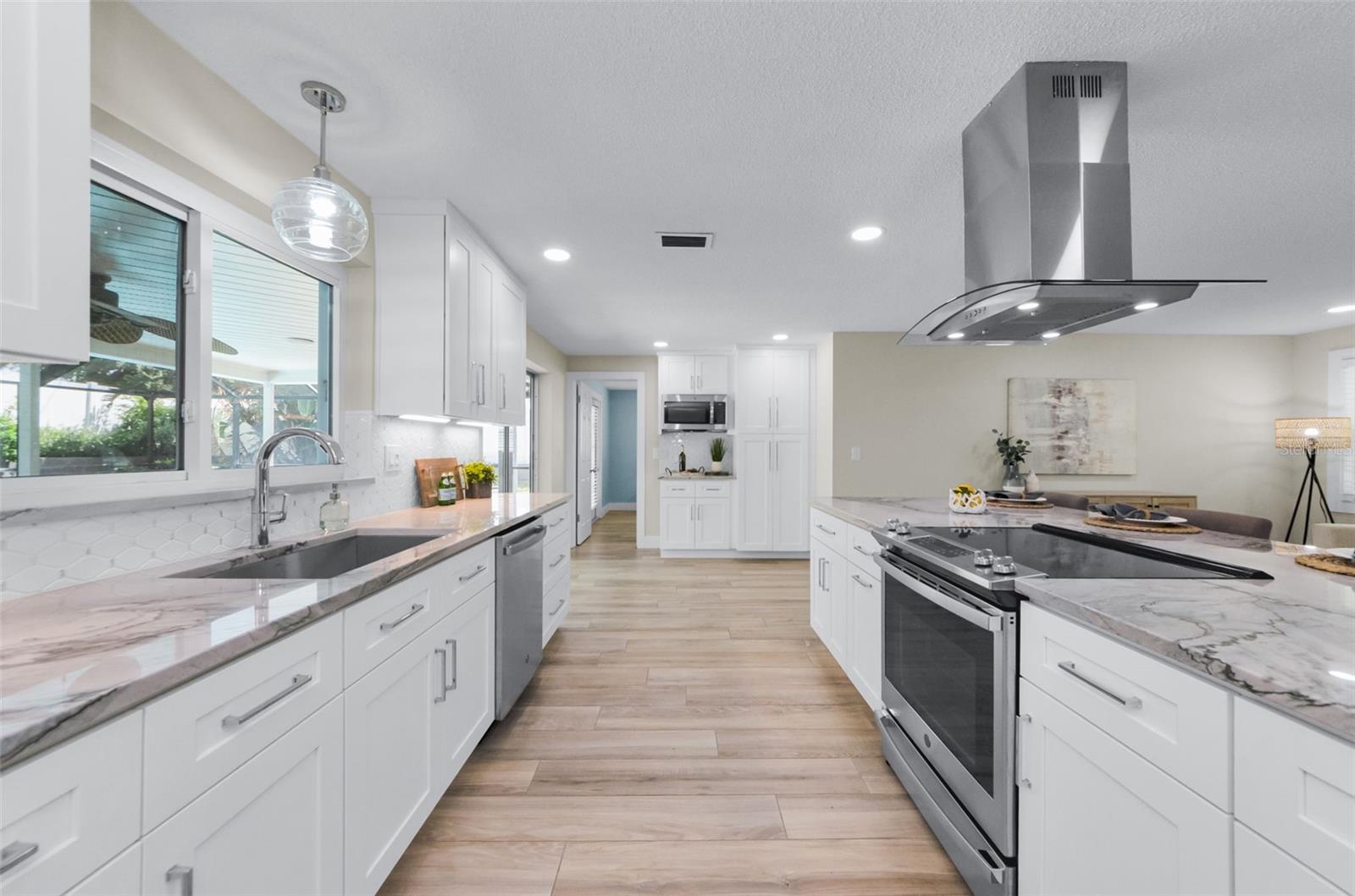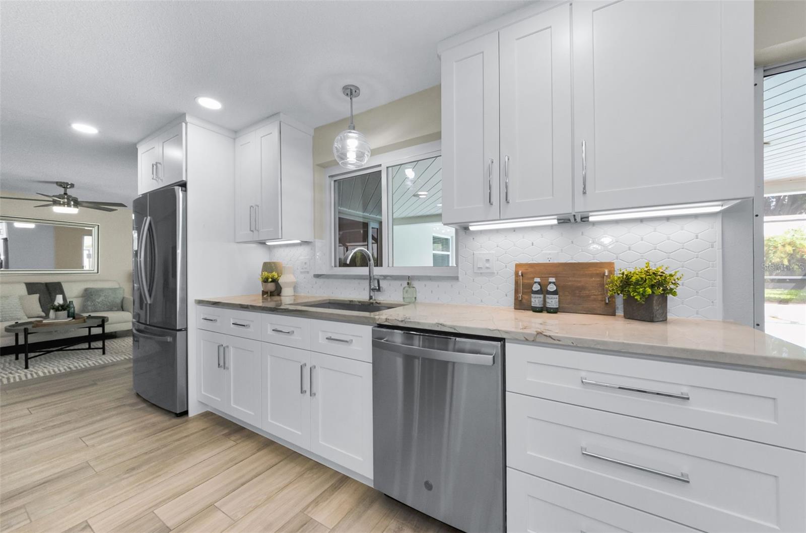 Bem-vindo a esta impressionante renovada em casa de 4 quartos e 3 banheiros no desejável bairro de Dunedin. Esta bela propriedade oferece uma experiência espaçosa e moderna, perfeita para famílias ou para quem procura espaço para entreter e relaxar. À medida que você se aproxima, você notará o charmoso apelo do meio -fio com paisagismo exuberante e uma entrada acolhedora. Entre, e você ficará imediatamente impressionado com o layout aberto e brilhante. A cozinha é um verdadeiro destaque, com armários brancos elegantes, bancadas deslumbrantes de quartzito com uma ilha de 10 x 4 e aparelhos de aço inoxidável de primeira linha. O café é um toque inesperado. Esteja você preparando uma refeição em família ou hospedando convidados, esta cozinha oferece estilo e funcionalidade. As áreas de estar e jantar adjacentes são perfeitas para reunir, com muitas luzes naturais fluindo através de grandes janelas. A expansiva suíte master fornece um retiro pacífico com seu design espaçoso e um banho de suíte lindamente renovado, que apresenta uma banheira de imersão de luxo, chuveiro separado, bancada de mármore e closet. Você prefere pia dupla no primário? Sem problemas. Olhe embaixo do balcão, ele foi pré-enxerto para adicionar outra pia. Acesso à área da piscina fora da suíte principal também. Os quartos adicionais (no lado oposto da casa) são igualmente espaçosos, oferecendo muito espaço para a família, os hóspedes ou um escritório em casa. Uma das características únicas desta casa é a suíte do sogro, com um banheiro privativo. Lá fora, desfrute da Flórida que vive o seu melhor com uma piscina brilhante e lanai exibido. O quintal é um oásis, oferecendo muito espaço para relaxar, divertir ou simplesmente desfrutar do ambiente tranquilo. Completamente cercado. Grama verde exuberante com um sistema de aspersão de 6 zonas em água recuperada e um cachorro corre ao longo do lado oeste da casa. As calhas têm guardas de folhas e o sistema de drenagem francês em torno da casa mantém o lote alto e seco. Amaciador de água para cobertura de casa inteira. Tantas atualizações; Telhado 2024, pátio e pavimentadoras de entrada 2024, tinta externa 2025. Todos os encanamentos de entrada substituídos, painel elétrico, atualizado com o interruptor de transferência para conectar seu próprio gerador portátil. Manipulador de ar 2021. Renovações de interiores 2019/2020. Localizado nas propriedades do Fairway, altamente procuradas, este é um bairro aprovado pelo carrinho de golfe e fica a poucos minutos do centro de Dunedin, praias de classe mundial e todas as oportunidades de jantar, compras e recreação que a área tem a oferecer. 5 minutos para a trilha Pinellas. O campo de golfe, o clube e o restaurante acabaram de concluir uma reforma de 6 milhões de dólares. Esta casa está em uma zona de não avaliação e não requer seguro contra inundações. Não perca a oportunidade de possuir esta casa lindamente renovada em um dos melhores bairros de Dunedin. Agende sua exibição particular hoje!