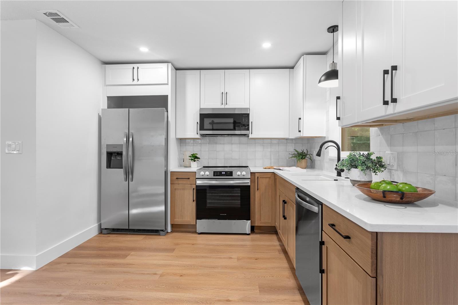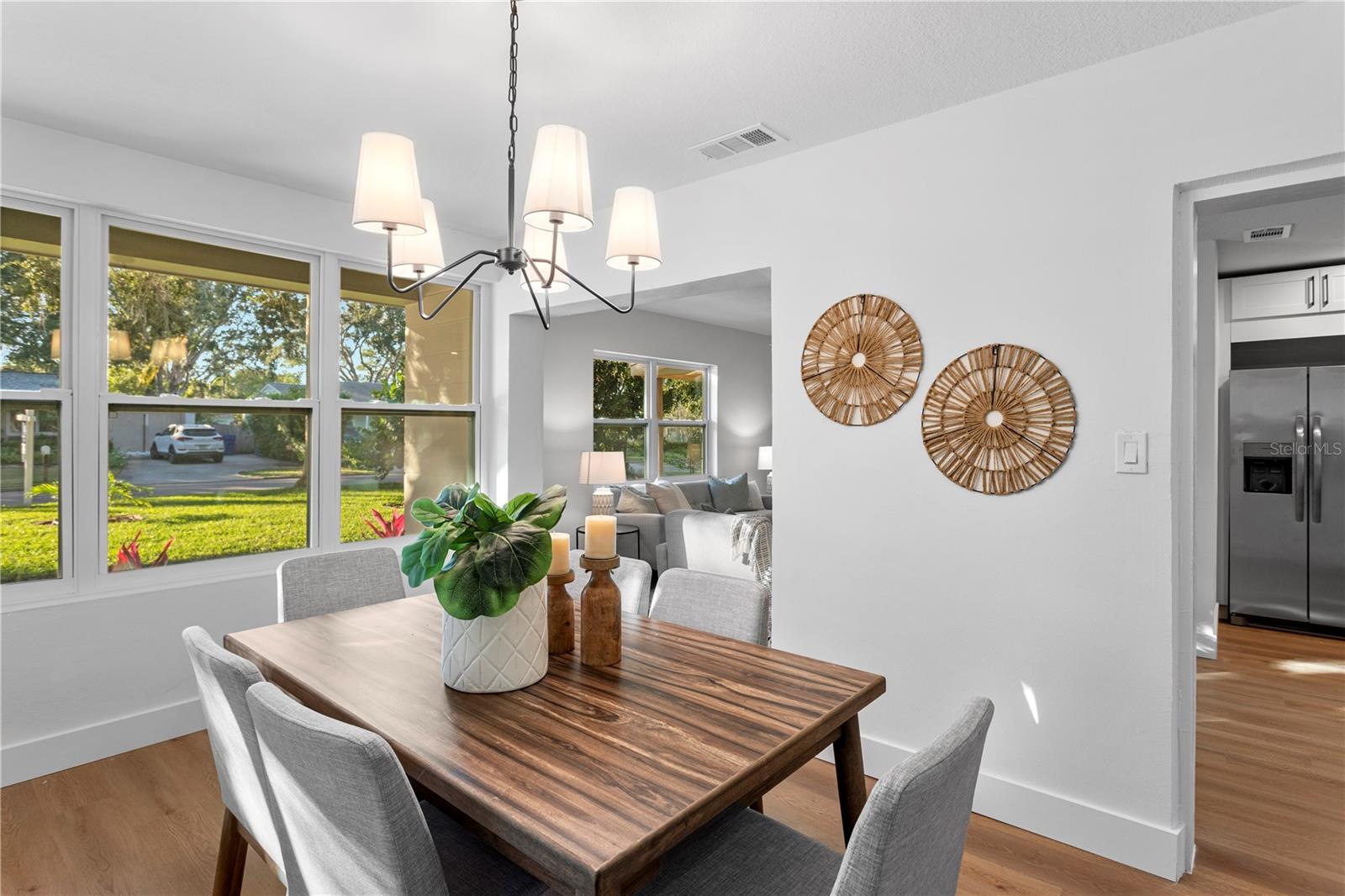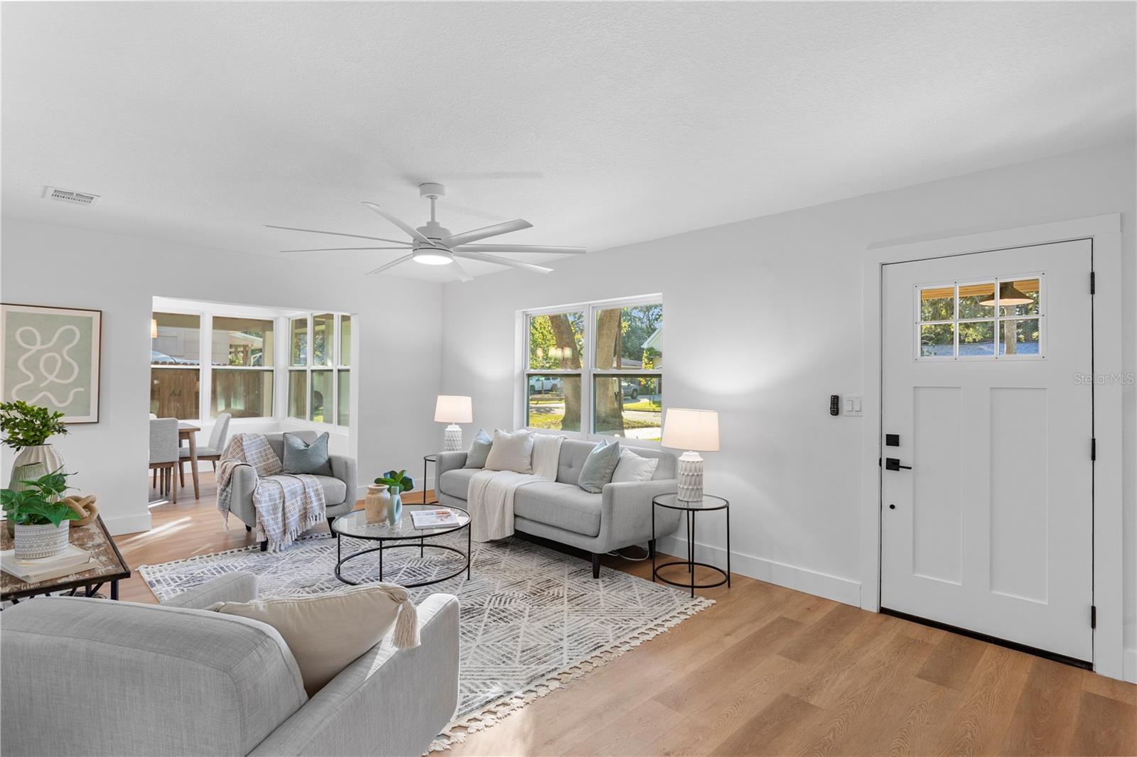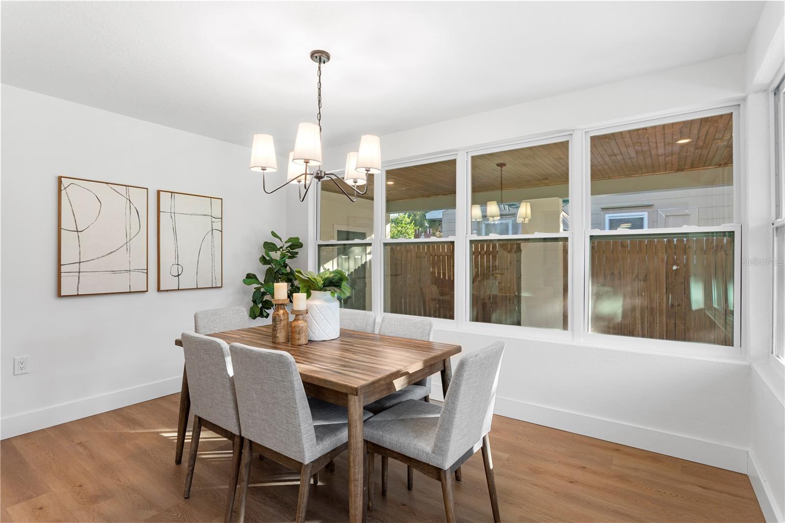 Esta casa de um único andar de 2 quartos e 1,5 banheiro está em uma localização privilegiada a poucos minutos de muitas lojas e restaurantes do Downtown Dunedin! Os acabamentos de grife e o novo piso de tábua de vinil de luxo são encontrados em toda a casa, que tem uma ótima planta perfeita para viver e divertir. A espaçosa e brilhante sala de estar está aberta para a cozinha, que possui novos armários de agitação, balcões de quartzo, novos aparelhos de aço inoxidável e espaço para uma área de comer. Lavanderia e um banheiro chique em pó estão perto da cozinha, o que também leva à porta de carro coberta com um novo teto de língua e ranhura. Uma sala de jantar separada cercada por riachos de janelas sob luz natural. Dois quartos espaçosos compartilham o banheiro completo que tem um novo chuveiro de azulejos. O espaçoso quintal cercado tem um pátio de cascalho do mar e amplo espaço para uma piscina. Outros recursos incluem novas janelas de vinil com classificação de impacto por toda parte, HVAC elétrico e mais recente (2020) atualizado e aquecedor de água (2022) e uma grande sala de armazenamento na parte traseira da porta do carro. Esta casa está aninhada em um bairro de carrinho de golfe de casas pitorescas pelas quais a trilha de bicicleta Pinellas passa. É também um curto passeio até Hammock Park, Dunedin Golf Club e ilha de lua de mel. Esta casa ficou alta e seca, sem inundação ou dano de tempestade durante Helene e Milton.