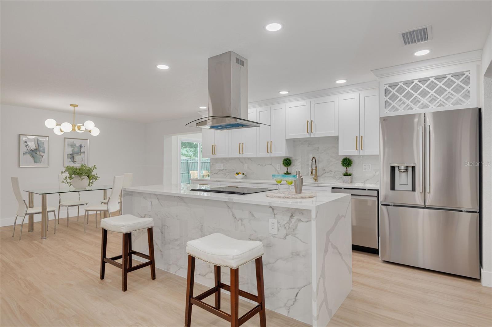 Não perca esta fabulosa e remodelada 3 camas, 2 banheiros, a casa da piscina na subdivisão altamente desejável da Ranchwood Estates. A casa está situada em um local privilegiado a poucos minutos do centro de Dunedin e perto de todas as compras e restaurantes. Você vai adorar este bairro encantador, o piso plano aberto e muitas atualizações, incluindo uma suíte master e cozinha de madeira personalizada! As melhorias incluem pisos de vinil de luxo, ladrilhos de porcelana modernos através da casa, sistema CA mais recente, teto novo, textura interior fresca, tinta interior/externa, janelas de impacto, iluminação embutida de LED atualizada, novos ventiladores de teto, novos rodapés 5 ', novas portas interiores e muitos outros recursos. A nova cozinha personalizada e personalizada de madeira foi projetada para fornecer bastante armazenamento, possui gavetas e armários suaves, piso de ladrilhos de porcelana novo, bancadas de luxo com design de cascata, utensílios de aço inoxidável Samsung com sede de barra de café da manhã. Os banheiros são totalmente reformados com novos tops de vaidade, ladrilhos de porcelana e barracas de chuveiro com acessórios modernos. A suíte master possui uma sumptuosa banheira de imersão para relaxamento final, vaidade de pia dupla, enquanto um chuveiro contribui para a sensação de indulgência. Esta casa é remodelada de cima para baixo e projetada para entreter com o piso plano aberto. Detalhes são importantes, e o artesanato meticuloso é evidente a cada passo. Saia onde um enorme oásis de quintal aguarda diversão e reuniões em família. A piscina no solo e o paisagismo recente maduro combina perfeitamente com o elegante interior. Fornece ótimos apelo ao meio -fio, paisagismo de baixa manutenção e grama madura. A casa está localizada centralmente, a menos de 1,6 km de carro do centers rural, praças de compras, restaurantes e menos de 10 minutos de carro do centro de Dunedin. Orgulhosamente em pé em uma zona não de inundação, este lar promete paz de espírito. Um achado raro, encapsulando conforto, conveniência e pura sofisticação, esta residência convida você a morar no colo do luxo. Bem -vindo para casa!