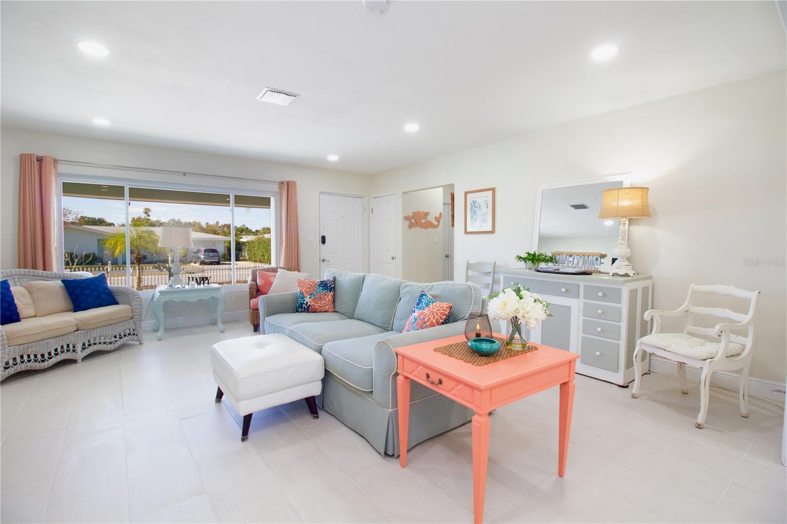 Apenas UAU! Escondido em uma rua tranquila e sem saída em Delicious Dunedin, este 2/2 tem 1434 sf, mas com mais de 2300 sf de espaço vital, pois o Florida Room é um bônus lindo! A única inundação com a qual você precisa se preocupar é com toda a luz natural que inunda esta casa por excelência da Flórida, espalhando-se pelas janelas de impacto atualizadas. Situada no alto e seco em uma zona SEM INUNDAÇÃO, esta casa impressionante e lindamente atualizada foi meticulosamente mantida e foi pintada por dentro no ano passado e por fora há 3 anos. Esta casa possui dois quartos de tamanhos generosos, uma planta aberta e uma cozinha e banheiros cuidadosamente atualizados, todos ancorados com piso de cerâmica adorável e fácil de cuidar. Uma conveniente lavanderia interna inclui lavadora e secadora. Um telhado de concreto de cinquenta anos irá protegê-lo por décadas. O exterior de baixa manutenção apresenta "gramado" realista nas áreas primárias, portanto, contas de água muito baixas e pouca ou nenhuma manutenção. Um rápido passeio de carrinho de golfe até o centro da cidade e apenas um quilômetro até a água.