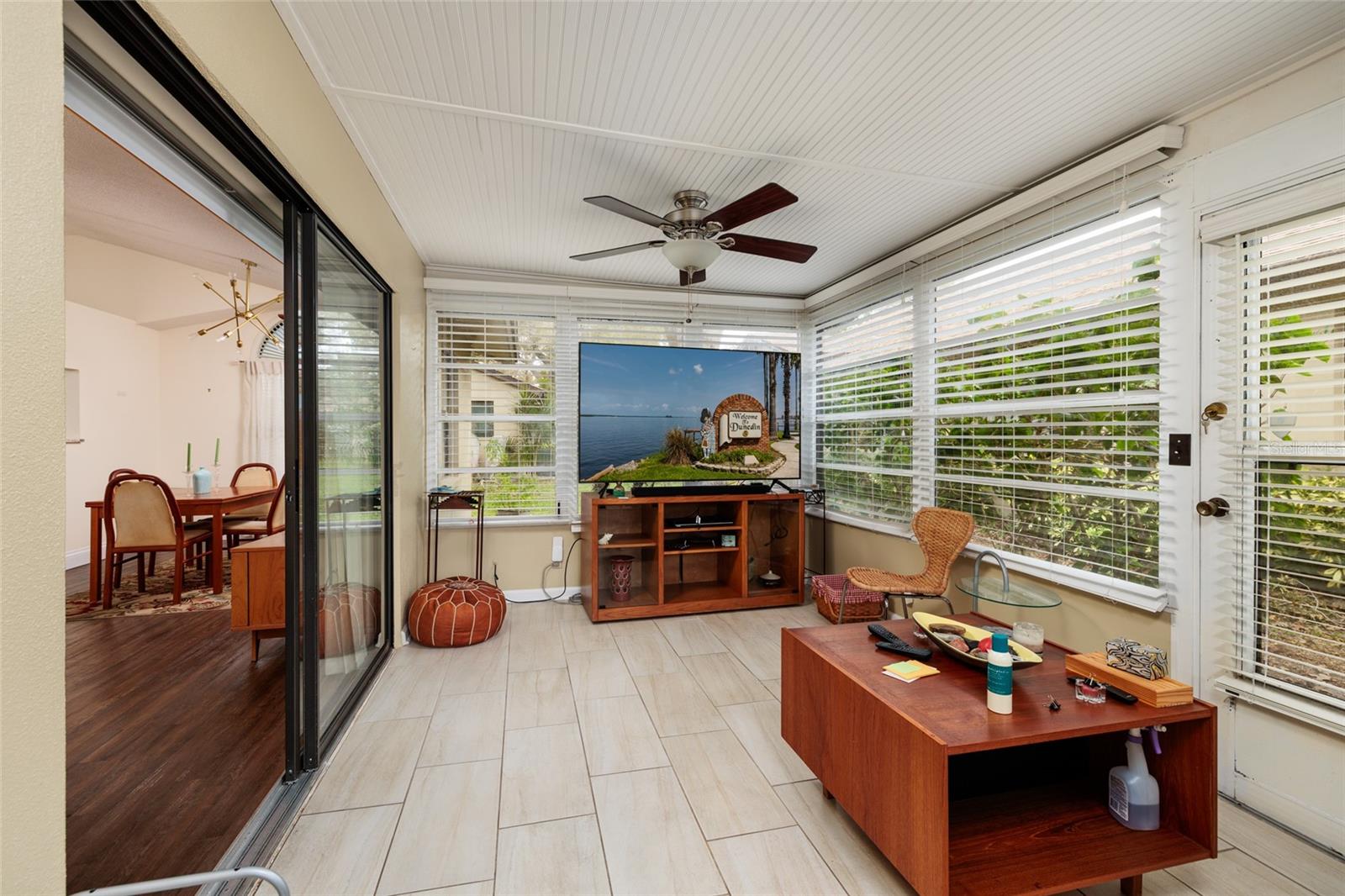 Descubra uma oportunidade maravilhosa em Dunedin altamente desejável com esta vila de um andar lindamente atualizada em Braemoor Lake Villas. Idealmente situada em um local privado dentro da comunidade, esta residência iluminada de 2 quartos, 2 banheiros e garagem individual para um carro oferece conforto, estilo e conveniência. A casa possui azulejos modernos e piso de vinil luxuoso - sem carpete - e uma abundância de janelas que preenchem o espaço com o sol natural da Flórida o ano todo. A cozinha atualizada (2019) apresenta bancadas de granito, armários de madeira branca e eletrodomésticos de aço inoxidável, tornando-a funcional e convidativa. Os tetos abobadados realçam a espaçosa sala de estar, que flui perfeitamente para o amplo Florida Room, oferecendo mais de 200 pés quadrados adicionais e cercado por dez janelas para um retiro luminoso e relaxante. A suíte principal de grandes dimensões também possui tetos abobadados e um banheiro privativo atualizado com pia com tampo de granito. Um generoso quarto secundário se abre para a Sala Florida, enquanto o segundo banheiro completo é igualmente atualizado com balcões de granito. A sala de jantar proporciona um cenário ideal para reunir familiares e amigos. Braemoor Lake Villas é uma comunidade meticulosamente mantida que oferece piscina aquecida, quadras de shuffleboard e um clube acolhedor. Localizada a poucos minutos das instalações de treinamento de primavera do Toronto Blue Jays, do centro de Dunedin, da Honeymoon Island e do recém-restaurado Dunedin Golf Club, esta casa realmente oferece estilo de vida e localização. O melhor de tudo é que não é necessário seguro contra inundações. Uma verdadeira joia de Dunedin – não perca esta oportunidade. Bem-vindo ao lar.