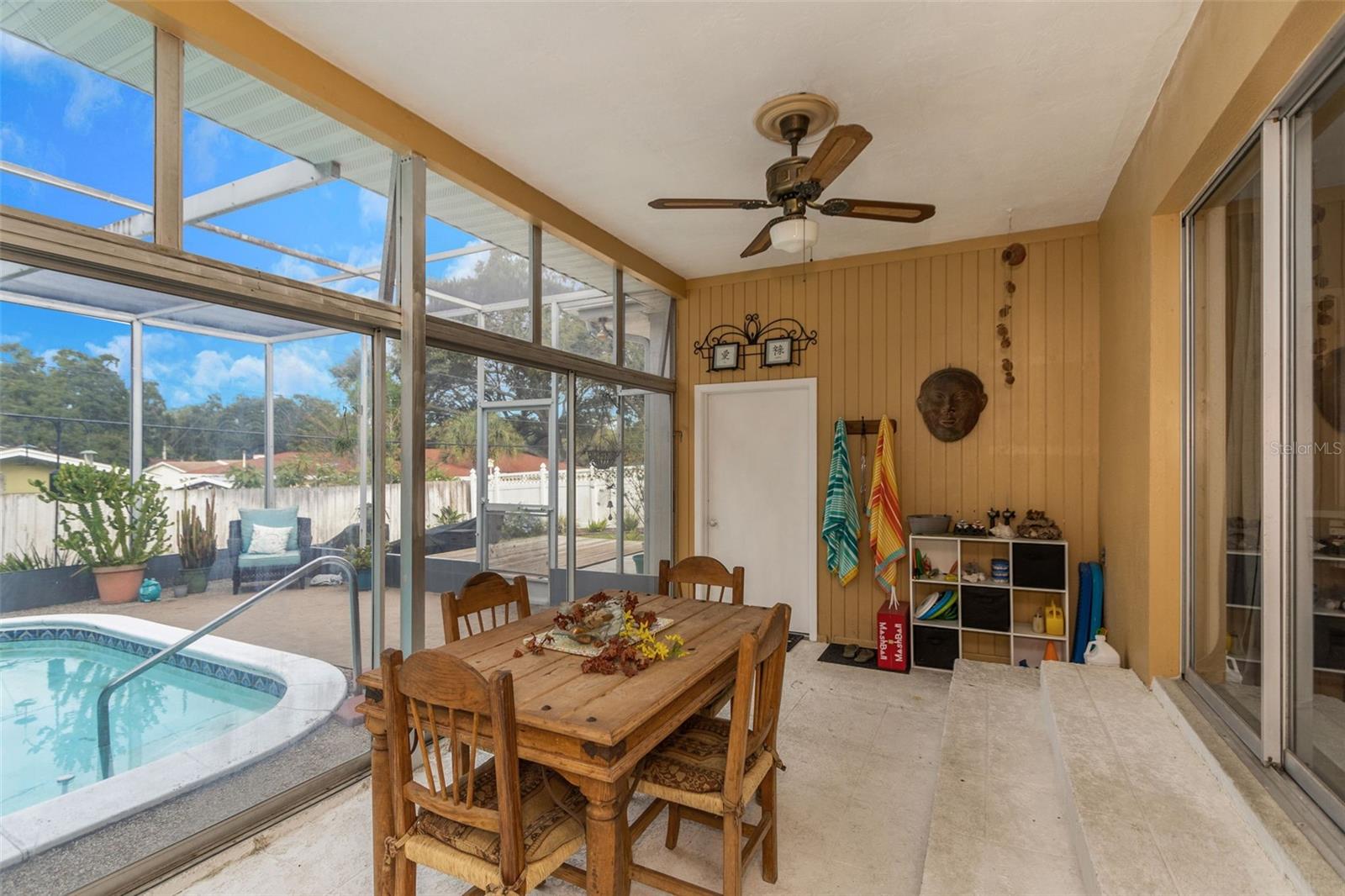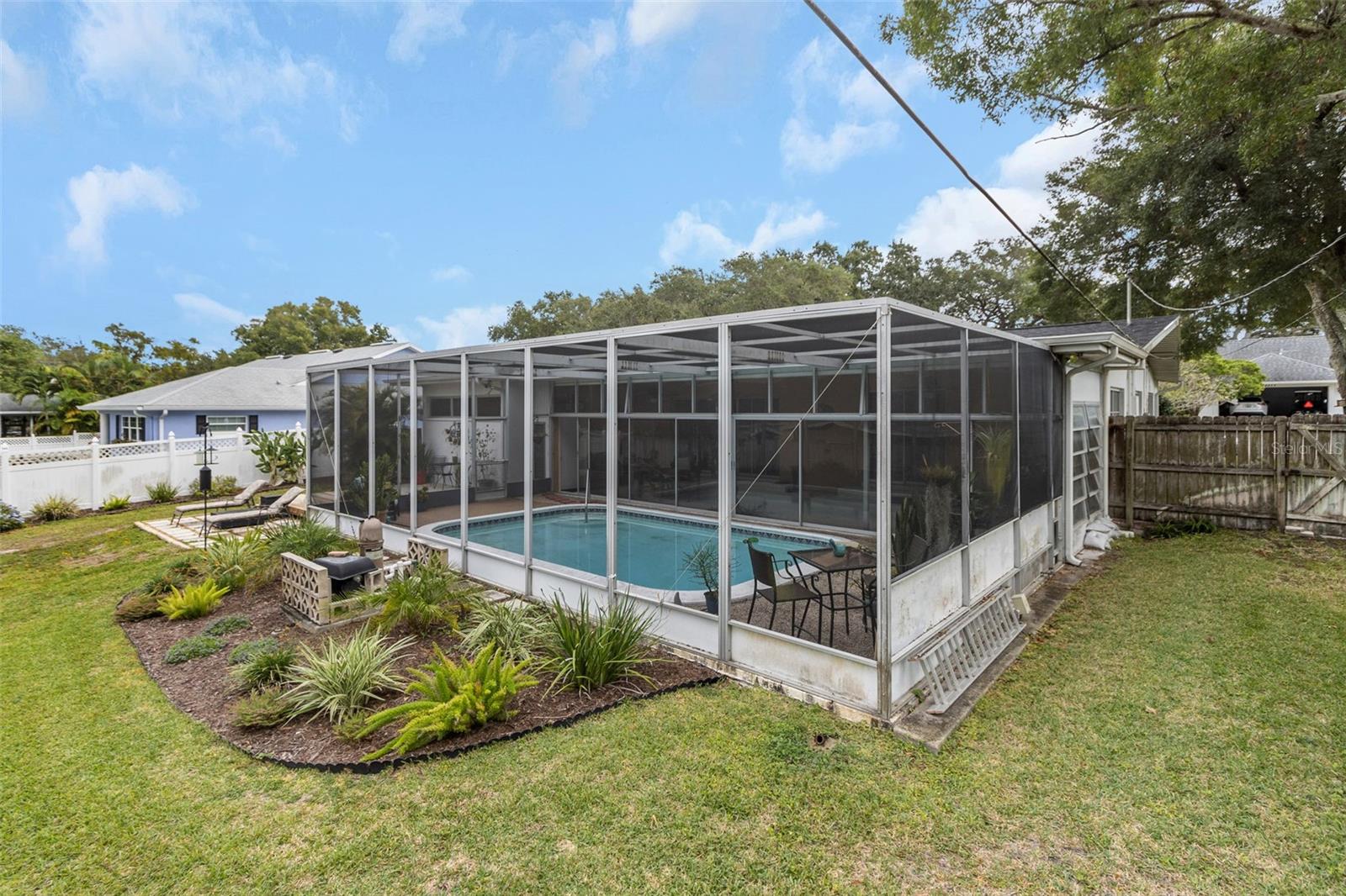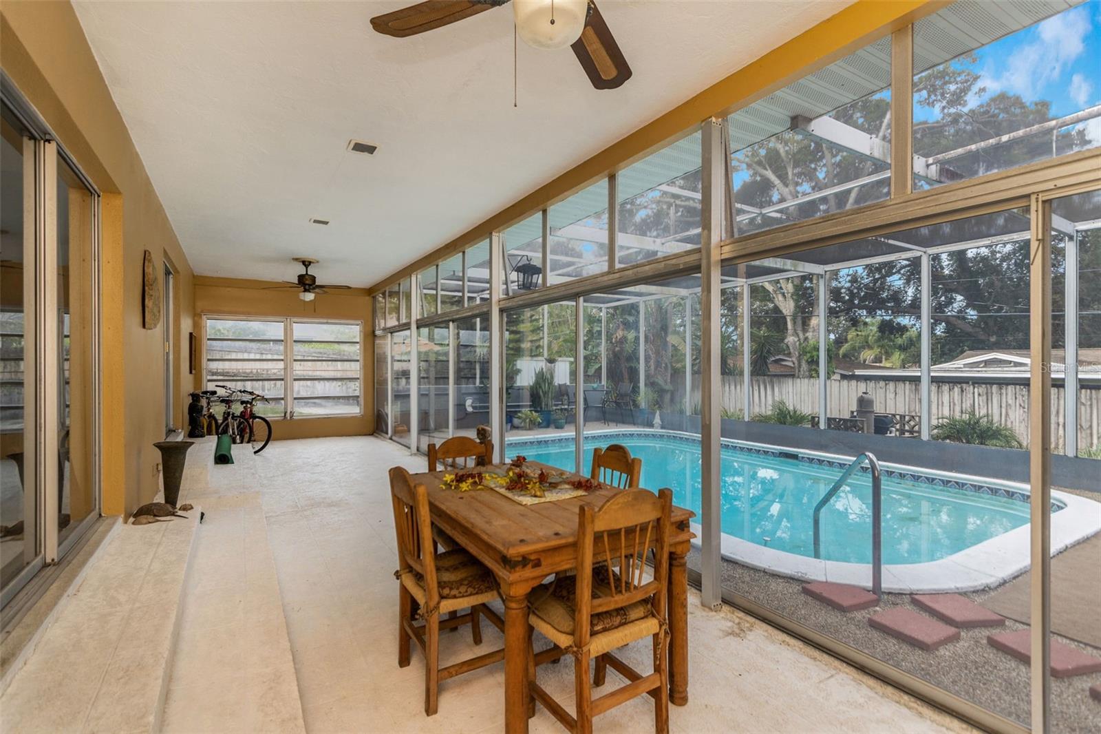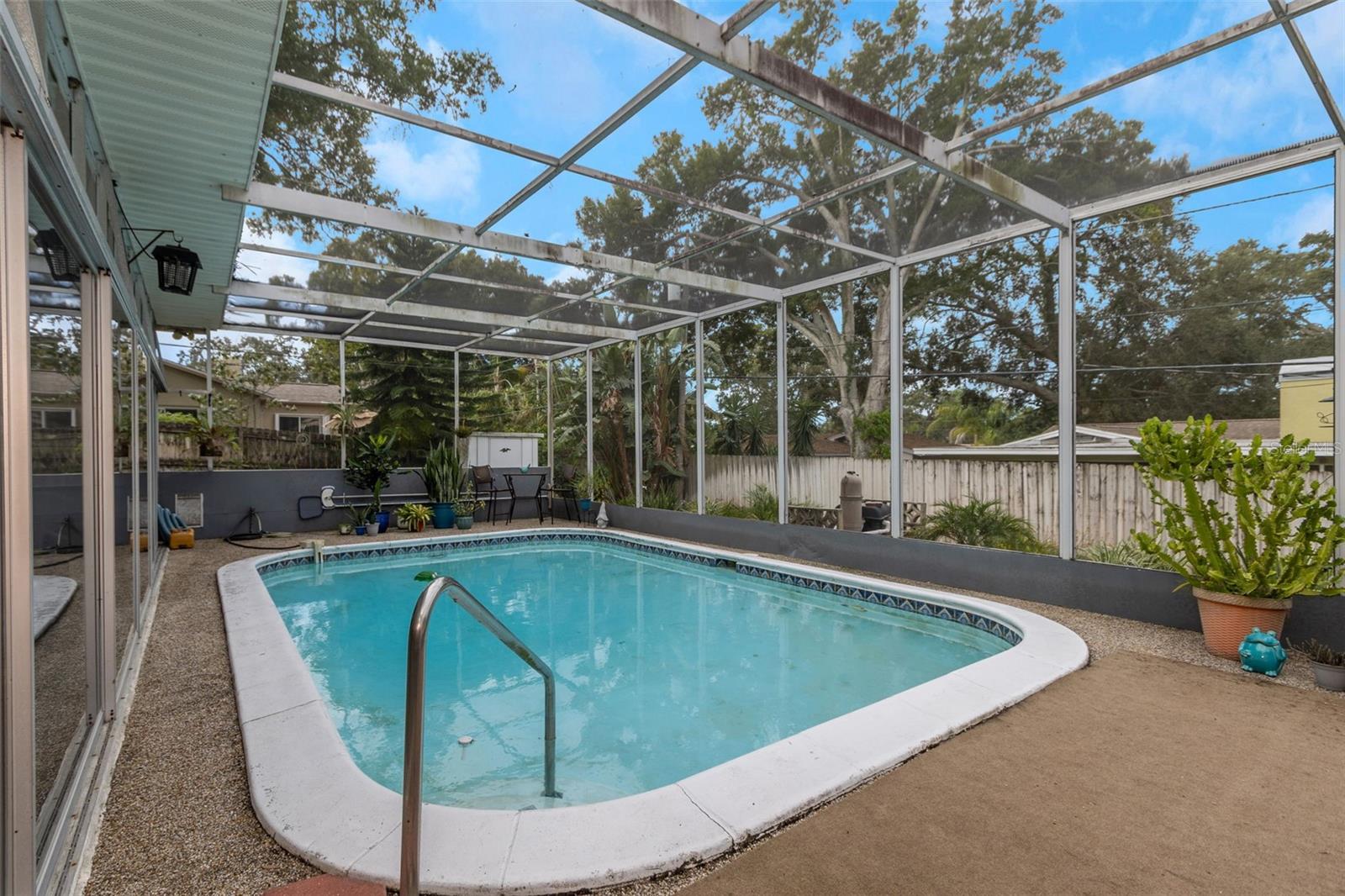 Bem -vindo ao Fairway Estates! Esta popular comunidade de Dunedin fica na zona do carrinho de golfe e fica a cerca de 800 metros do Dunedin Golf Club, Highlander Park, Hammock Park, Pinellas Trail e Dunedin Causeway. Esta casa lindamente mantida possui 3 camas, 2 banheiros, 1 garagem para carros, uma grande sala de Flórida fechada e uma exibição em Lanai com piscina. Dentro, você encontrará um layout de plano dividido com a sala de estar e a cozinha de passe no meio. A sala de estar é leve e brilhante, com pisos mais recentes em toda a sala de estar principal. A cozinha foi atualizada com armários de estilo suave e de perto e aparelhos mais novos. Isso deixa algumas atualizações, como os banheiros e a área da piscina, para o novo proprietário adicionar seu toque pessoal. Dois quartos e um banho no lado esquerdo da casa, enquanto a suíte master fica à direita. Observe que o quarto principal está no mesmo nível que o Lanai, então há 2 etapas para baixo nele. Ele também tem sua própria entrada do convés traseiro, para que possa ter potencial como uma suíte de sogros. As portas de vidro deslizantes da sala de estar são uma enorme sala da Flórida com todas as janelas de vidro e controles deslizantes. Em seguida, as portas de vidro deslizantes da sala da Flórida são um grande lanai com uma piscina. Ou você pode procurar remover todos os controles deslizantes à beira da piscina para criar uma área aberta incrivelmente grande com inúmeras oportunidades (cozinha ao ar livre?). O espaço divertido se estende da Lanai para o convés, que seria um local perfeito para uma área de conversa em torno de um pico de incêndio. O restante do cercado no quintal, e há muita coisa, está cheia de paisagismo delicioso e maduro e uma grande área gramada para jogos, um jardim ou (preencha o espaço em branco). Sem HOA e não em uma zona de inundação !! ** TELHO 2018 ** A/C 2018