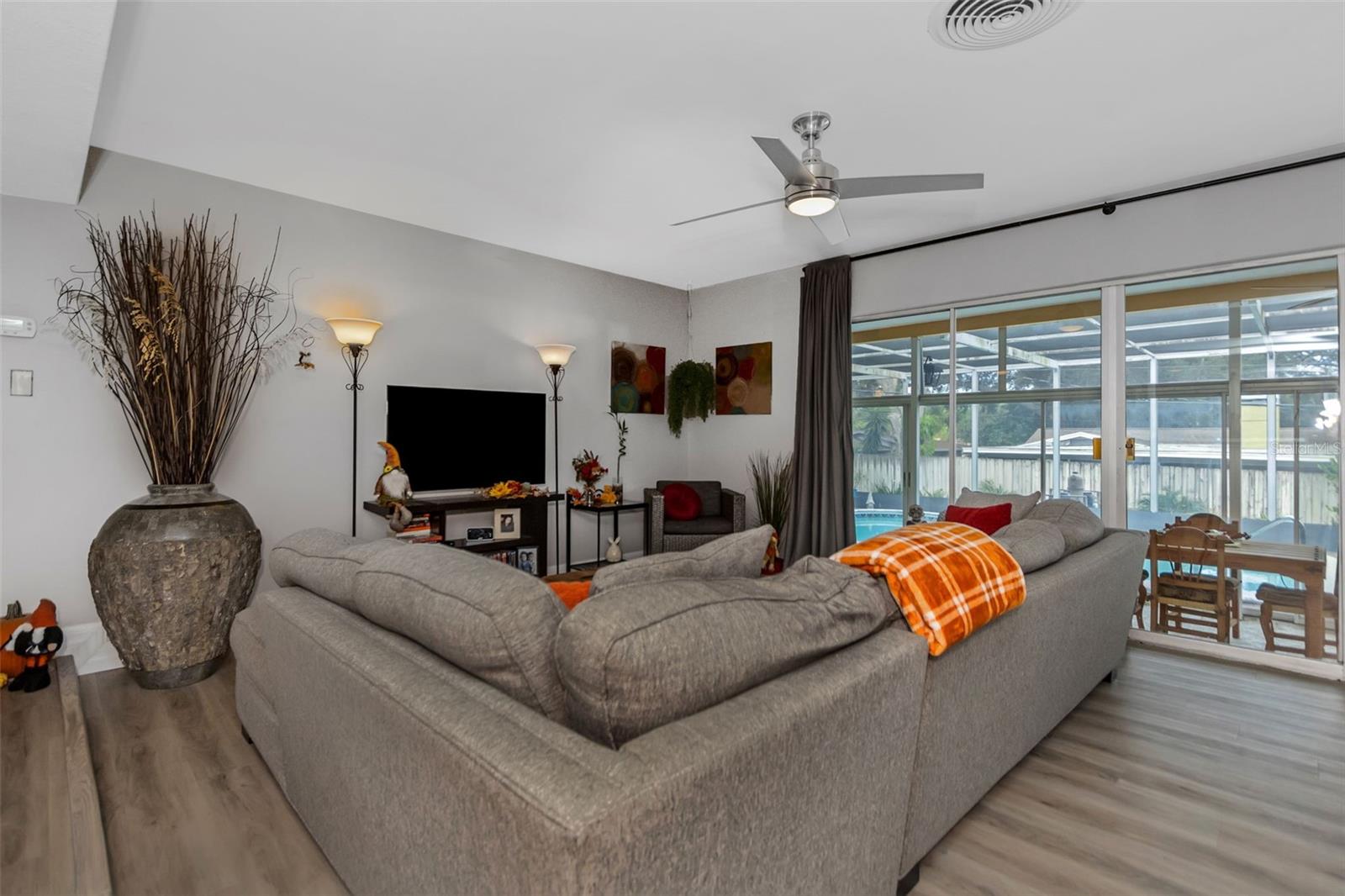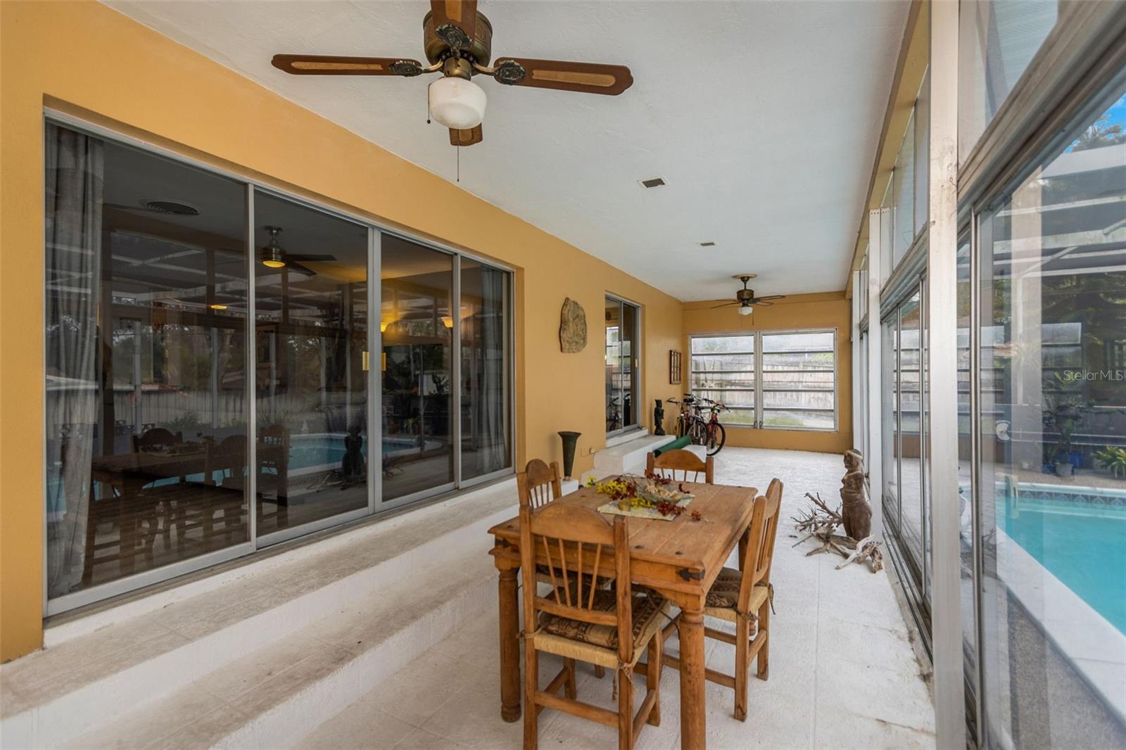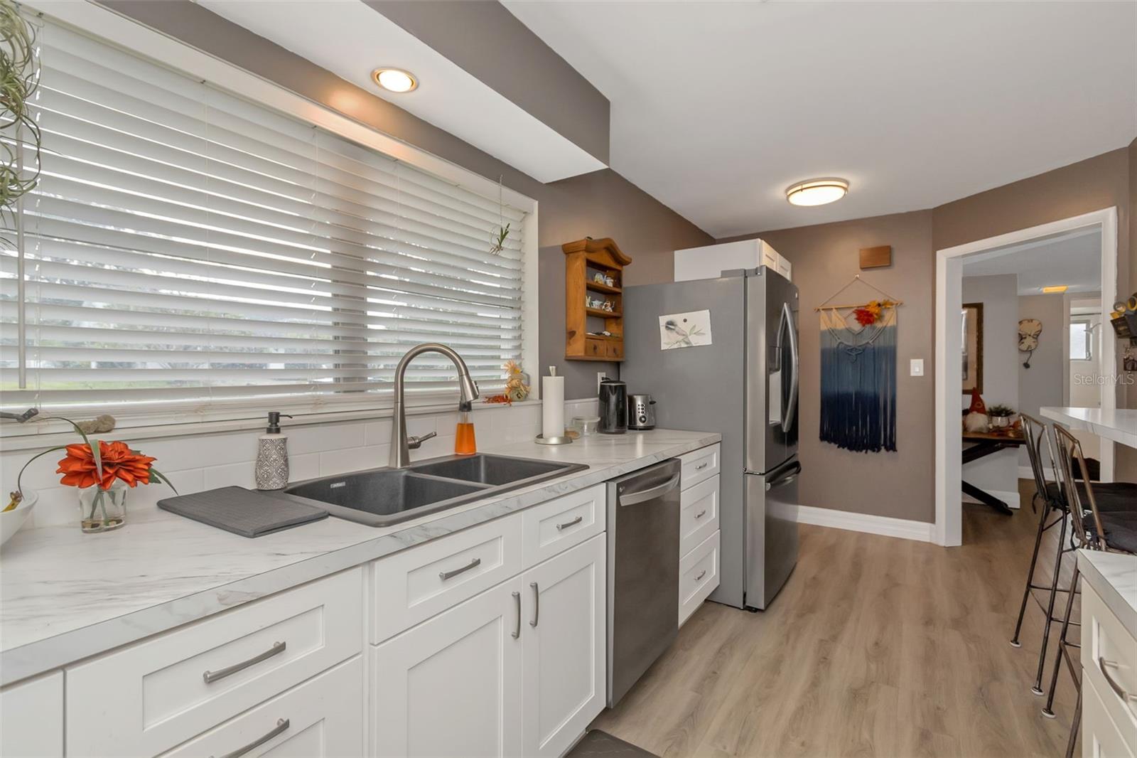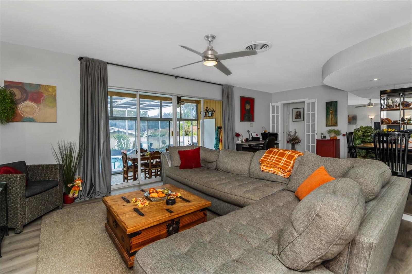 Bem -vindo ao Fairway Estates! Esta popular comunidade de Dunedin fica na zona do carrinho de golfe e fica a cerca de 800 metros do Dunedin Golf Club, Highlander Park, Hammock Park, Pinellas Trail e Dunedin Causeway. Esta casa lindamente mantida possui 3 camas, 2 banheiros, 1 garagem para carros, uma grande sala de Flórida fechada e uma exibição em Lanai com piscina. Dentro, você encontrará um layout de plano dividido com a sala de estar e a cozinha de passe no meio. A sala de estar é leve e brilhante, com pisos mais recentes em toda a sala de estar principal. A cozinha foi atualizada com armários de estilo suave e de perto e aparelhos mais novos. Isso deixa algumas atualizações, como os banheiros e a área da piscina, para o novo proprietário adicionar seu toque pessoal. Dois quartos e um banho no lado esquerdo da casa, enquanto a suíte master fica à direita. Observe que o quarto principal está no mesmo nível que o Lanai, então há 2 etapas para baixo nele. Ele também tem sua própria entrada do convés traseiro, para que possa ter potencial como uma suíte de sogros. As portas de vidro deslizantes da sala de estar são uma enorme sala da Flórida com todas as janelas de vidro e controles deslizantes. Em seguida, as portas de vidro deslizantes da sala da Flórida são um grande lanai com uma piscina. Ou você pode procurar remover todos os controles deslizantes à beira da piscina para criar uma área aberta incrivelmente grande com inúmeras oportunidades (cozinha ao ar livre?). O espaço divertido se estende da Lanai para o convés, que seria um local perfeito para uma área de conversa em torno de um pico de incêndio. O restante do cercado no quintal, e há muita coisa, está cheia de paisagismo delicioso e maduro e uma grande área gramada para jogos, um jardim ou (preencha o espaço em branco). Sem HOA e não em uma zona de inundação !! ** TELHO 2018 ** A/C 2018
