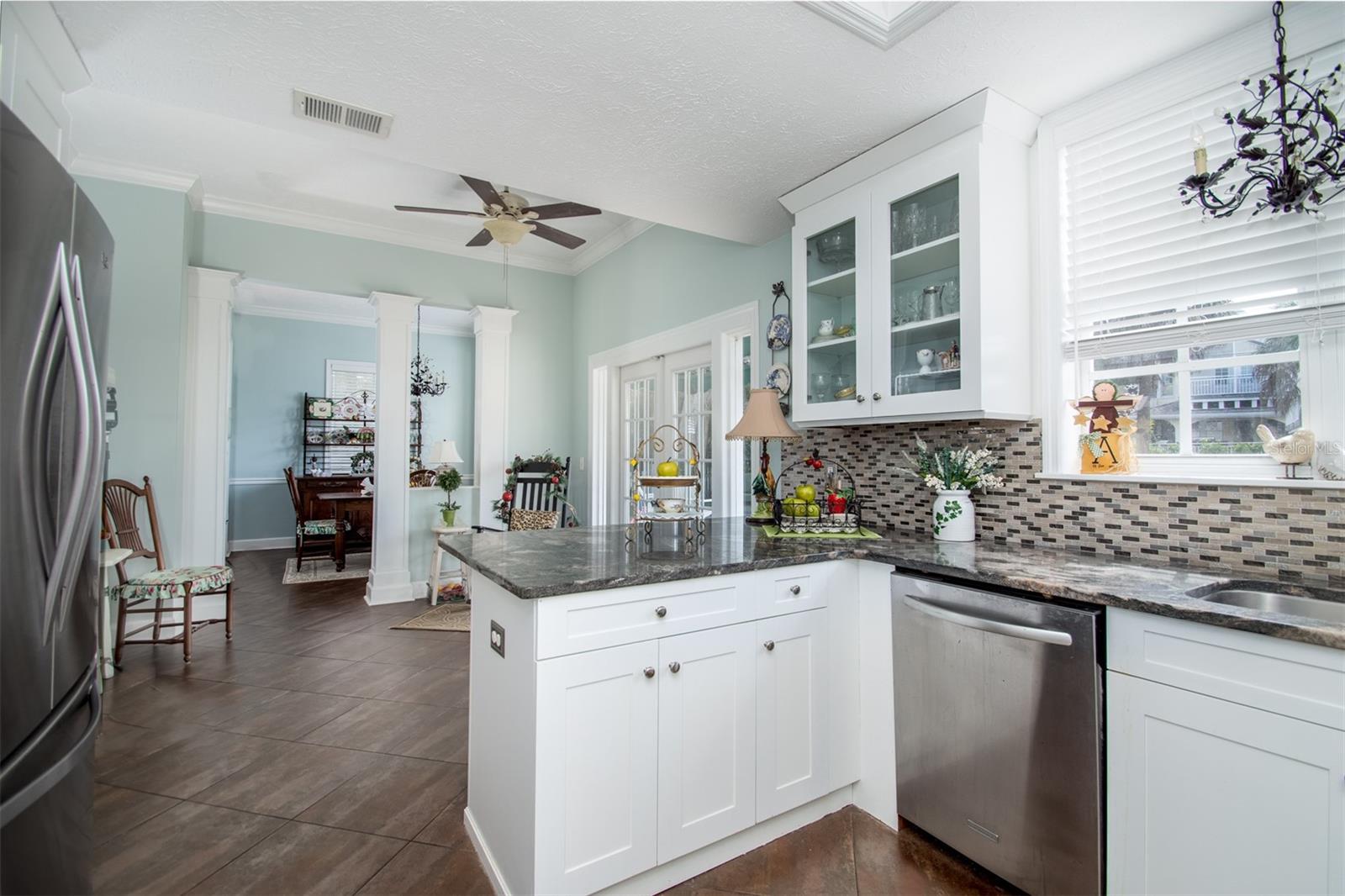 Não há danos ao furacão e não em uma zona de inundação! Grande redução de preço para esta beleza rara de Dunedin Waterfront! Esta casa única, pronta para a casa de três andares, deve ser vista para acreditar. O primeiro andar possui moldagem por coroa e ladrilhos de cerâmica de 18 polegadas por toda parte. A sala de estar considerável tem vista para a água e uma lareira a lenha. Também no primeiro andar está um covil/escritório/quarto com entrada de porta francesa. A cozinha possui lindos balcões de granito, utensílios de aço inoxidável e armários de madeira sólida branca com portas de vidro. Fora da cozinha, há uma grande lavanderia interna com seu próprio acesso à garagem/garagem. Subindo as escadas de madeira para o segundo andar, você encontrará dois quartos muito grandes e o banho de hóspedes completo com dupla vaidade. Também no segundo andar está o quarto principal com grande closet, banheiro privativo e banheira de jardim. Todo o piso nas áreas de estar do segundo andar é de madeira bonita. Ainda não terminamos, pois você pode subir as escadas mais uma vez para alcançar todo o espaço de bônus que aguarda no terceiro andar. O terceiro andar oferece mais de 400 pés quadrados de espaço flexível aquecido e resfriado, não incluído nos registros públicos. Isso eleva sua área de estar total para cerca de 2600 pés quadrados. O terceiro andar pode ser usado para espaço de escritório, sala de mídia ou quartos adicionais. Existem tantas possibilidades! Other great features of this home include but not limited to: 6-inch base moldings, wood shutters on living room and den windows, ceiling fans throughout, dual door rear entry, brand new 50-gallon water heater, AC 10 years old, roof only 6 years old, new hurricane grade windows on third floor dormers, security system hardwired to emergency services, large backyard, automatic sprinkler system, and a full-size two-car detached garage. Esta casa fica literalmente a poucos passos da água, sem mencionar que você é apenas um rápido passeio de Dunedin Marina, Downtown e The Pinellas Bike Trail. Propriedades como essa são raras e não ficam disponíveis com frequência. Programe sua exibição particular
