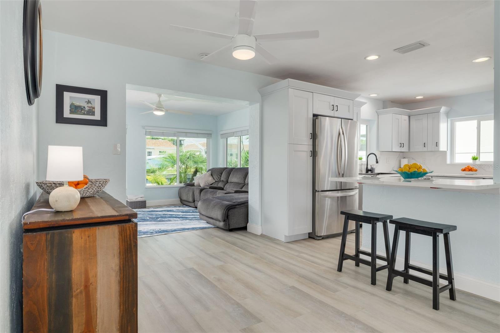 Vendedores motivados! Esta casa à beira-mar lindamente renovada em Baywood Shores está localizada em um canal de água salgada, a apenas cinco minutos de barco das águas abertas do Golfo do México. Esta casa de dois quartos, um banheiro e meio e garagem para um carro foi reformada, para que você possa se mudar imediatamente. Possui uma planta aberta com janelas de impacto, luxuosos pisos de vinil, bancadas de quartzo e sistemas de organização de armários. O orgulho de propriedade brilha com um telhado 2023, HVAC 2022, calçada para pavimentação 2022, pátio traseiro para pavimentação 2022 e painel elétrico 2021. Os turcos para barcos em seu paredão suportam até 7.000 libras no total e acomodam um barco de até 24 pés. Barco através de St. Joseph Sound até a Ilha Caladesi e além. A Marina Marker 1 está localizada fora do canal e pode fornecer combustível para sua viagem. Quando você não está navegando, há inúmeras opções de lazer. Aventure-se pela Dunedin Causeway até as praias arenosas da Honeymoon Island. Aproveite o Dunedin Golf Club, o Dunedin Fine Art Center e o Highlander Pool Aquatics Center, todos abertos ao público. Baywood Shores fica do outro lado da rua da Pinellas Trail, que leva você a restaurantes e lojas no centro de Dunedin. Não há HOA, mas há uma associação de bairro opcional com quadra de pickleball e clube. Móveis, itens de decoração, TVs e barco são negociáveis na venda. Agende sua exibição hoje mesmo!