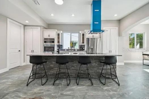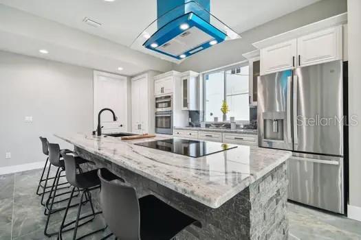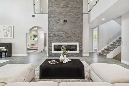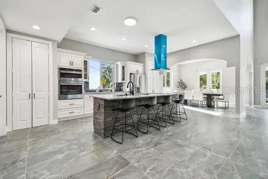 Alto e seco. Esta impressionante casa de construção de três andares em Dunedin não foi afetada pelo furacão Helene e Milton. O luxo aguarda nesta área muito procurada. Ao entrar, você será cativado por tetos altos e uma lareira de pedra decorativa no piso principal. O segundo andar oferece conceito aberto que vive com vistas de tirar o fôlego, com quatro quartos, cinco banheiros, um escritório, uma despensa, armários e banheiros de suíte para cada quarto. Um elevador acrescenta conveniência. Esta bela casa inclui uma área de estar espaçosa com varandas, árvores de bambu e uma cozinha gourmet com utensílios de aço inoxidável. A suíte master apresenta uma banheira de imersão. O primeiro andar possui um pátio coberto, armazenamento grande e uma lavanderia com uma lavadora e secadora GE. Desfrute de tetos altos, uma garagem para 9 carros e espaços versáteis que podem ser usados como sauna, sauna a vapor, academia ou mais. A propriedade possui janelas com classificação de impacto por furacão e um telhado de metal durável. O lote de grandes dimensões oferece amplo espaço para carros de estacionamento, trailers e veículos recreativos. Além disso, não há HOA. Esta nova casa está pronta para você se mudar e aproveitar tudo o que Dunedin tem a oferecer. É perto de uma marina fantástica, perto de lua de mel e ilhas de Caladesi, e a apenas 1,6 km do centro de Dunedin. Você terá fácil acesso a cervejarias artesanais, restaurantes, refeições requintadas e atividades recreativas como Windsurf e caiaque. Clearwater Beach, um dos melhores dos EUA, fica a apenas 11 quilômetros de distância, e o Aeroporto Internacional de Tampa fica a cerca de 25 minutos de carro. Esta casa oferece um estilo de vida luxuoso e conveniente.