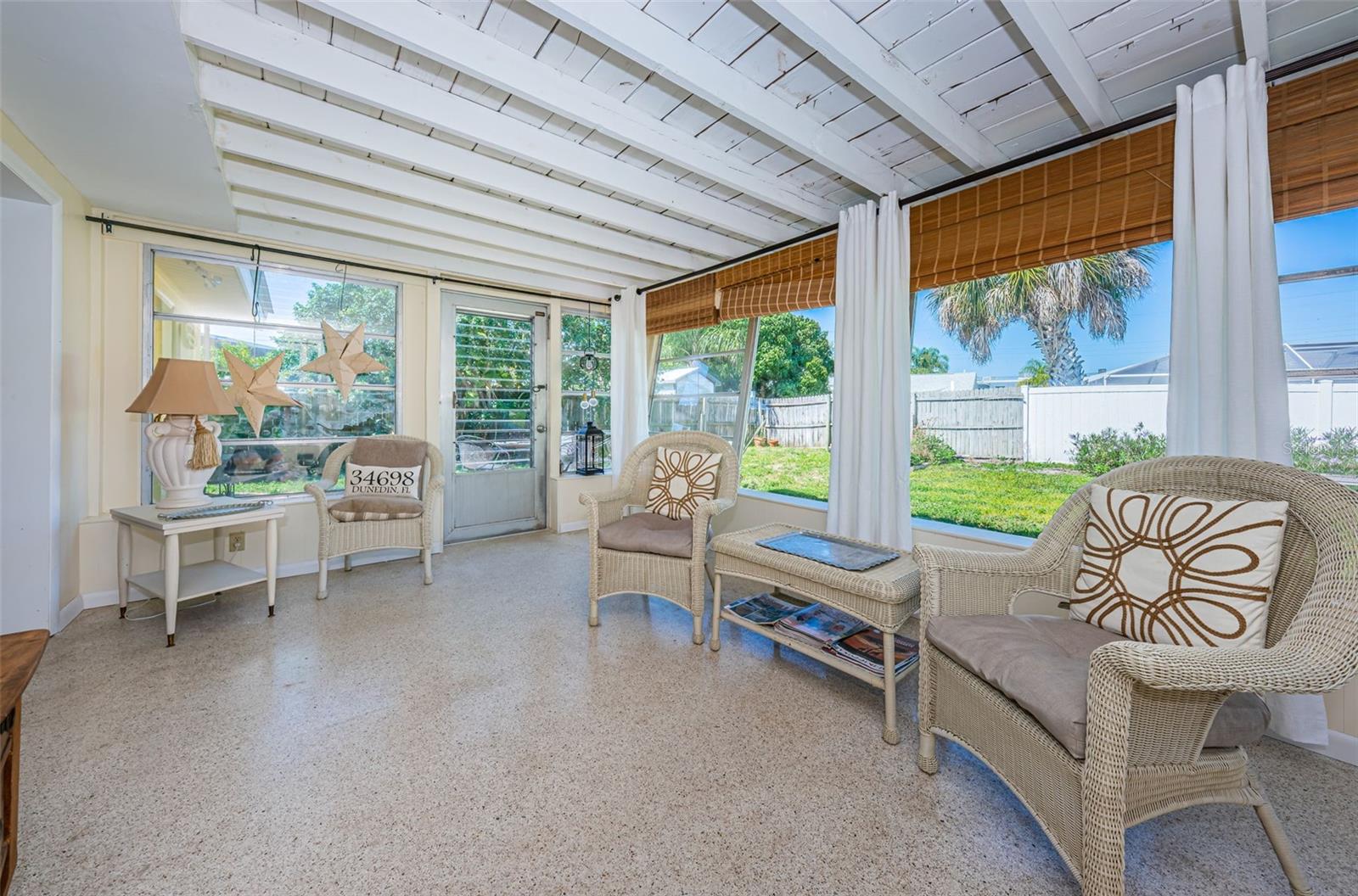 Prepare seu carrinho de golfe! Esta casa de garagem de 2 quartos modernos de 2 quartos, 2 quartos e 1 carro, está localizado na comunidade à beira -mar de Harbor View Villas no coração de Dunedin. Dentro deste clássico Charmer Dunedin, você encontrará uma planta convidativa com tetos abobadados, toneladas de luz natural, 2 quartos espaçosos e piso de terrazzo por toda parte. A cozinha atualizada é leve e brilhante, com armários de madeira maciça, bancadas de granito com pia para baixo, gavetas suaves e utensílios mais recentes de aço inoxidável, e tem vista para o quintal. A sala da Flórida oferece um retiro pacífico para aproveitar o seu café da manhã enquanto com vista para o exuberante quintal do cenário tropical com espaço para uma piscina. Há um estúdio com ar -condicionado destacado que é perfeito para um escritório, estúdio de arte ou "ela derramar". Recursos adicionais incluem, 50 anos de telhado de metal (2016), AC mais recente (2020) e lavadora / secadora. Há muito estacionamento para o seu carro e carrinho de golfe sob o pórtico, e um quintal lateral grande o suficiente para estacionar seu barco ou trailer. A minutos do campo de golfe de Dunedin, ilha de lua de mel, Pinellas Trail e Hammock Park. Tudo o que resta é pegar sua bicicleta, barco ou carrinho de golfe e começar a desfrutar do estilo de vida amigável de Dunedin! Não perca a chance de possuir um pedaço do sonho de Dunedin.